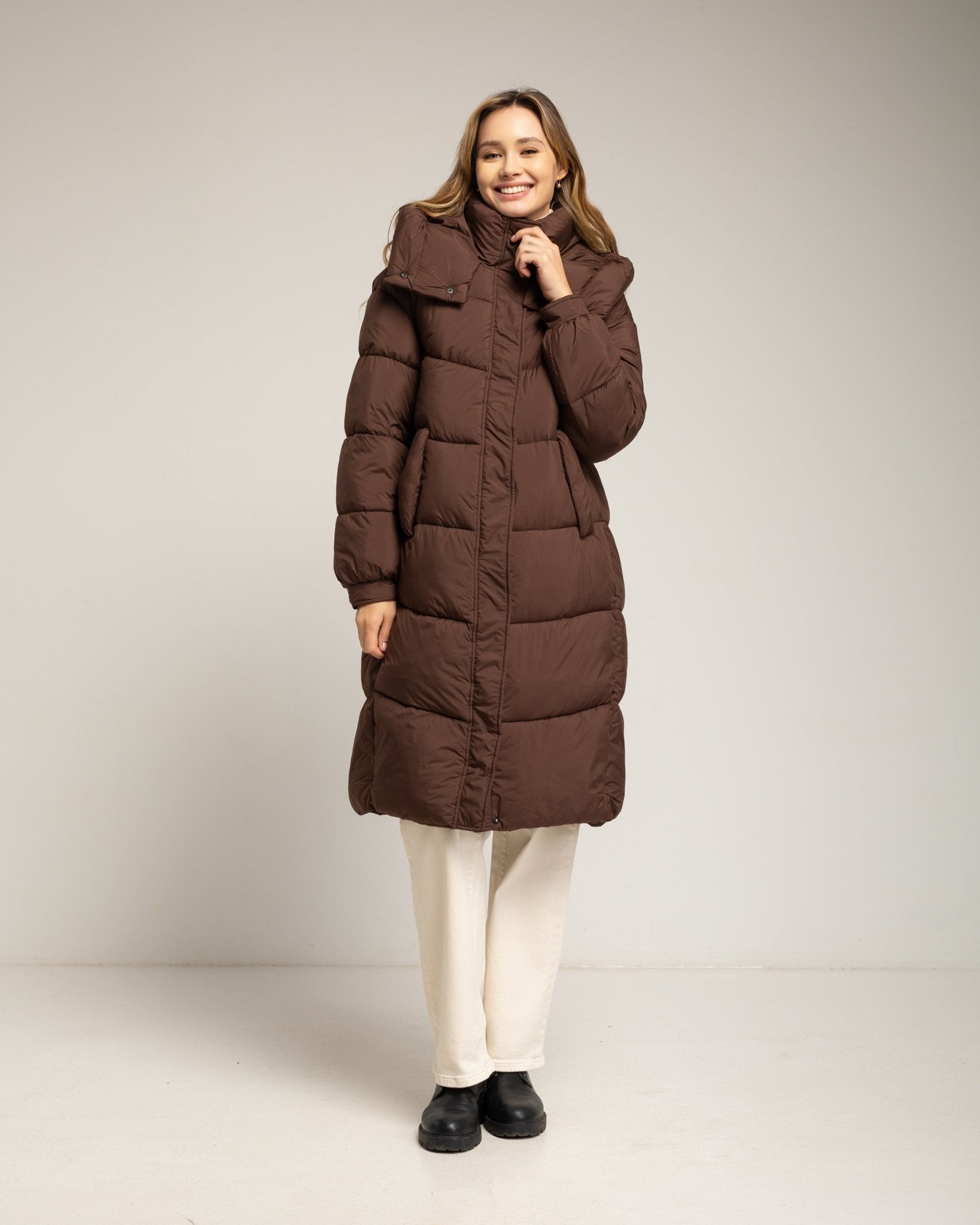 Abrigo acolchado con capucha no desmontable. Brown.