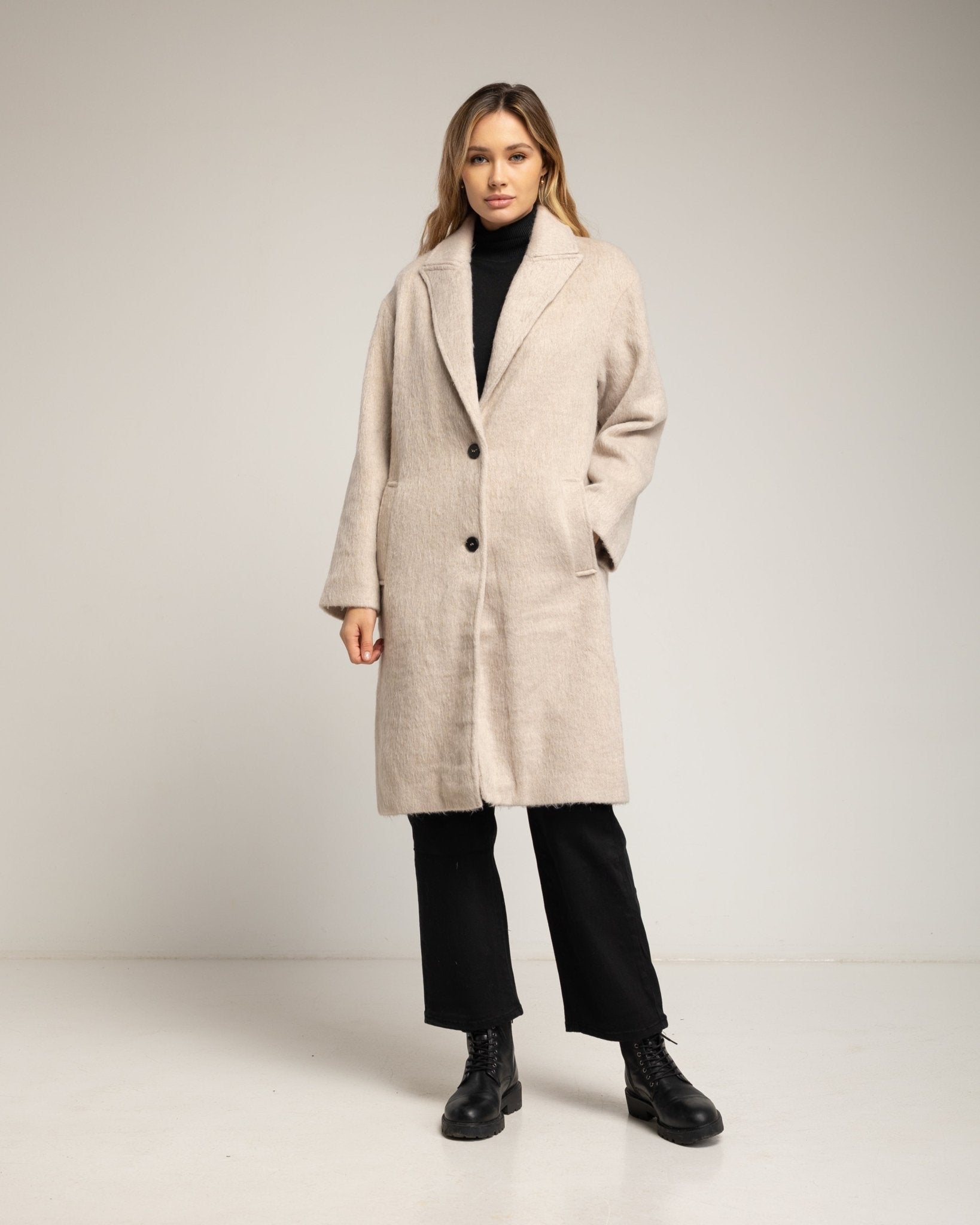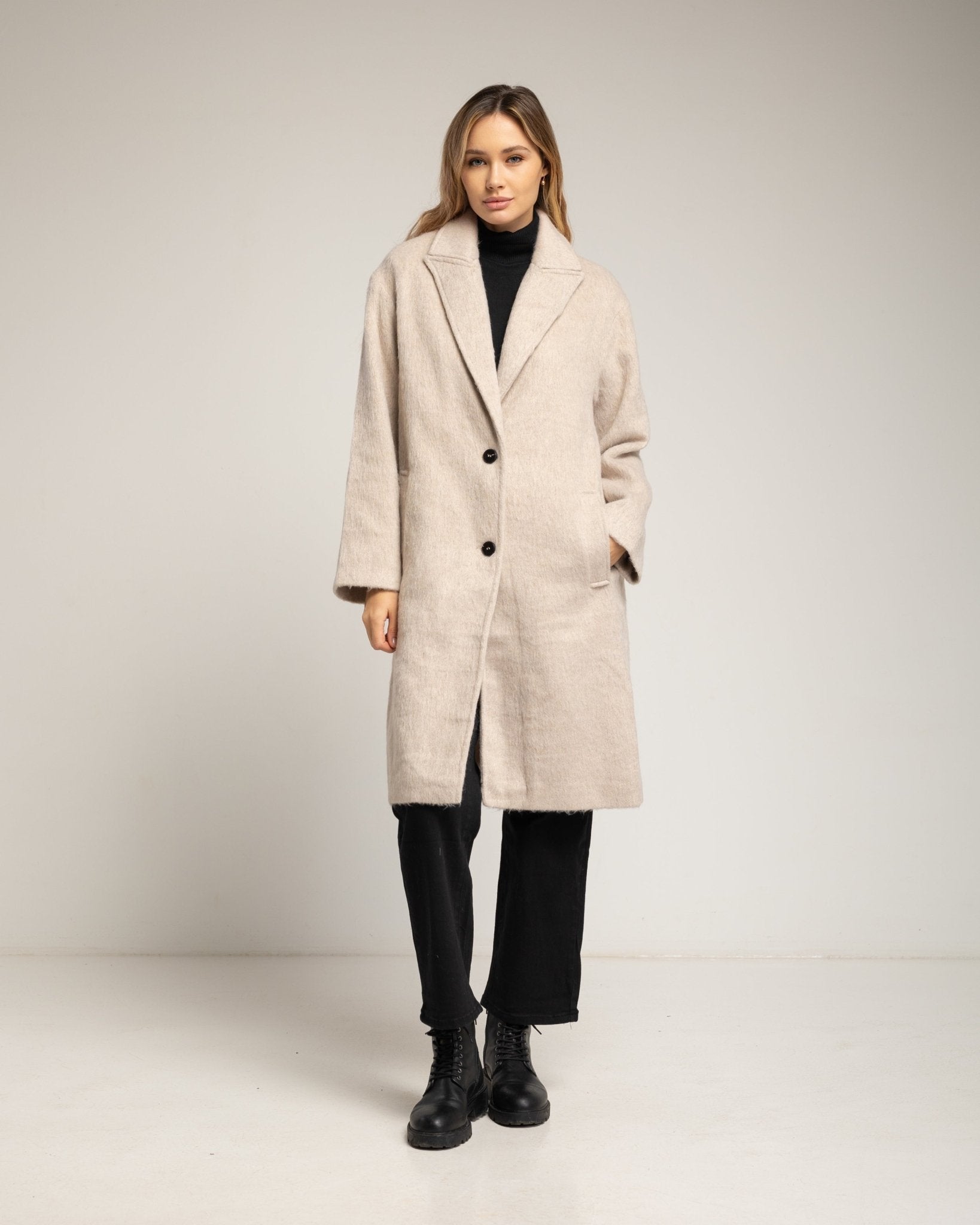 Este abrigo con lana y solapas combina elegancia y funcionalidad, ofreciendo calidez y estilo para los días fríos. Su cierre de botón aporta un toque clásico y seguro, mientras que la mezcla de poliéster y lana garantiza suavidad, resistencia y confort durante todo el día. Perfecto para looks urbanos o formales en entretiempo y temporada de frío, convirtiéndolo en una prenda versátil y sofisticada.