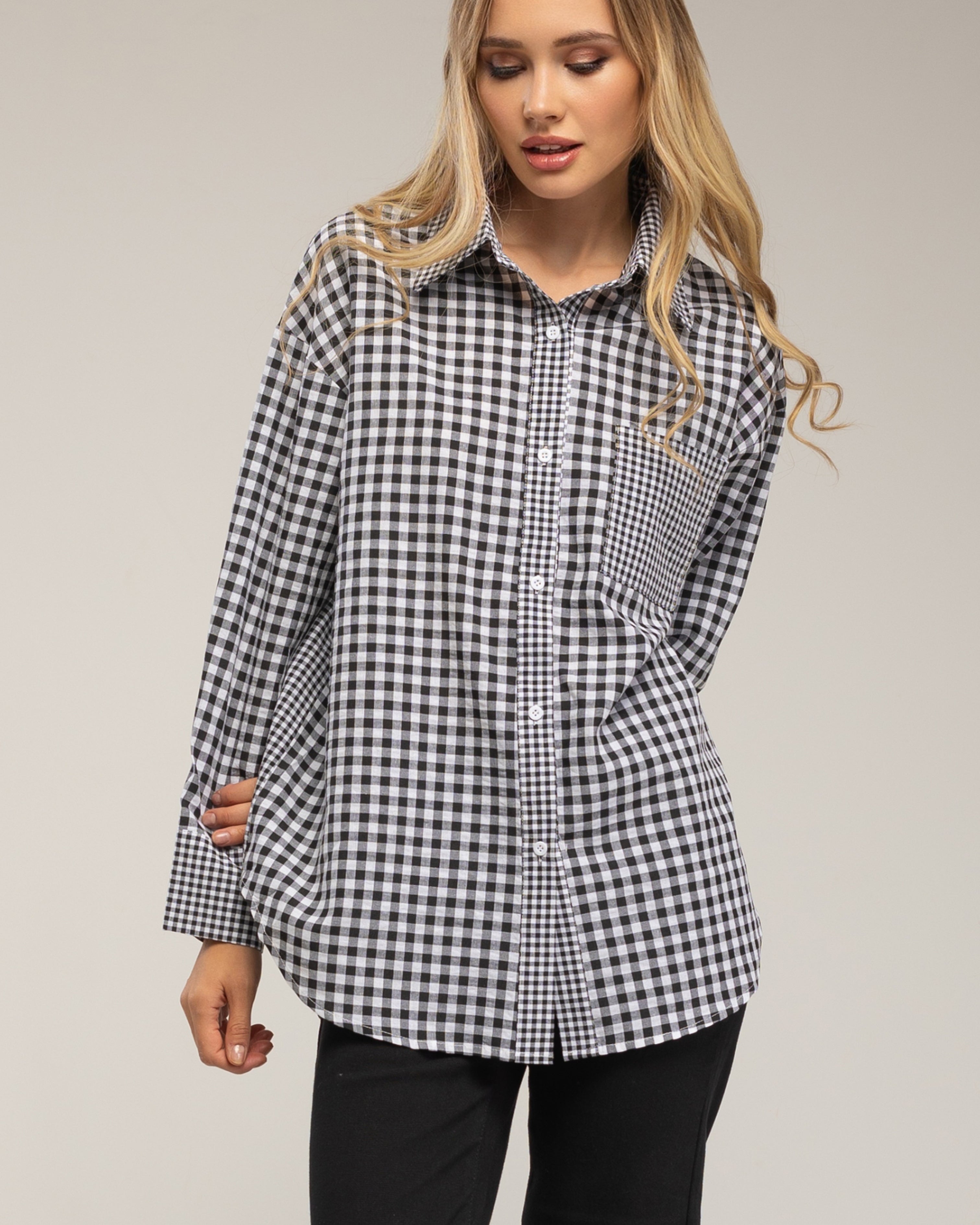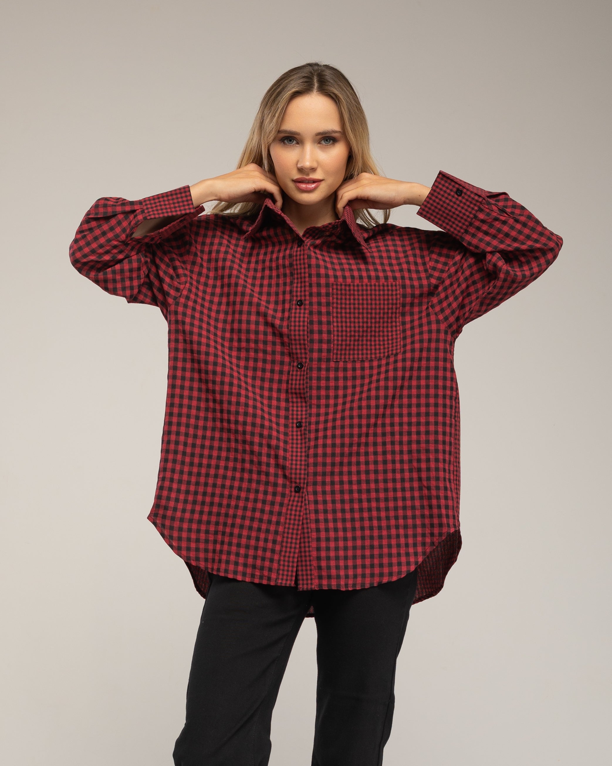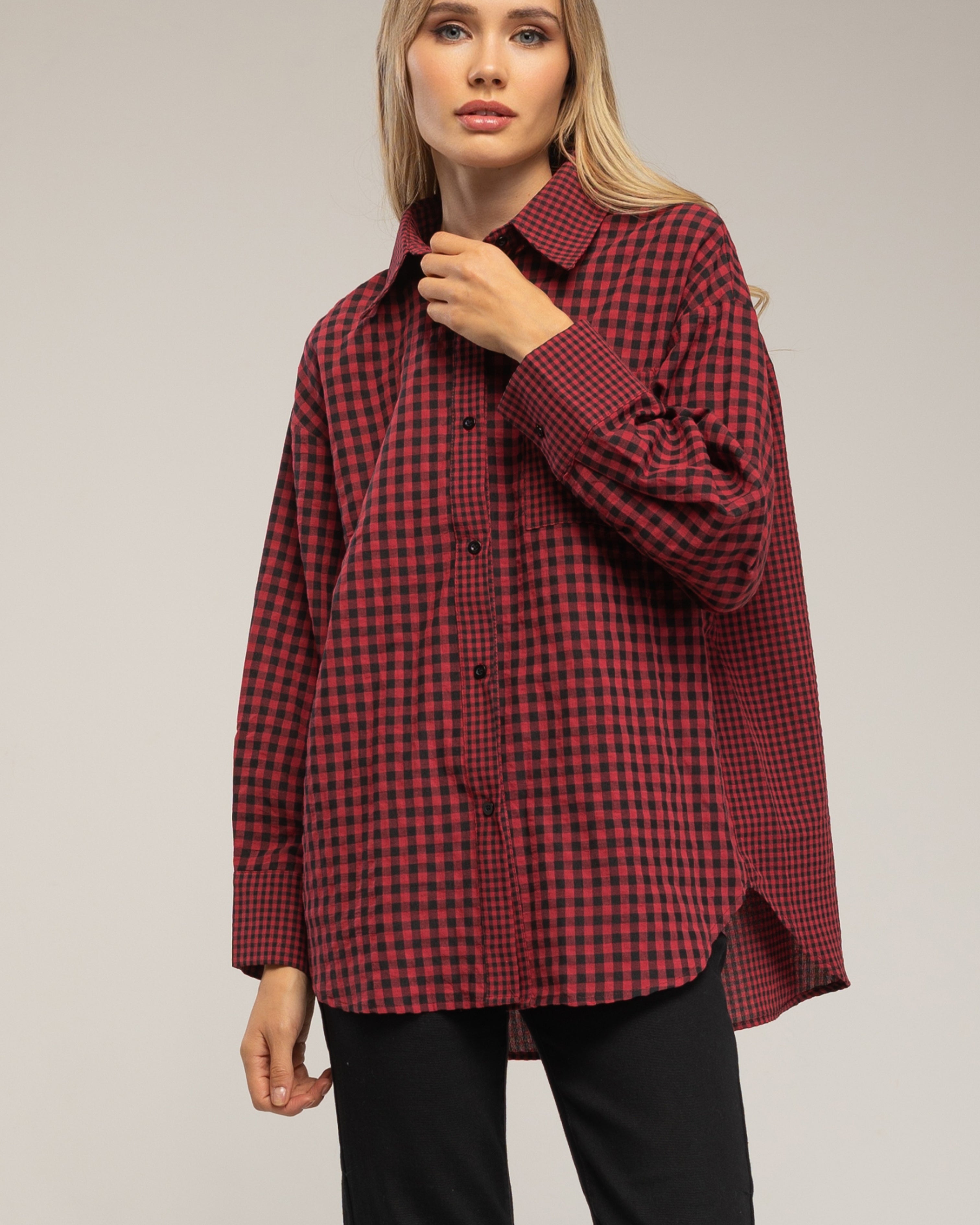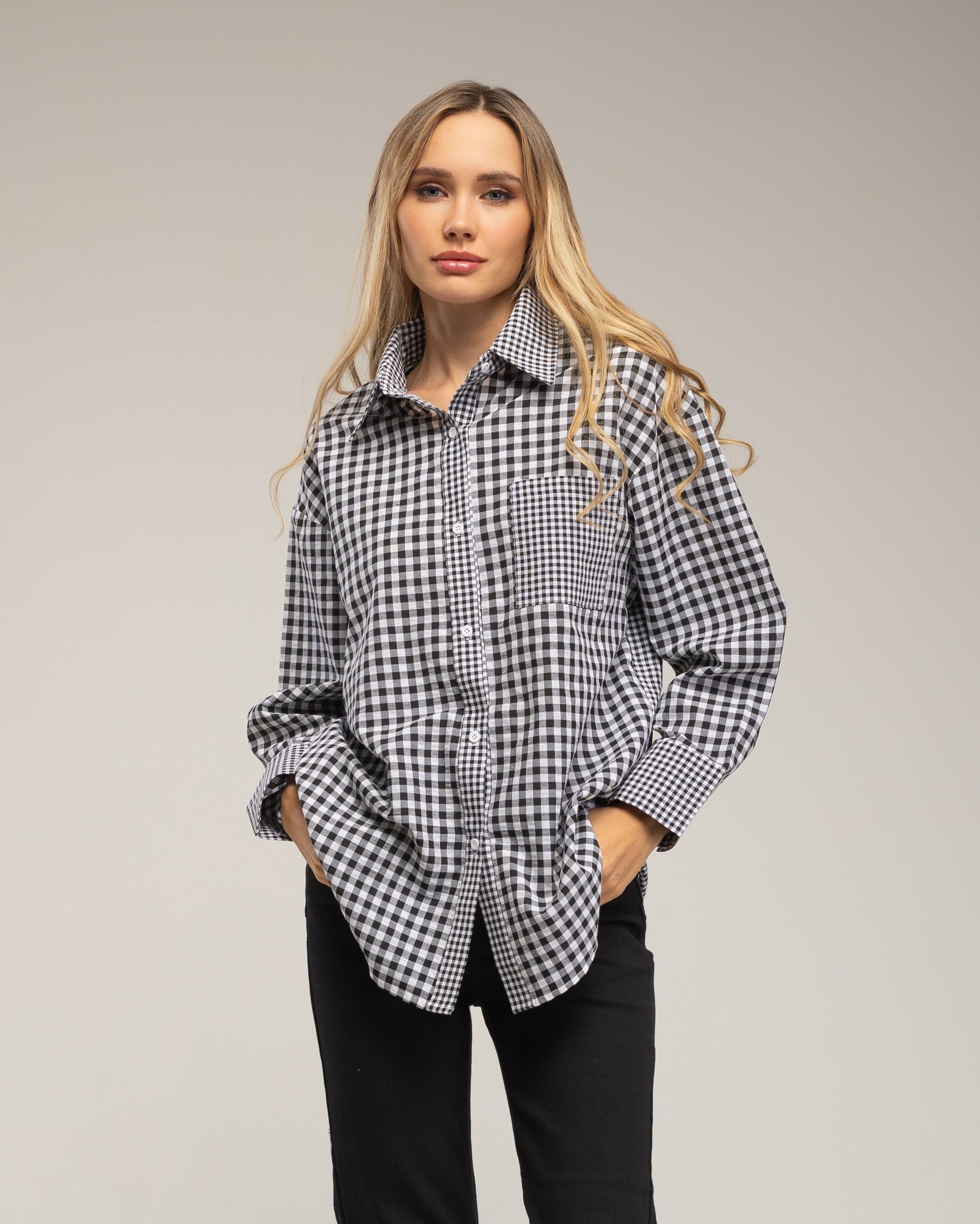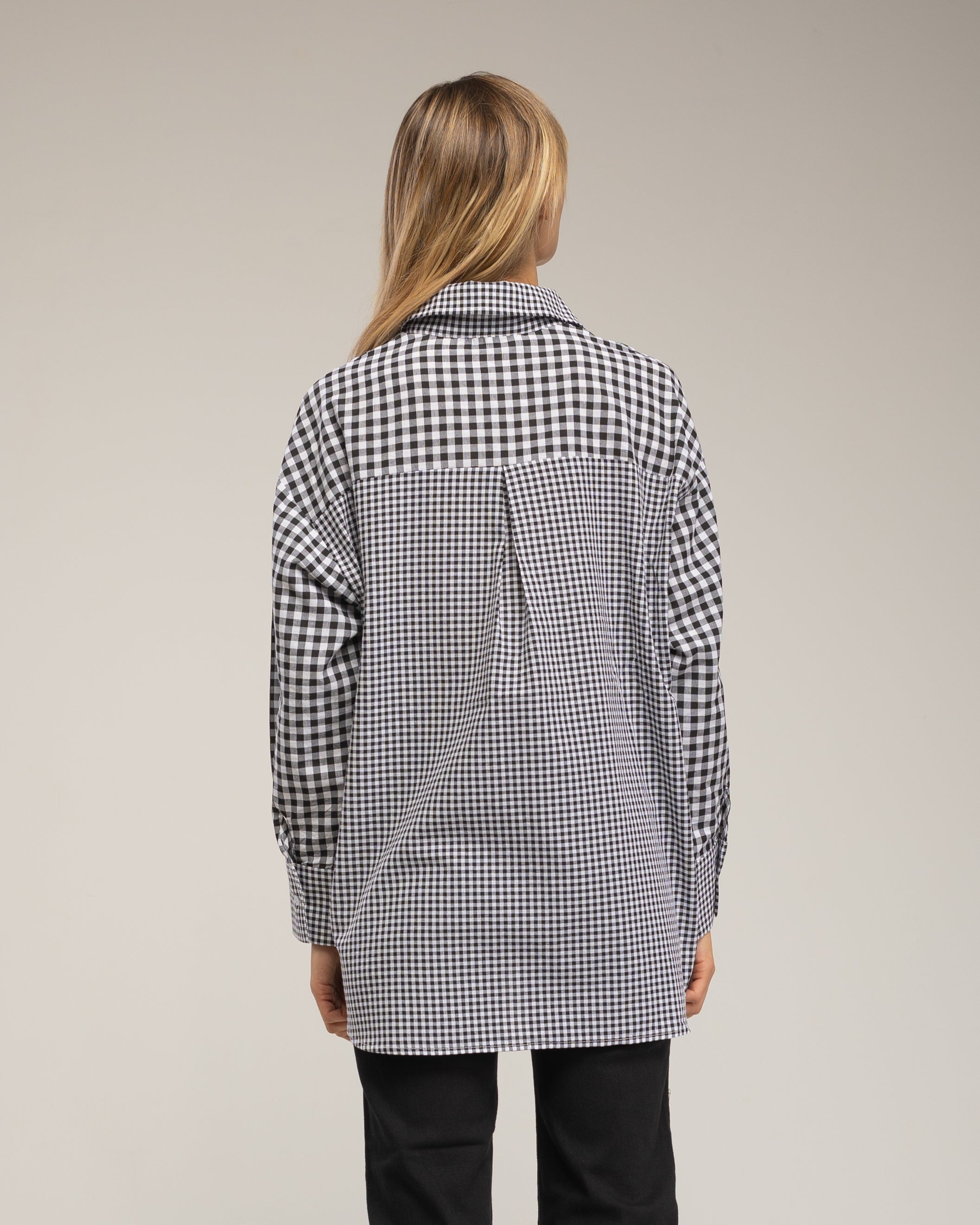 Esta camisa oversize de estampado vichy ofrece un equilibrio entre estilo desenfadado y funcionalidad. Su diseño amplio garantiza comodidad durante todo el día, mientras que el bolsillo frontal añade un detalle práctico y sutilmente decorativo. Confeccionada en una mezcla de algodón y poliéster, combina la suavidad del algodón con la resistencia del poliéster, convirtiéndola en una prenda versátil ideal para looks casuales con un toque moderno.
