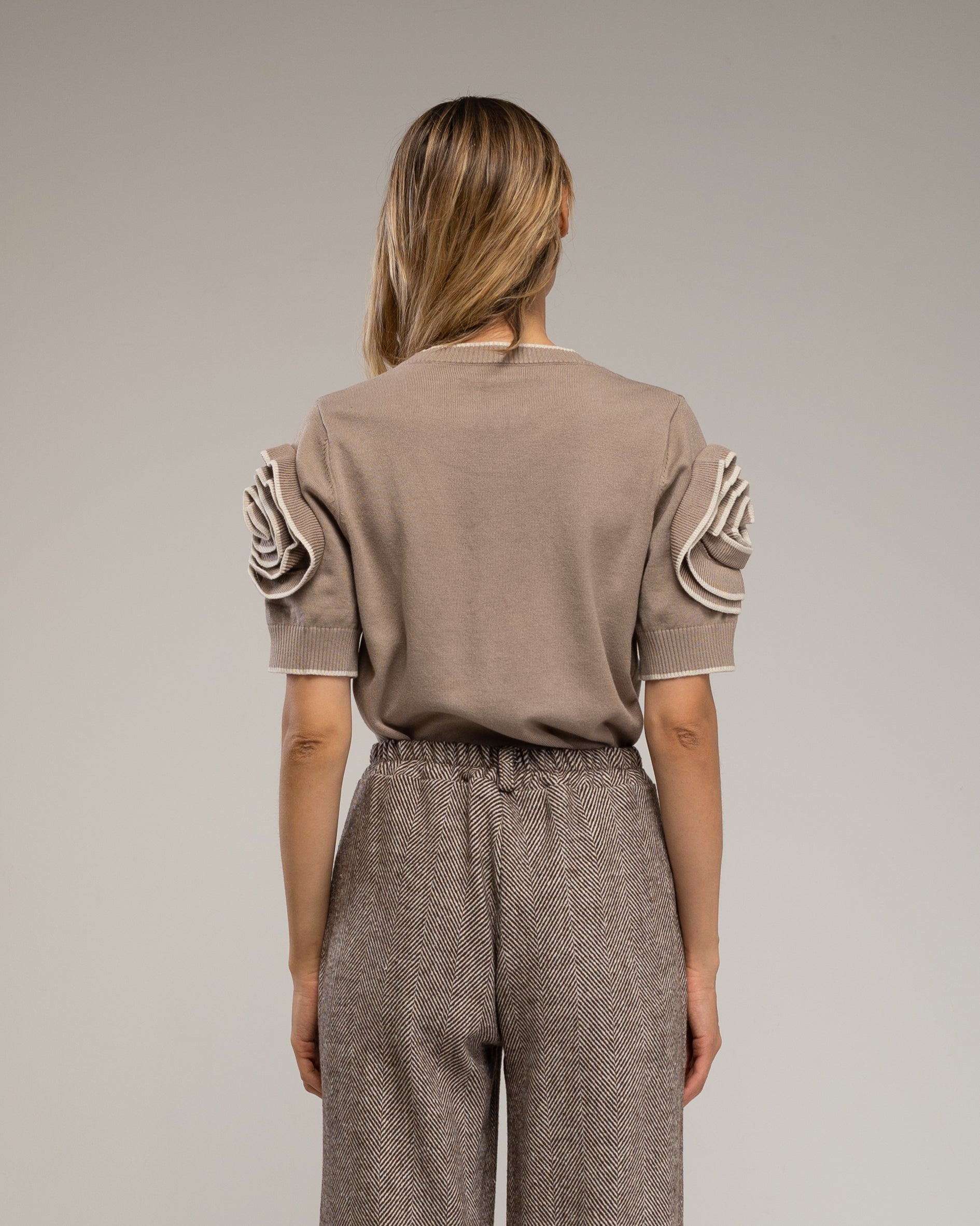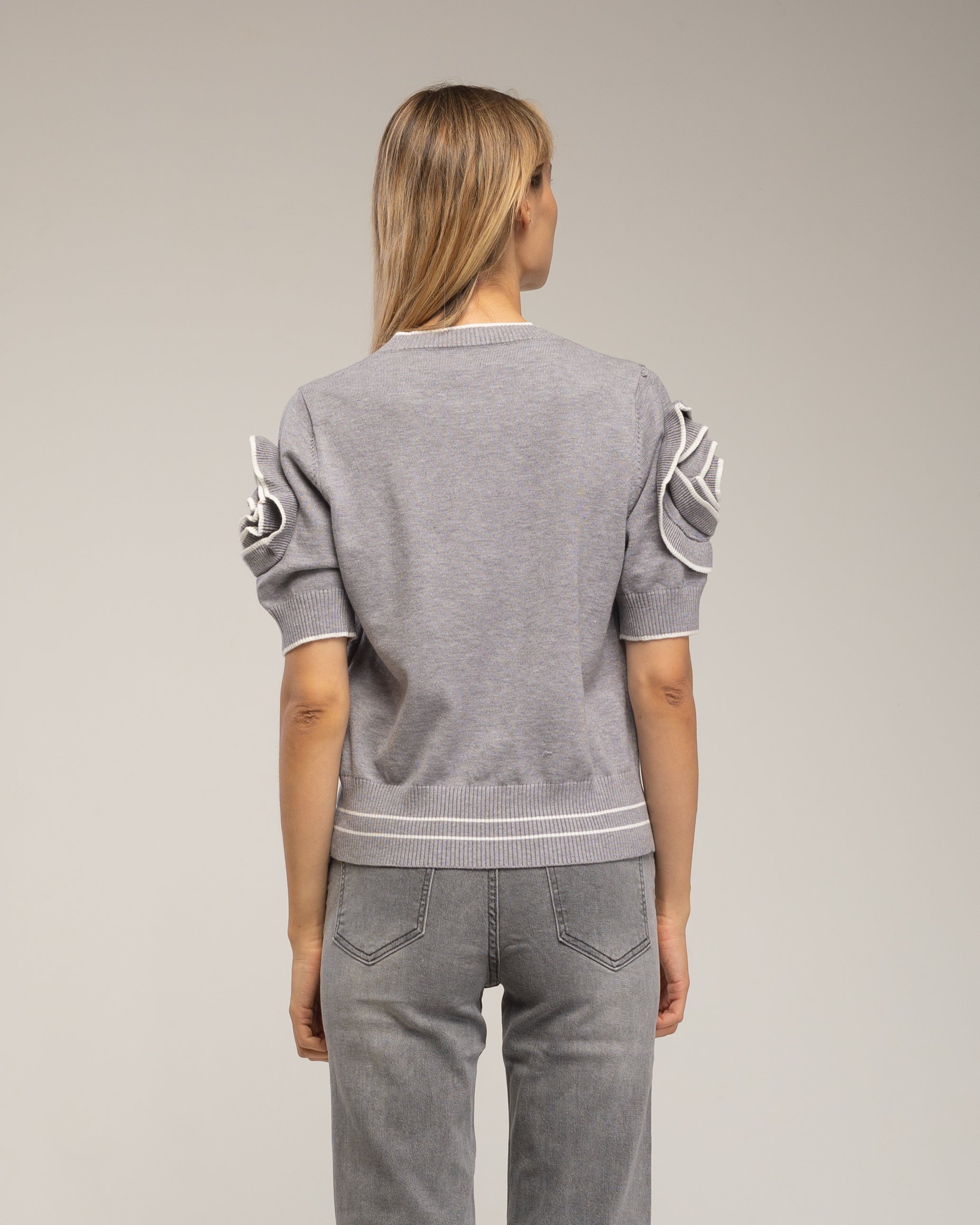 Jersey de manga corta con flor en las mangas y ribete en el cuello y abajo.