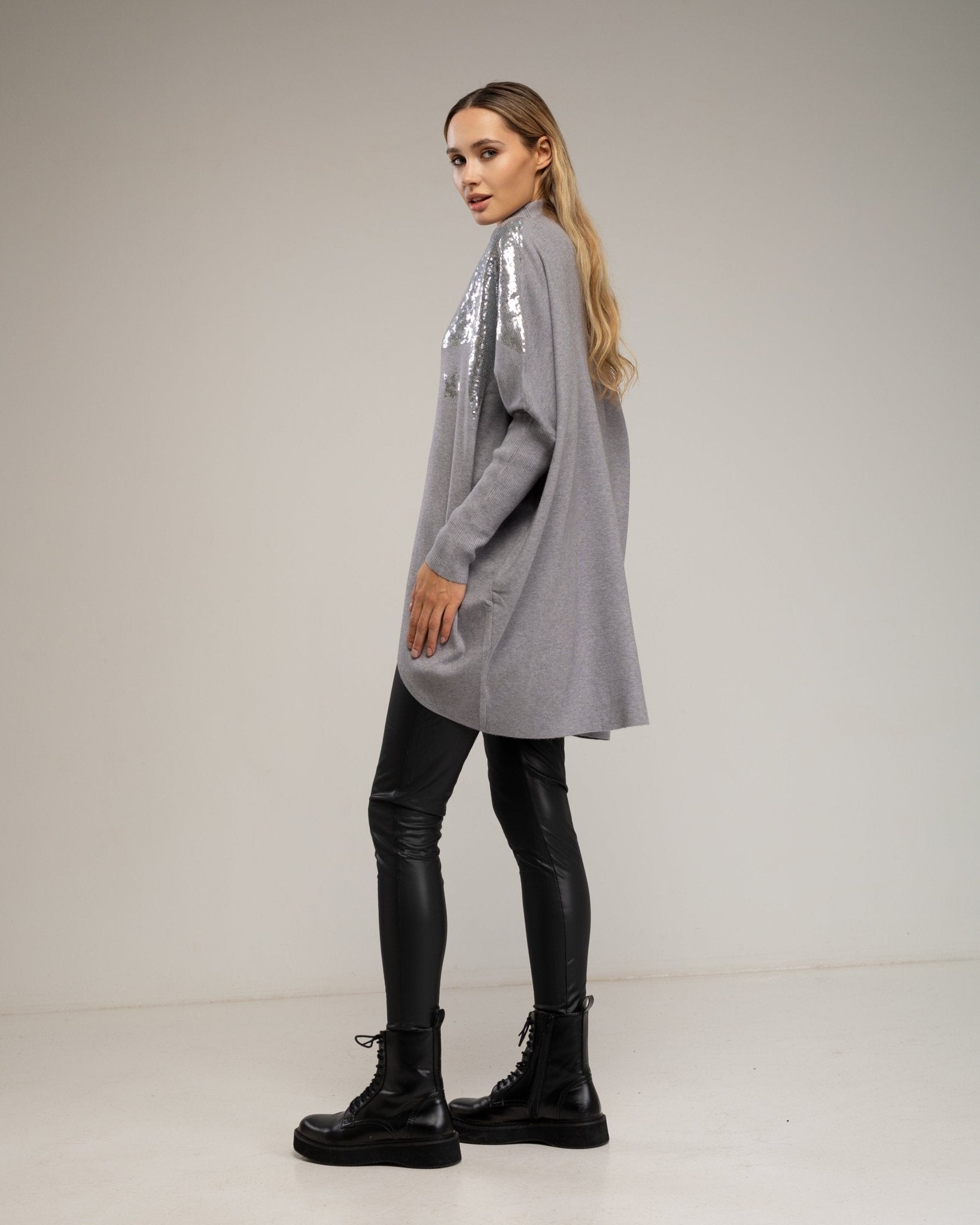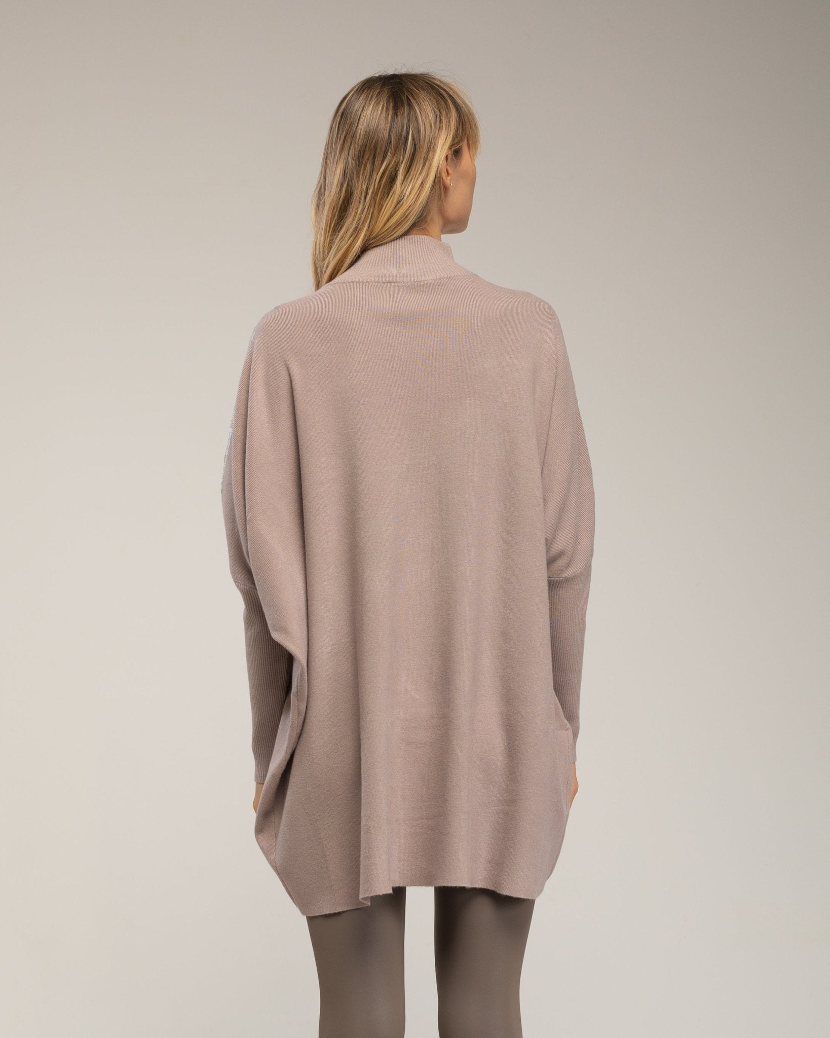 Este jersey de punto fino amplio combina un diseño moderno con un toque de glamour. Su cuello perkins aporta elegancia, mientras que el bajo irregular y las estrellas de strass crean un efecto llamativo y sofisticado. Ideal para looks casuales con un detalle especial que marca la diferencia.