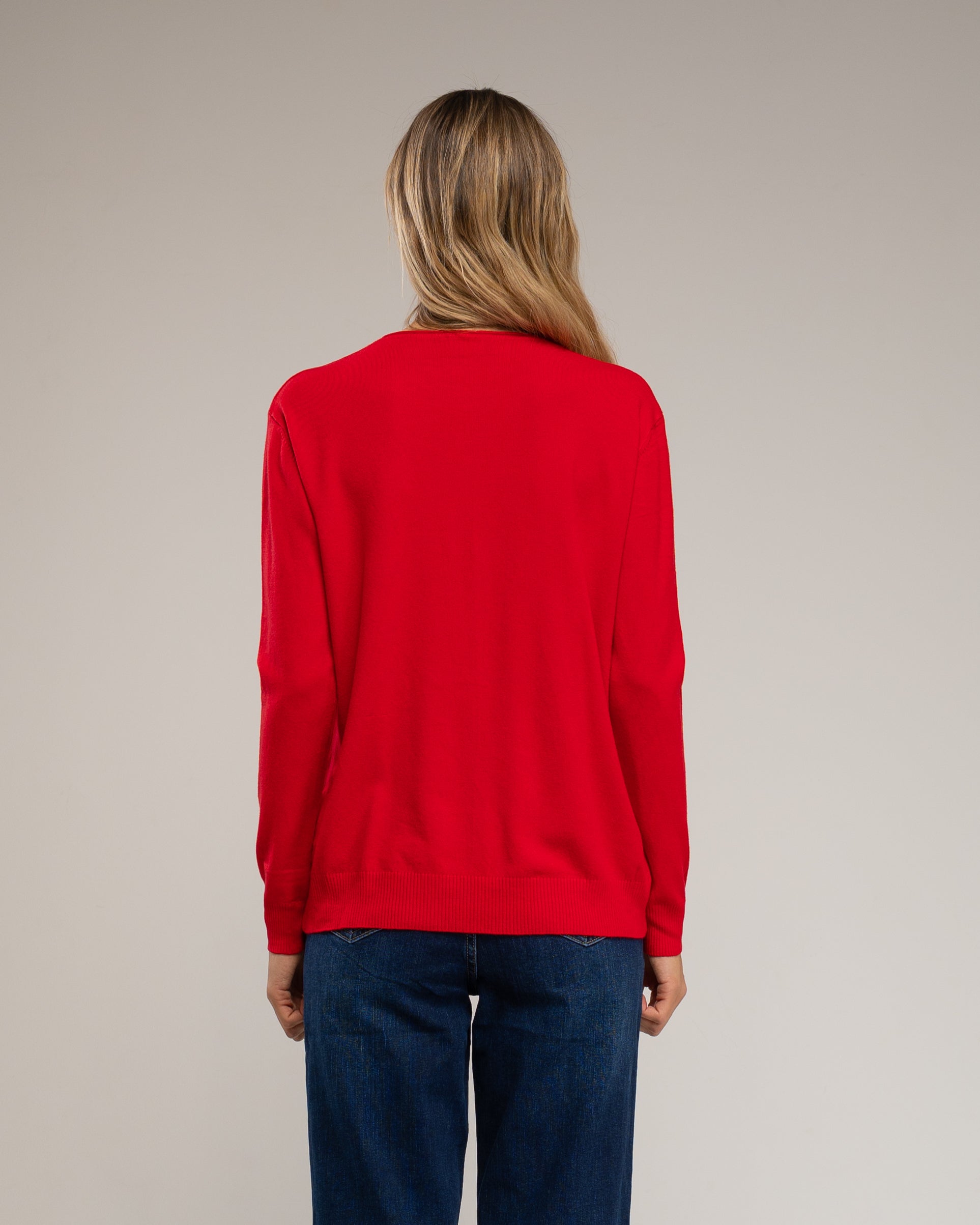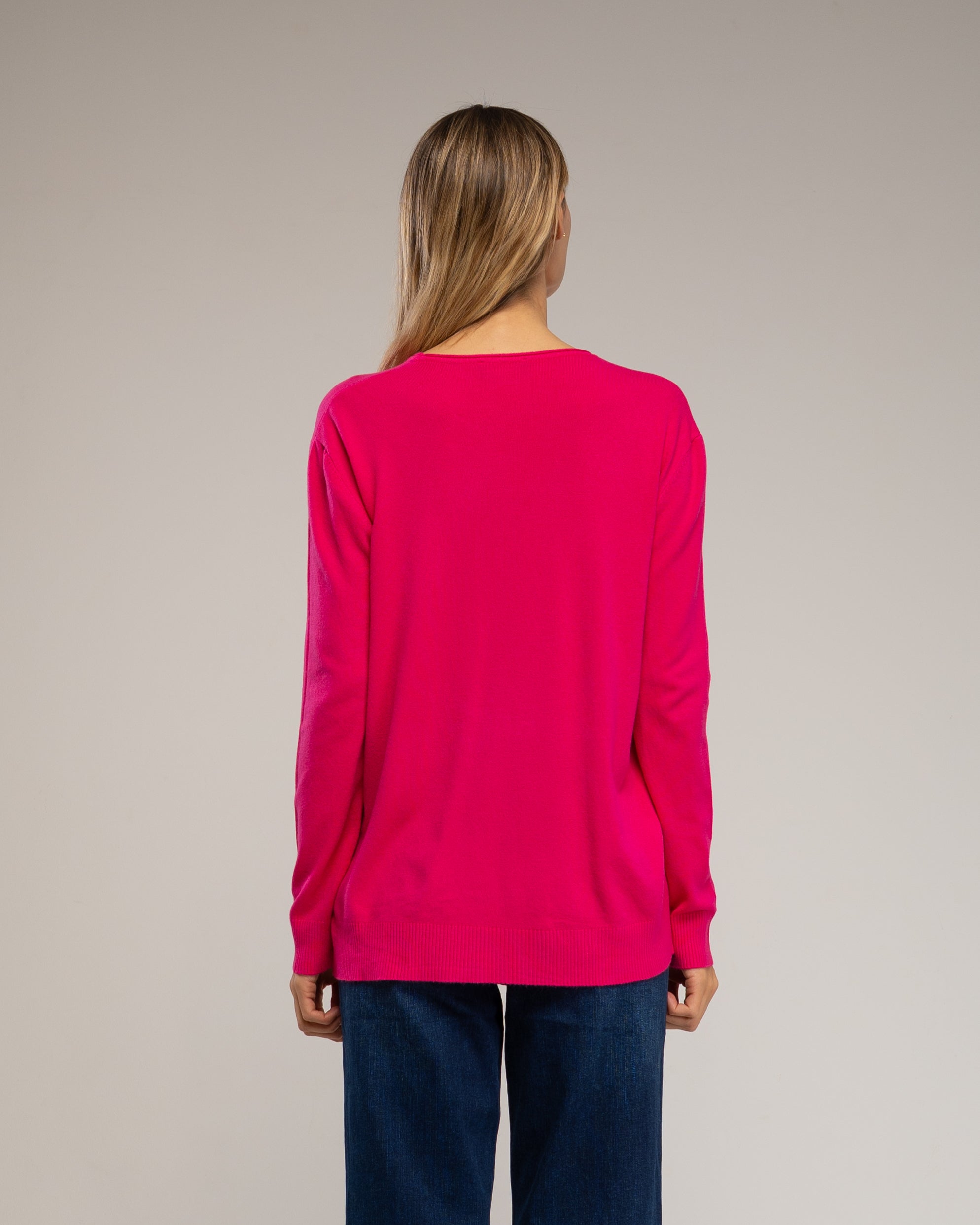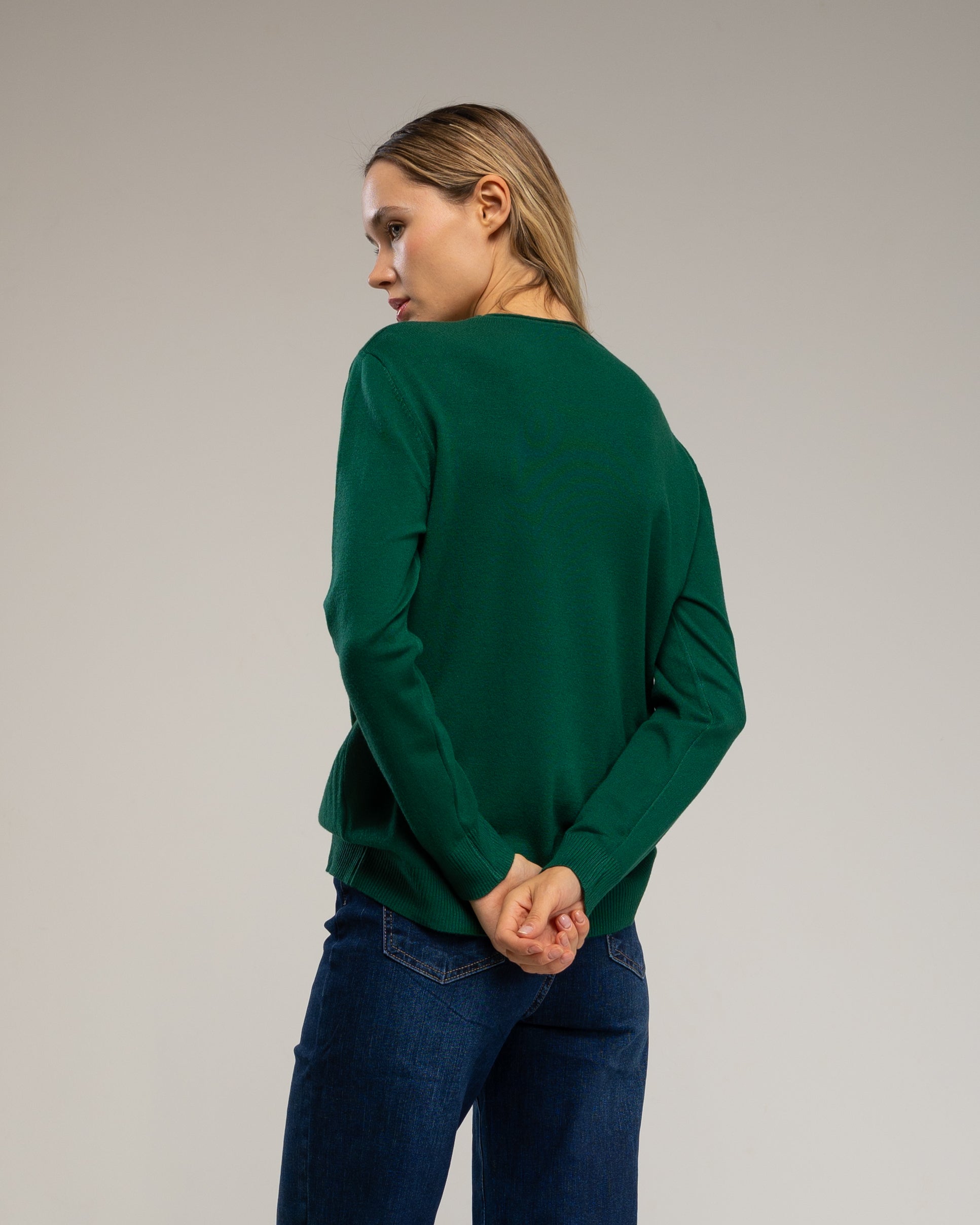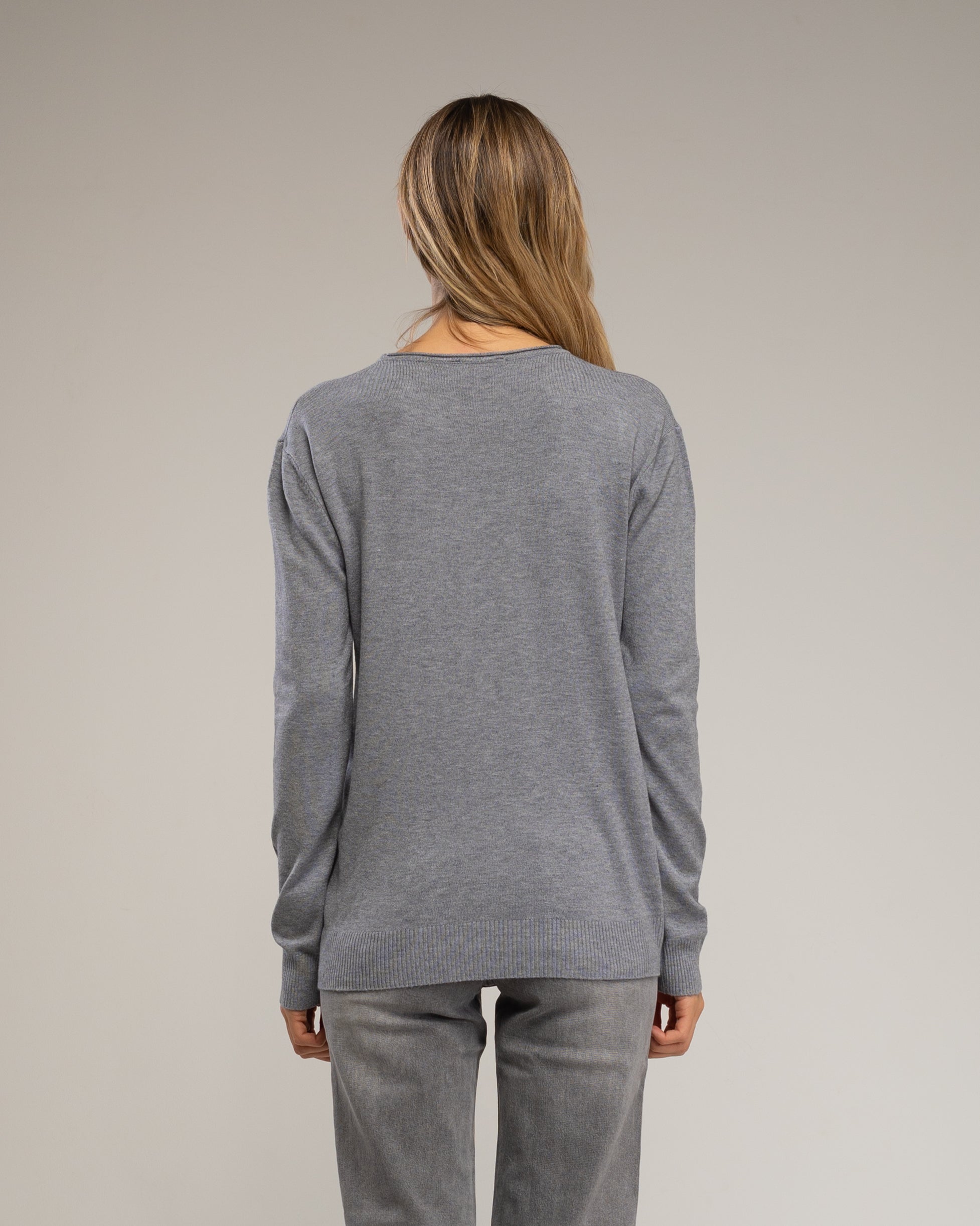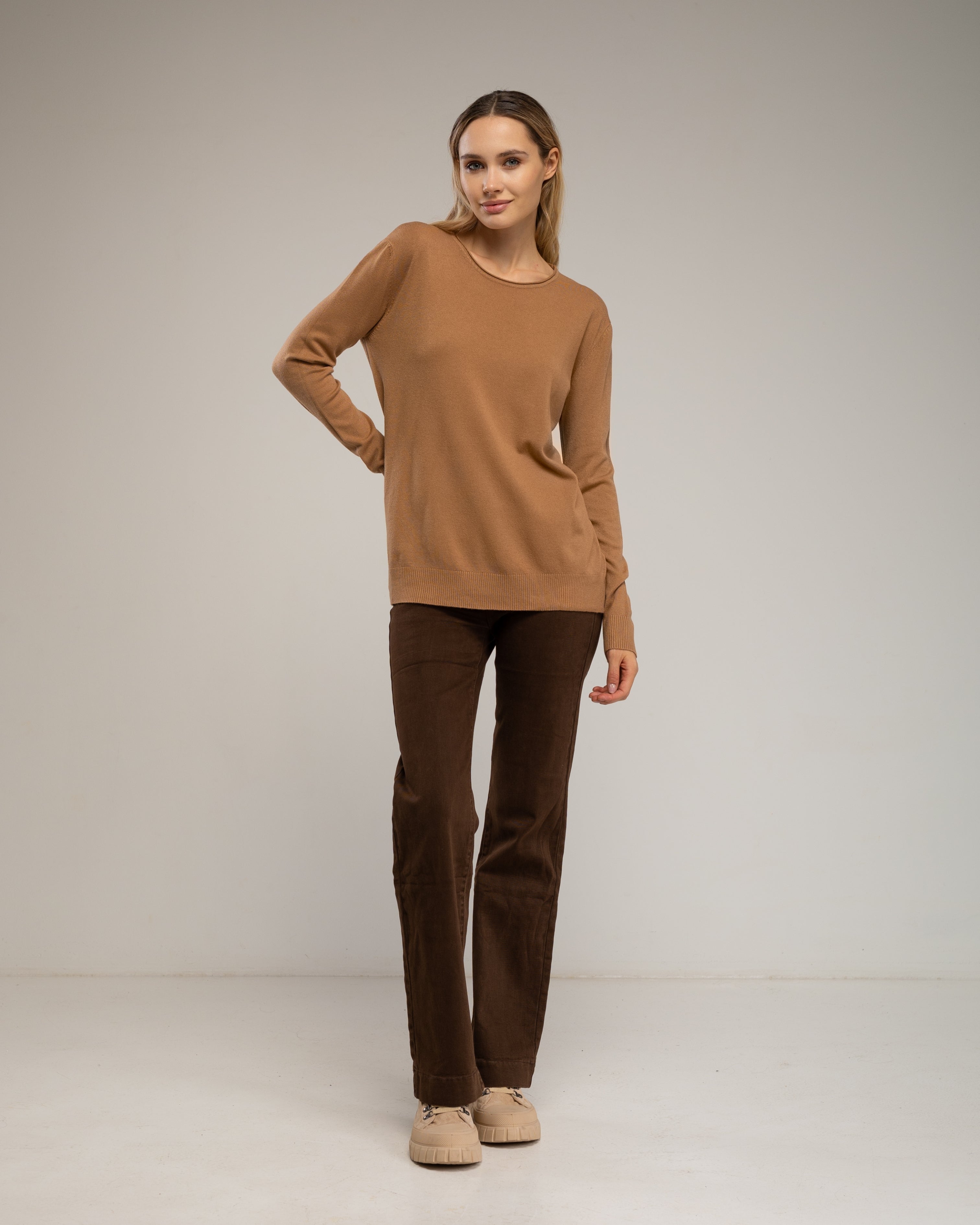 Este jersey de punto fino básico con cuello redondo es una prenda esencial para el día a día. Su tejido suave, ligero y elástico ofrece una gran comodidad y un ajuste favorecedor, ideal para combinar con cualquier estilo, desde looks casuales hasta más formales.