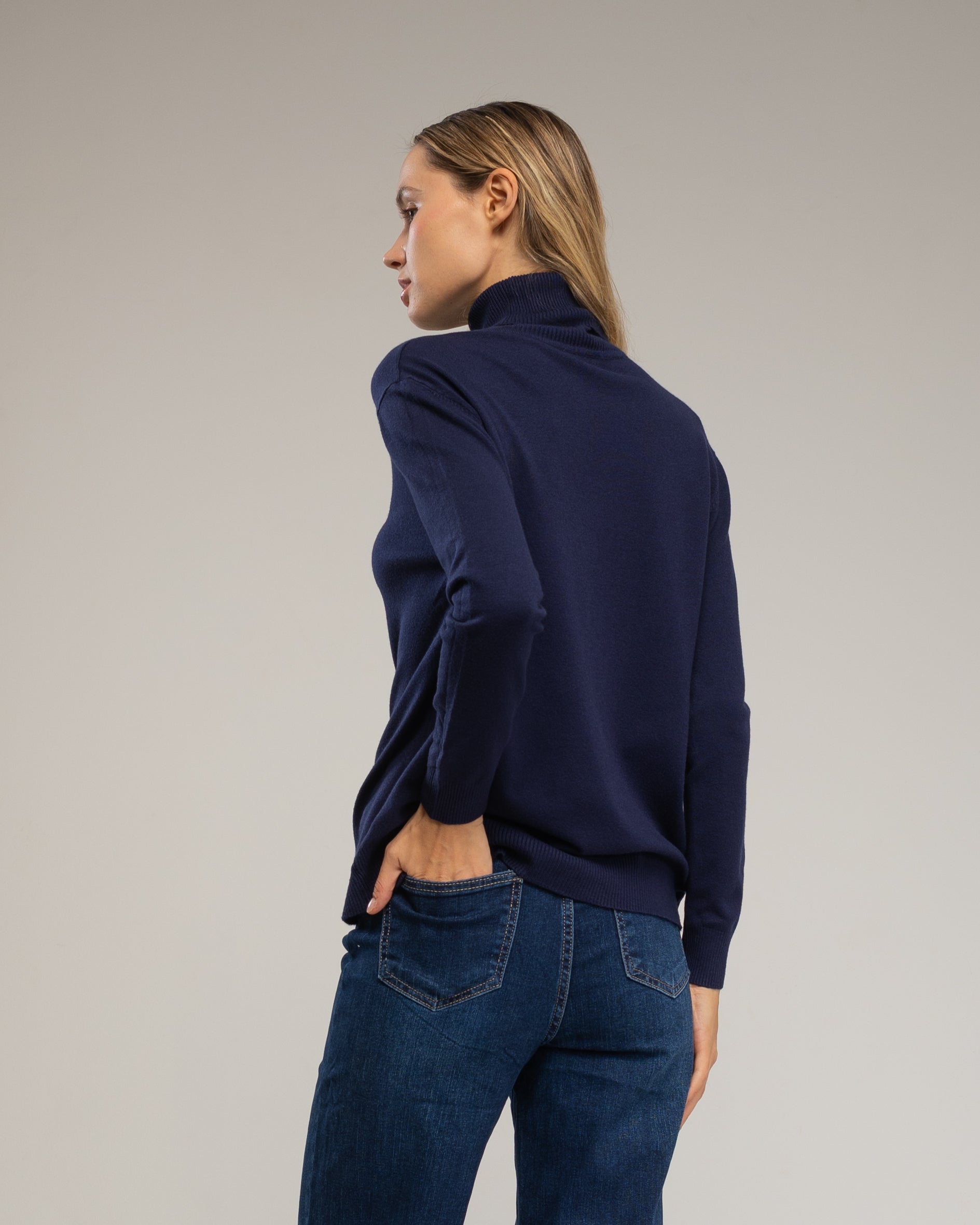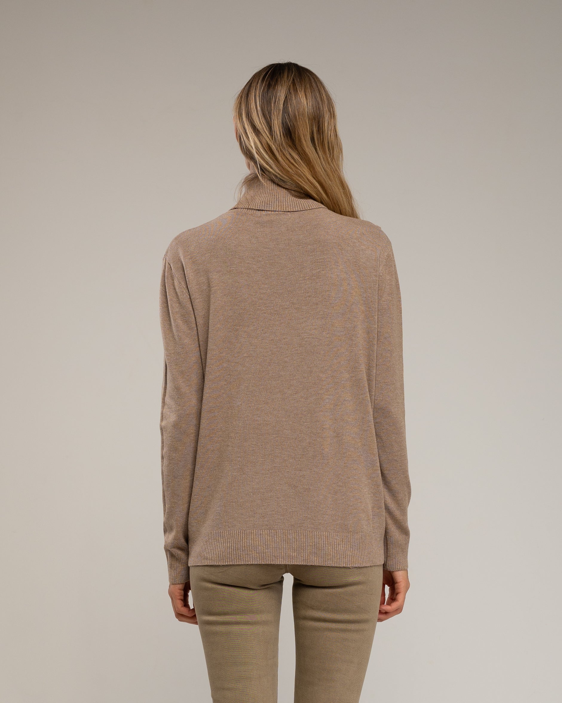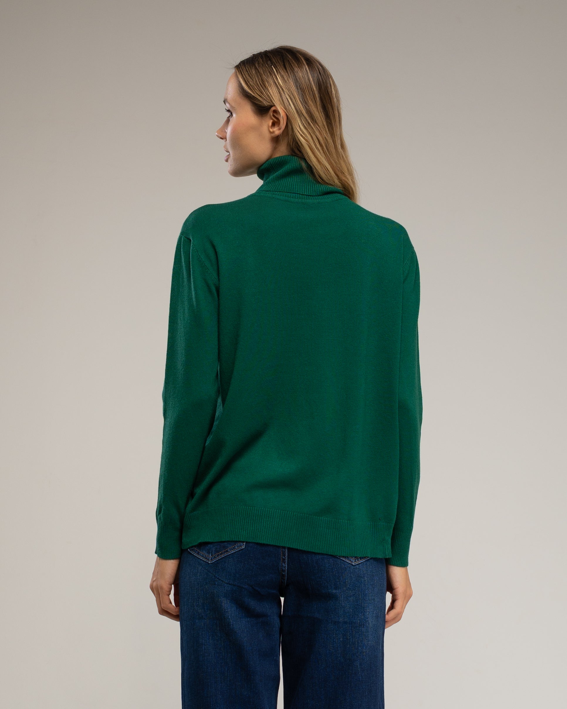 Detalles: cuello vuelto, tejido de punto fino y elástico, diseño básico y elegante