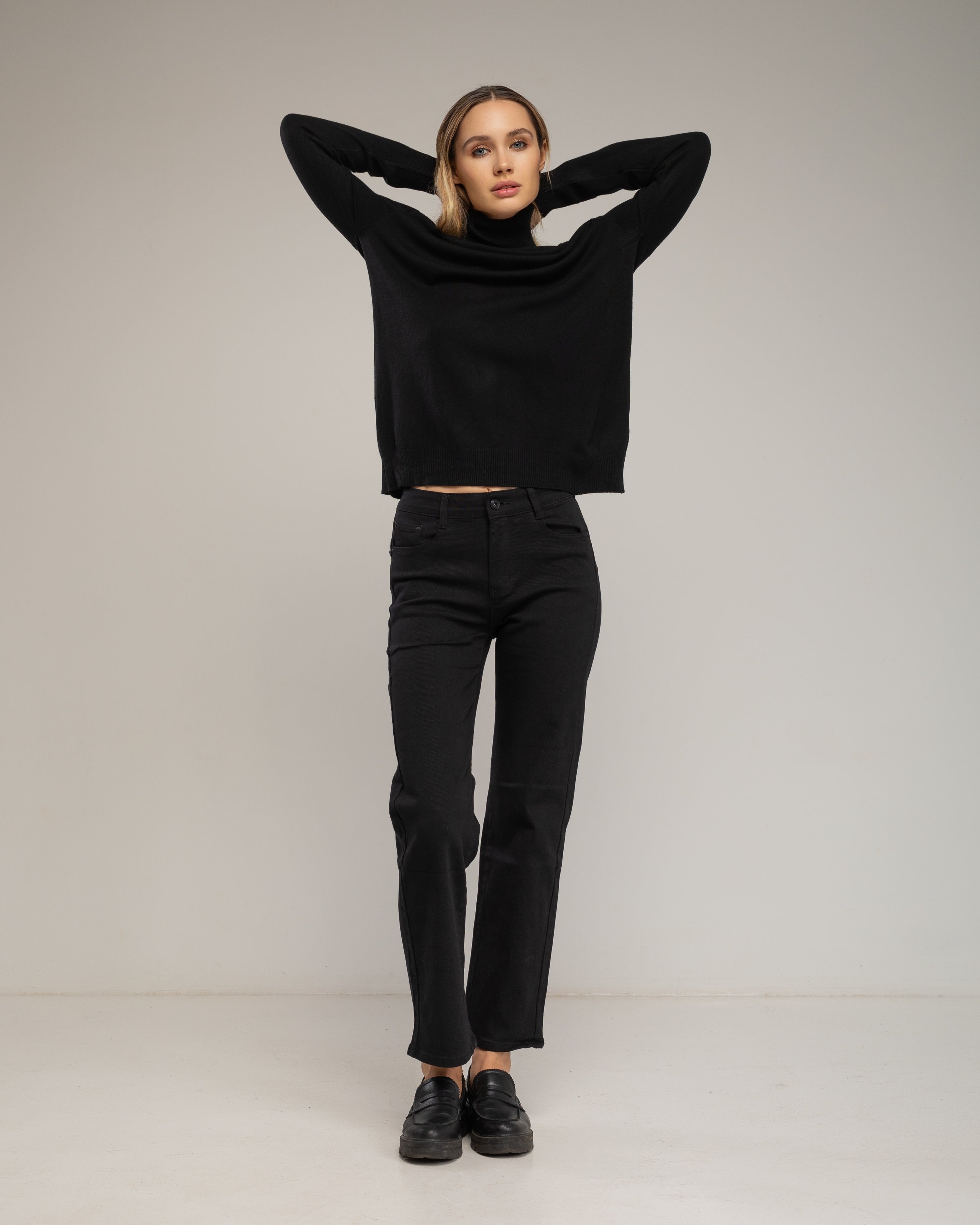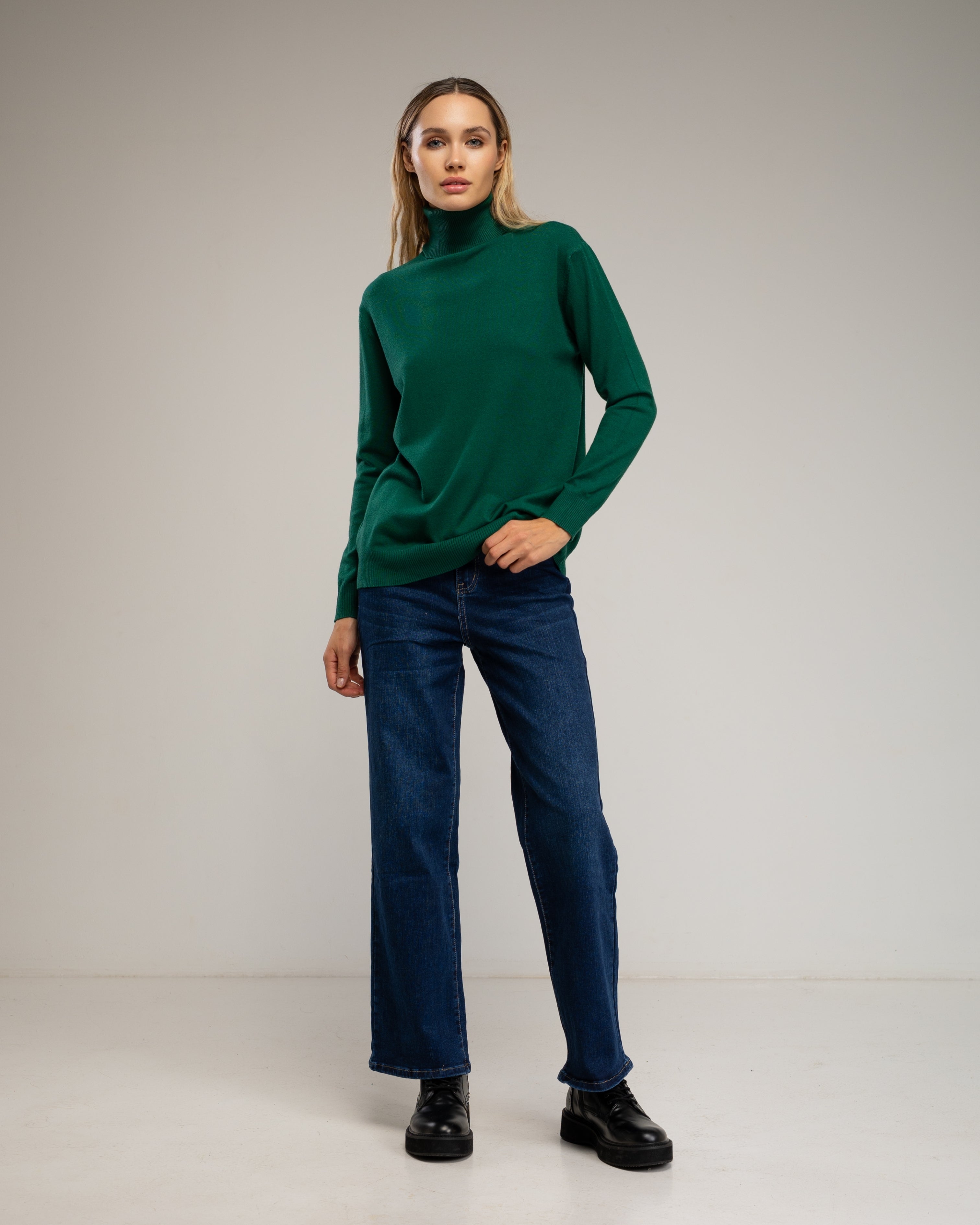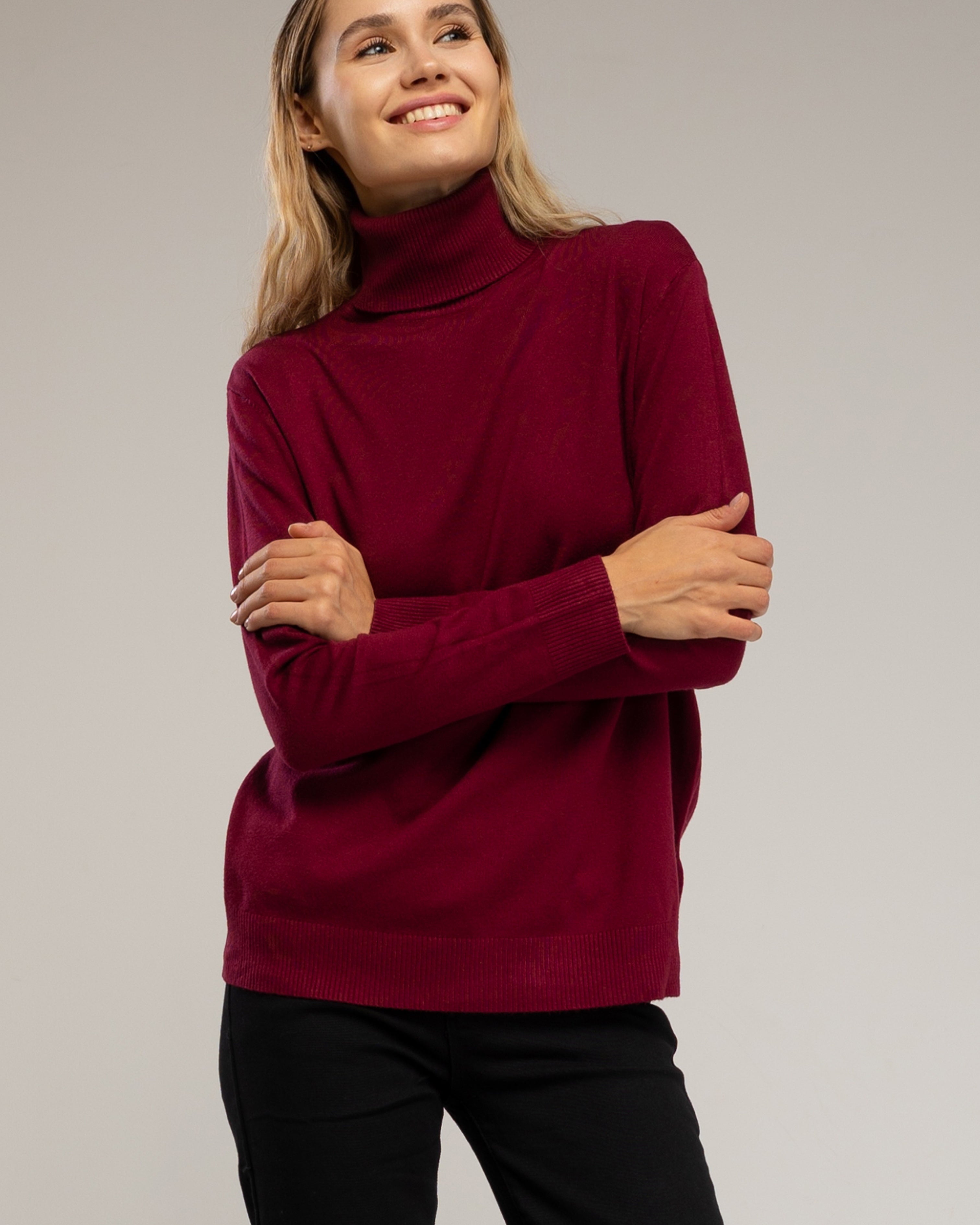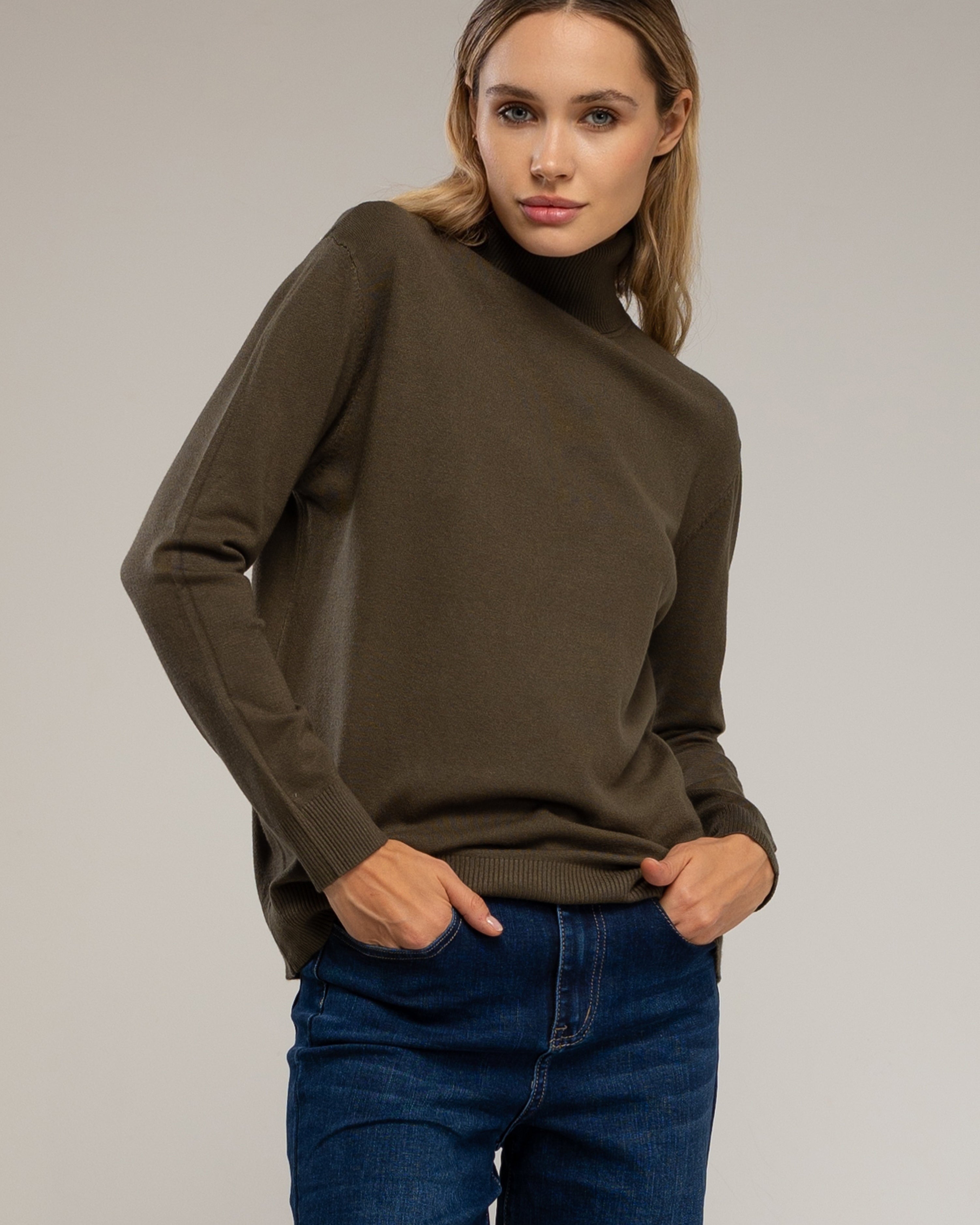 Detalles: cuello vuelto, tejido de punto fino y elástico, diseño básico y elegante