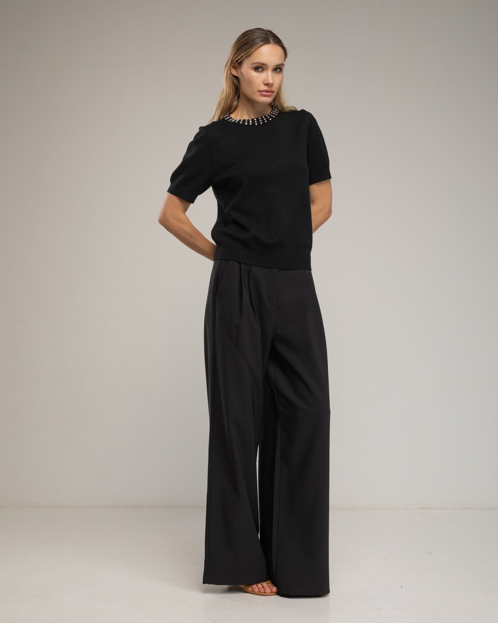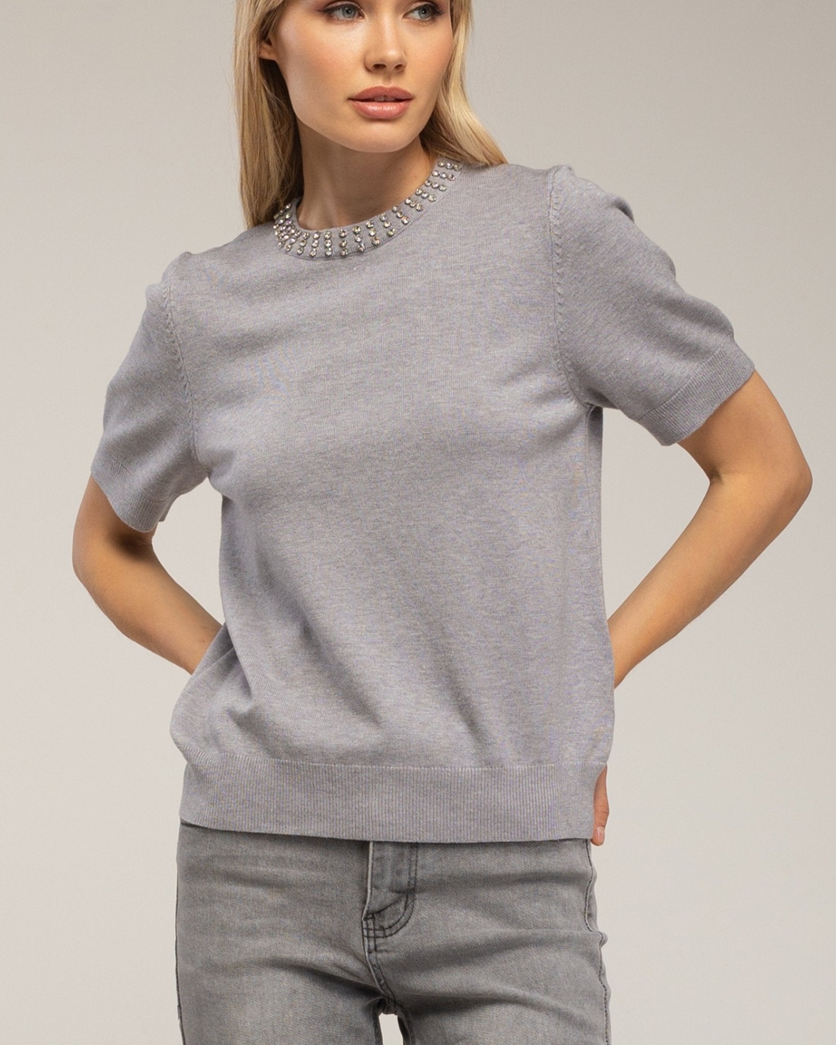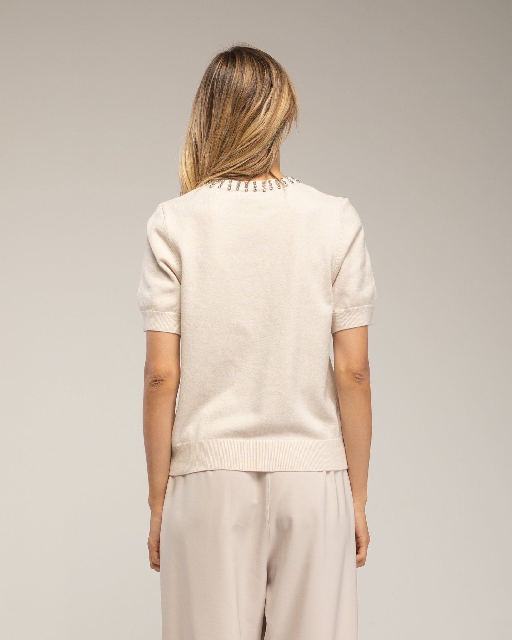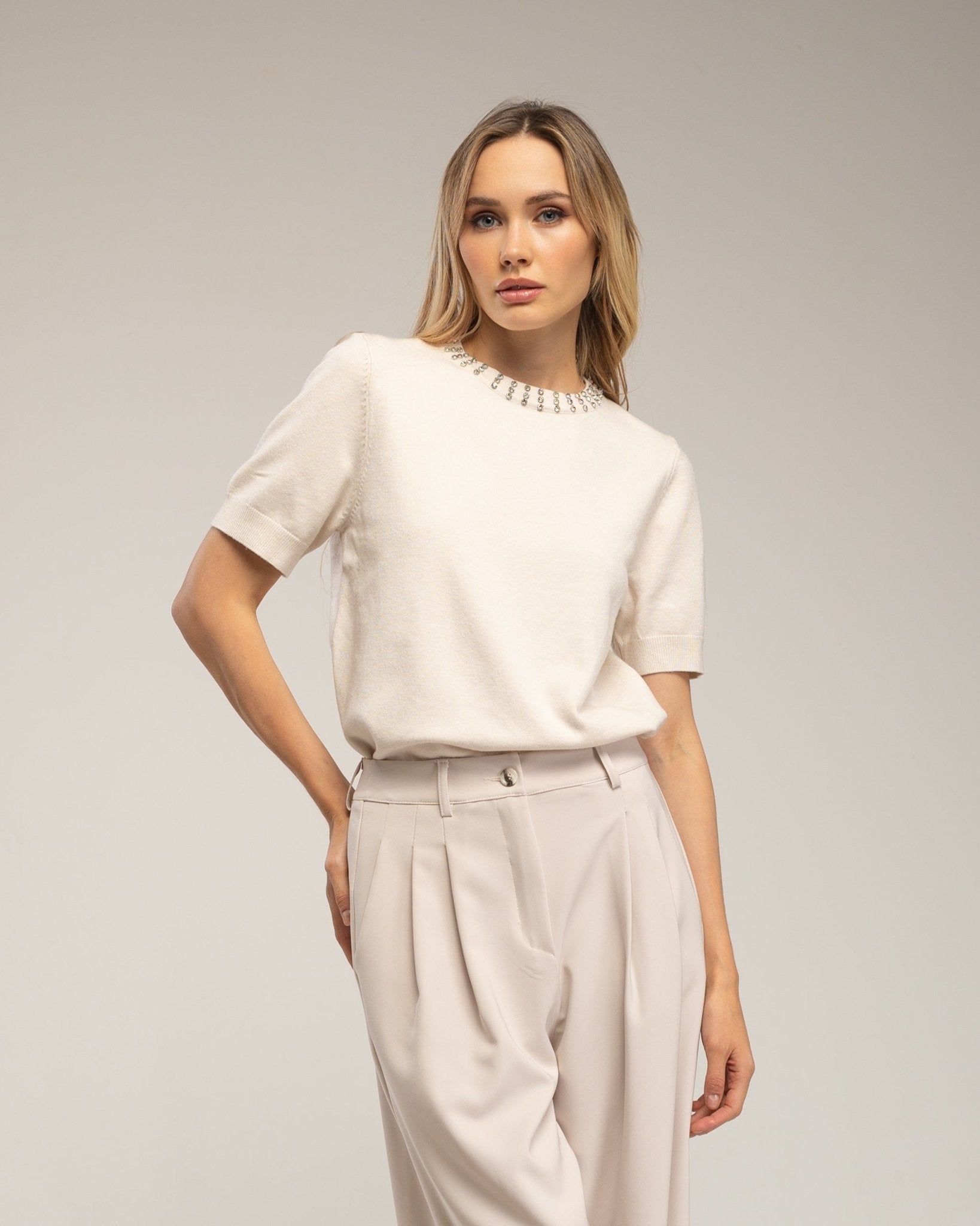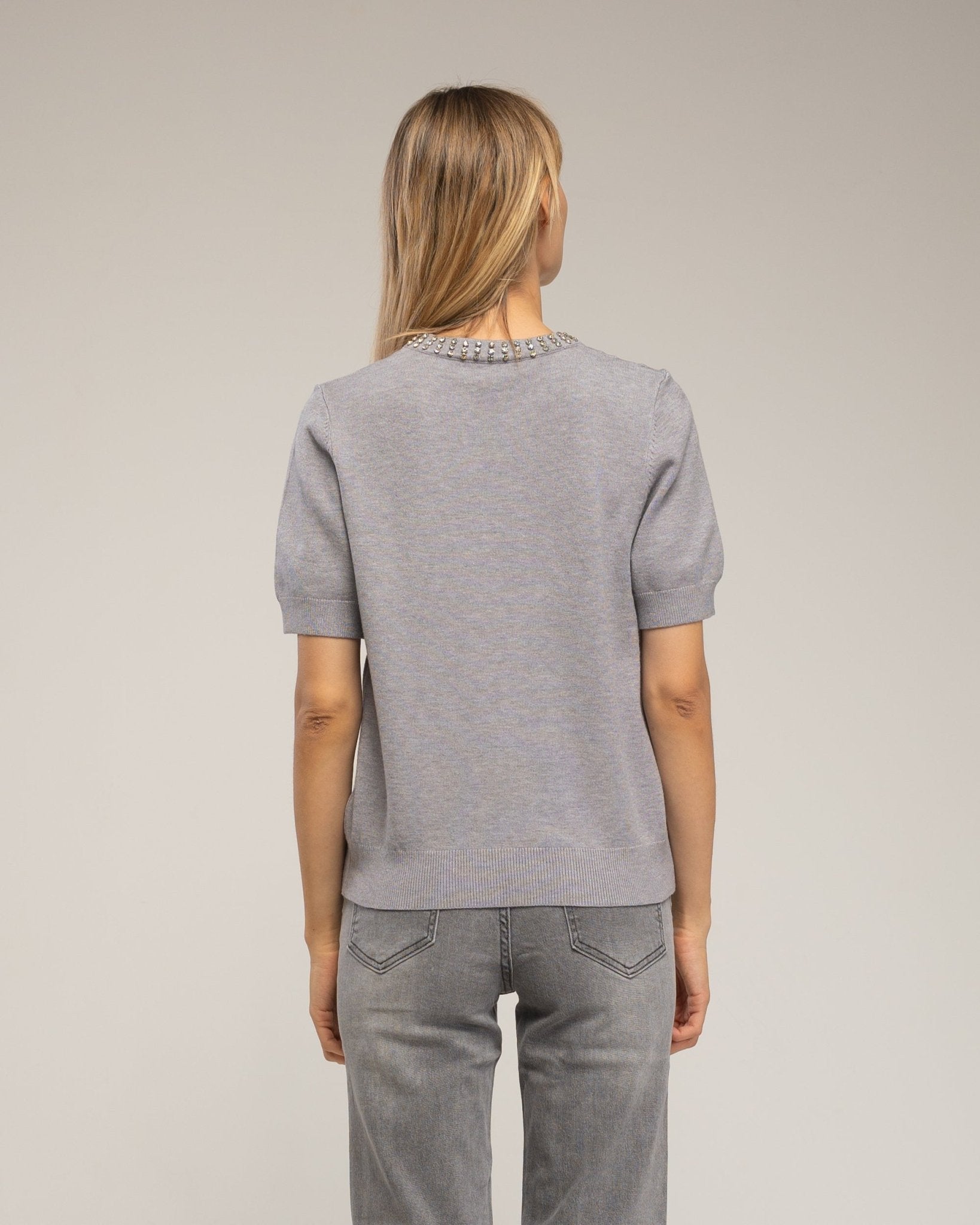 Jersey de punto fino con detalles de piedras de strass en el cuello.