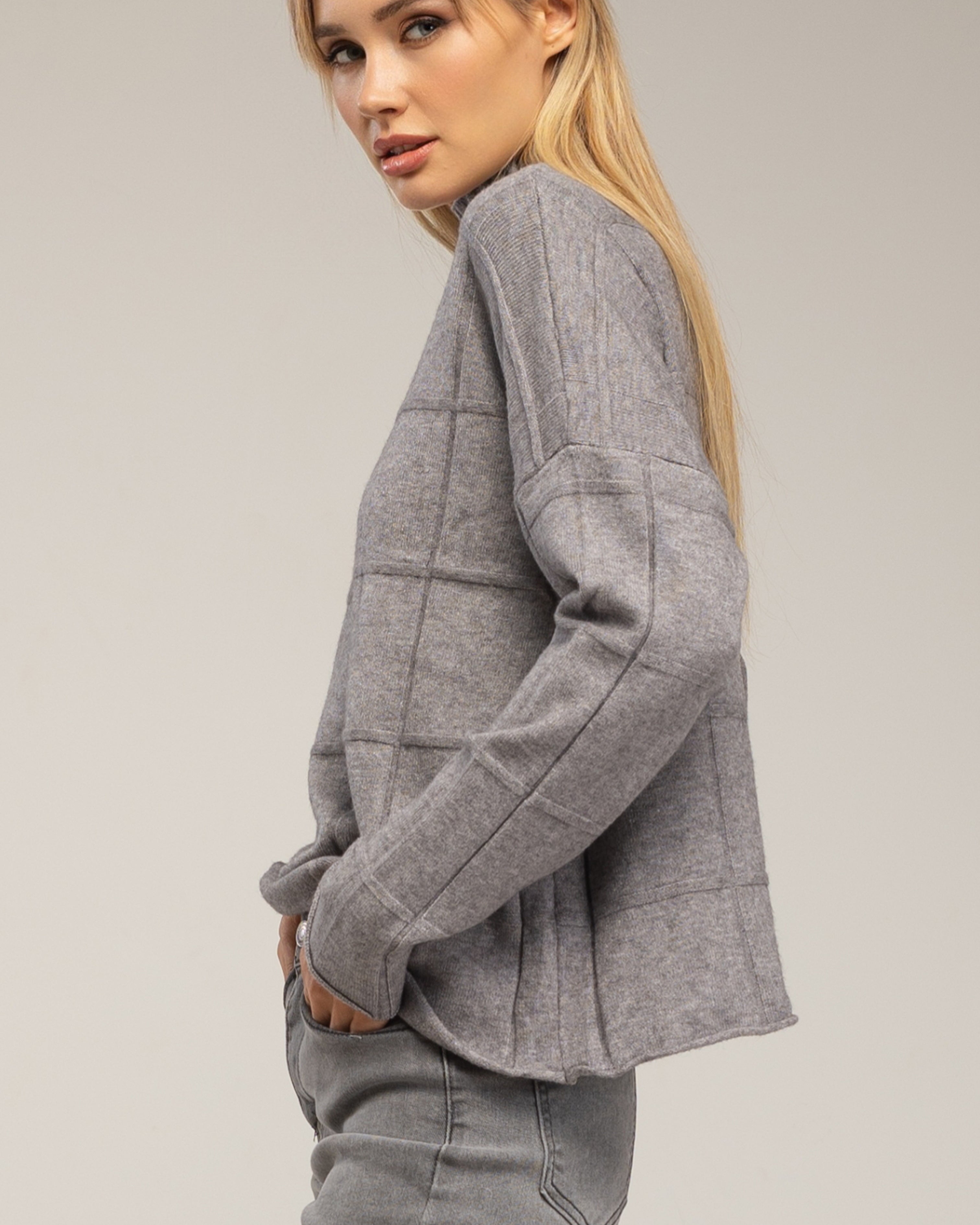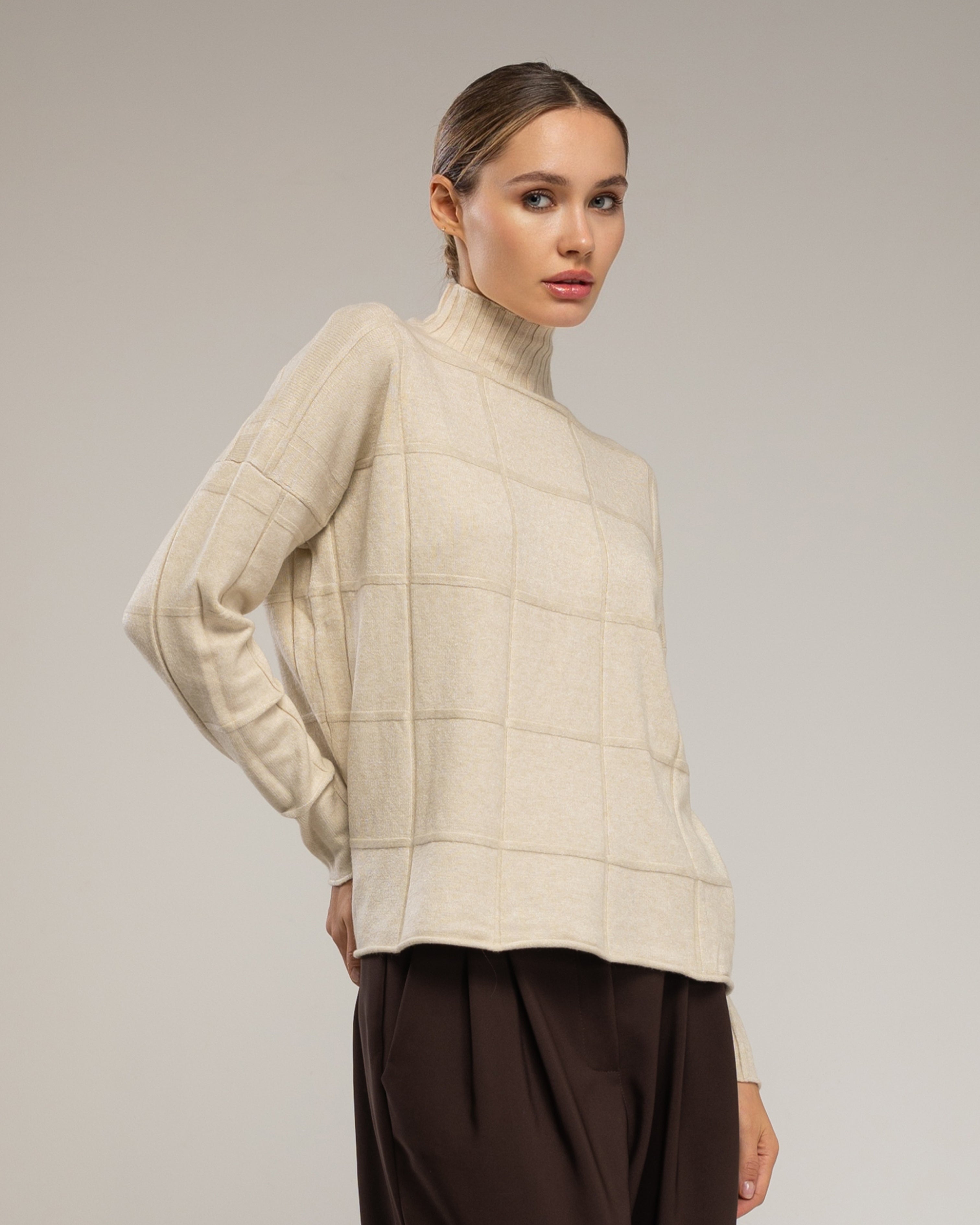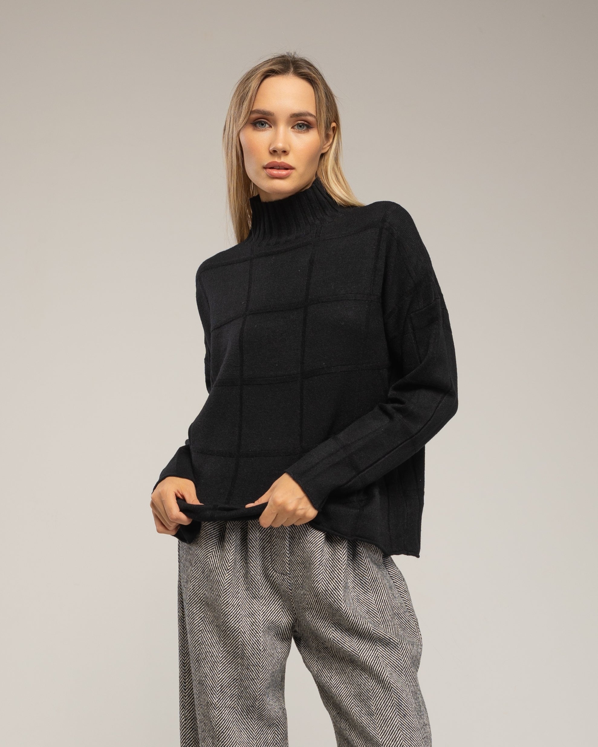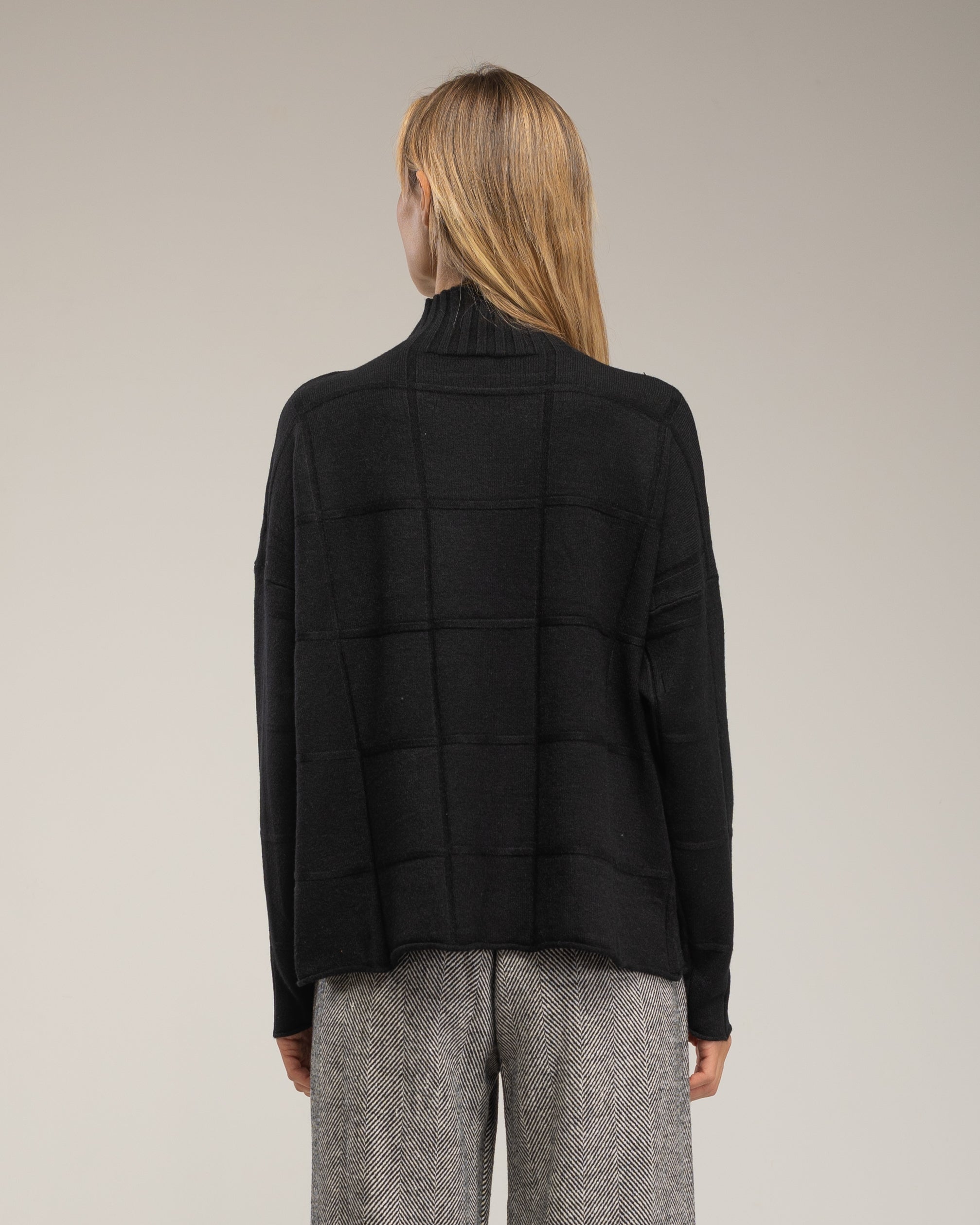 Jersey oversize de punto con cuello perkins y detalles de cuadros
