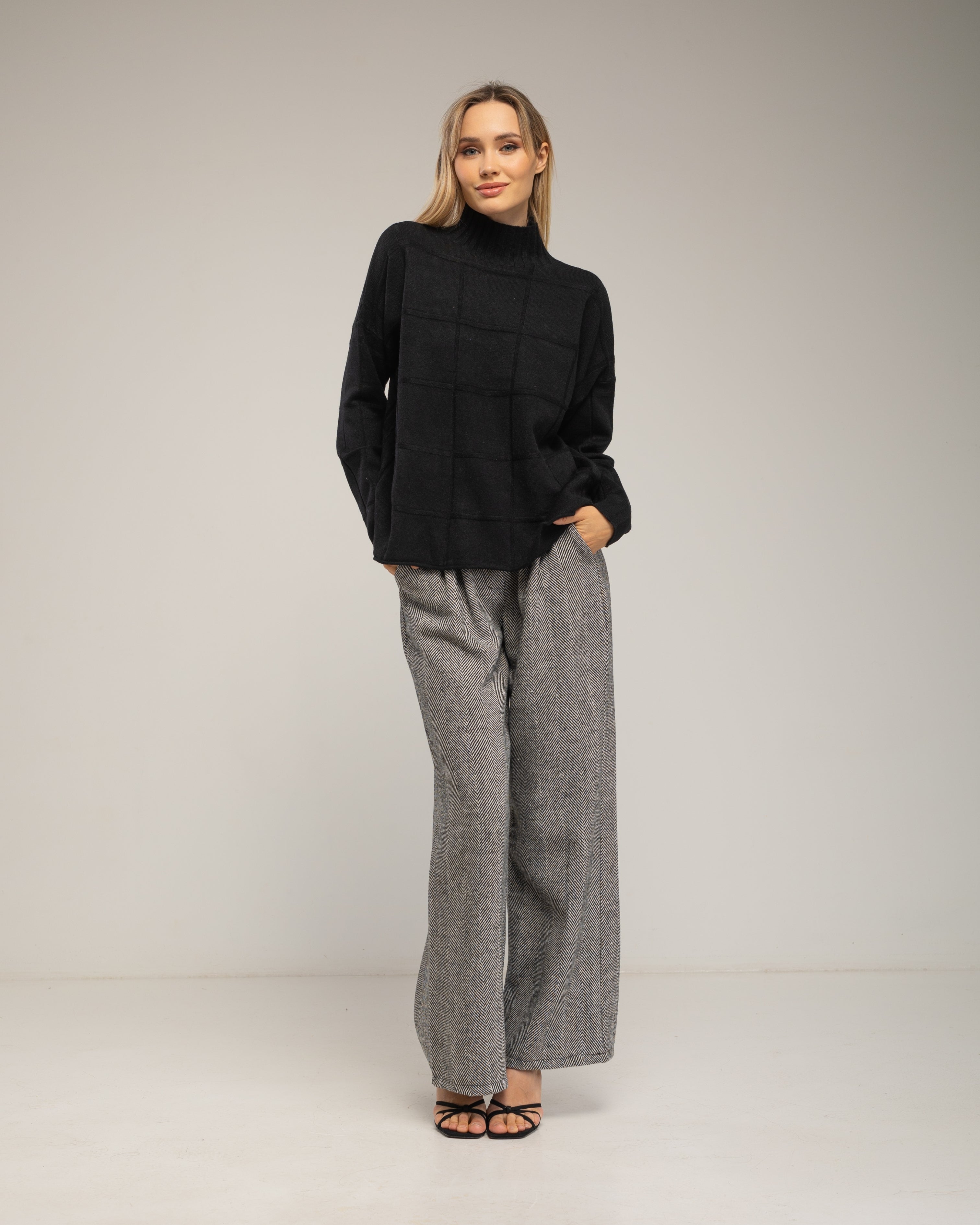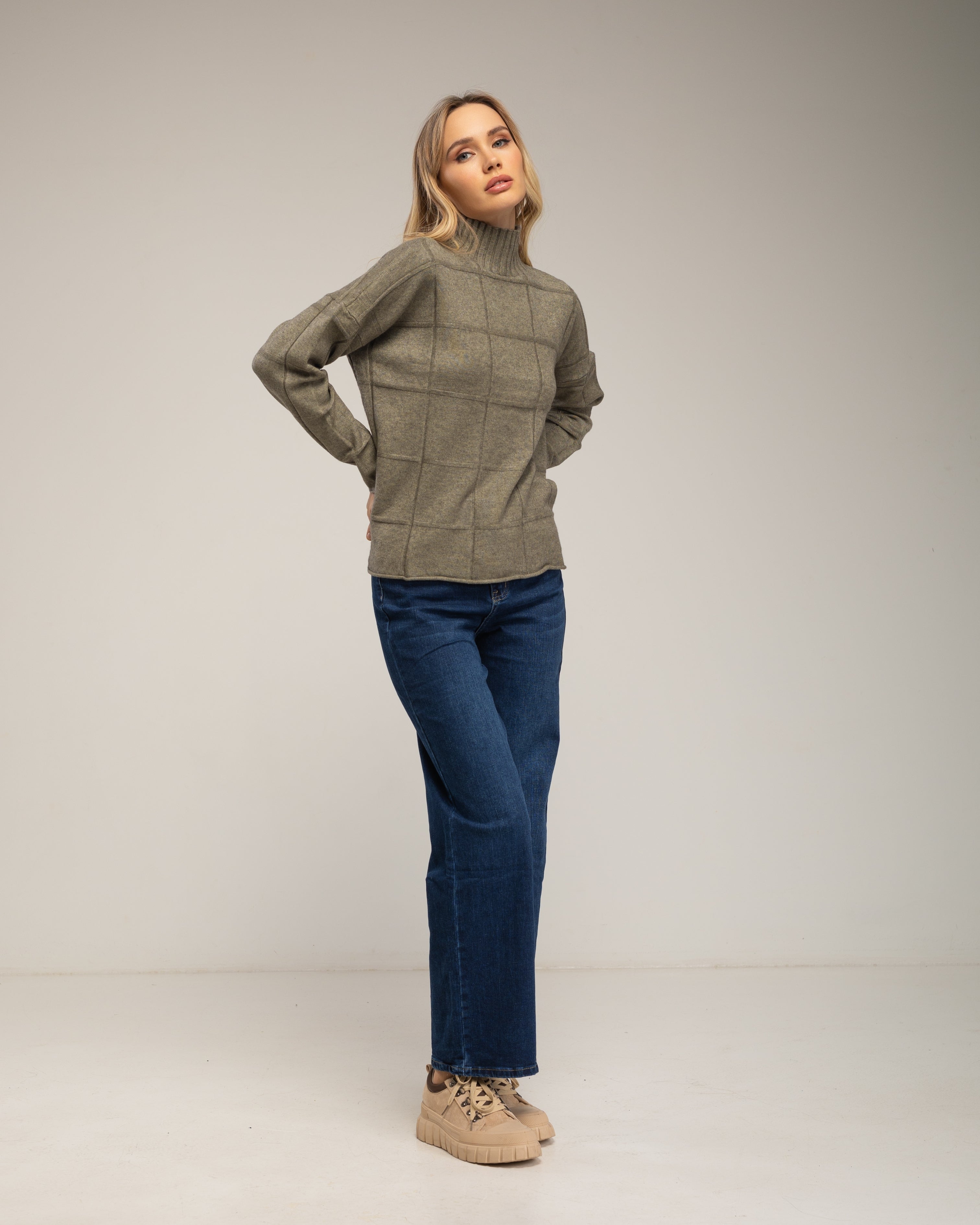 Este jersey oversize de punto destaca por su estilo moderno y acogedor. El cuello perkins aporta un toque elegante, mientras que el diseño de cuadros añade textura y personalidad al conjunto. Perfecto para combinar con jeans o pantalones amplios y crear looks cómodos con un aire sofisticado.