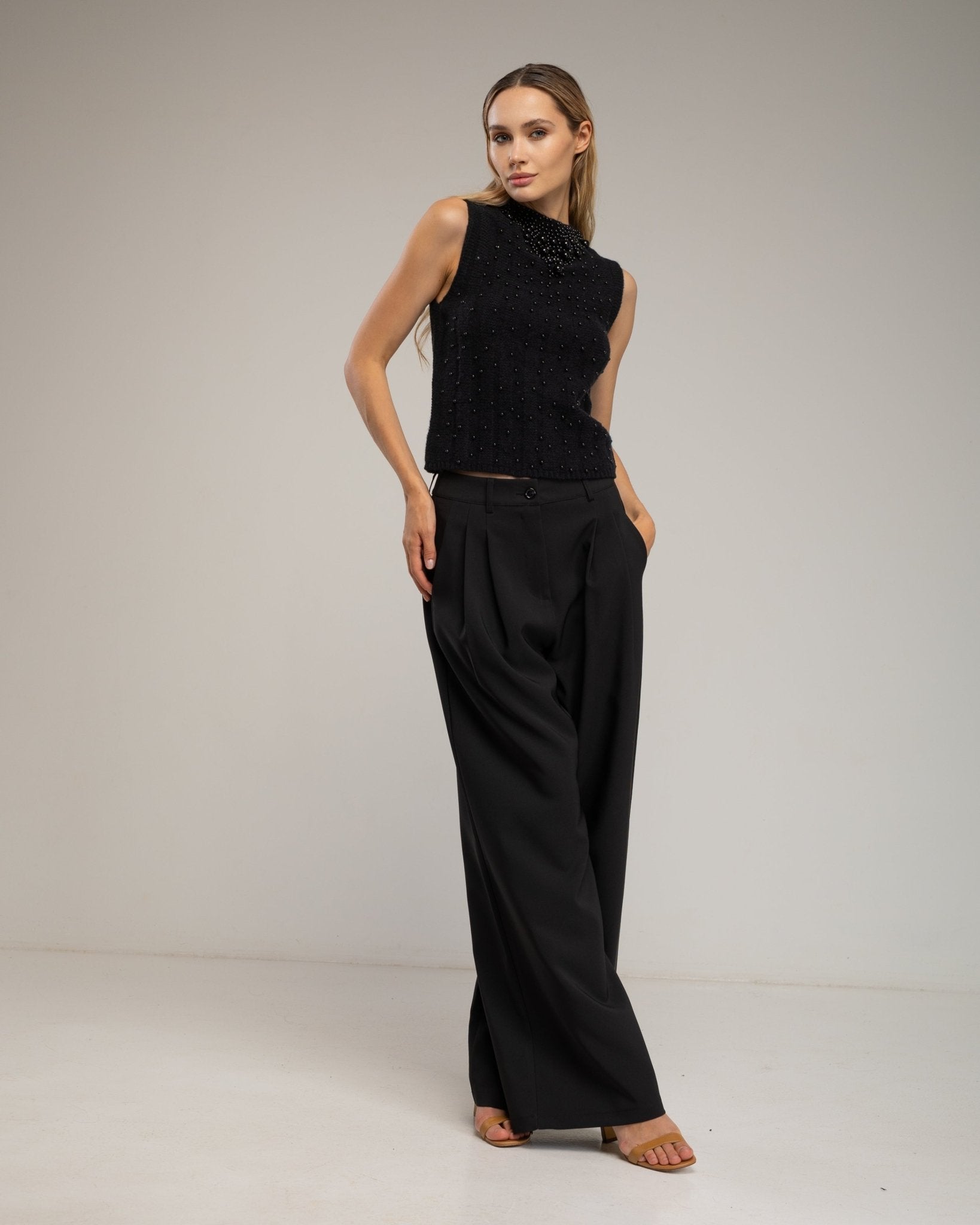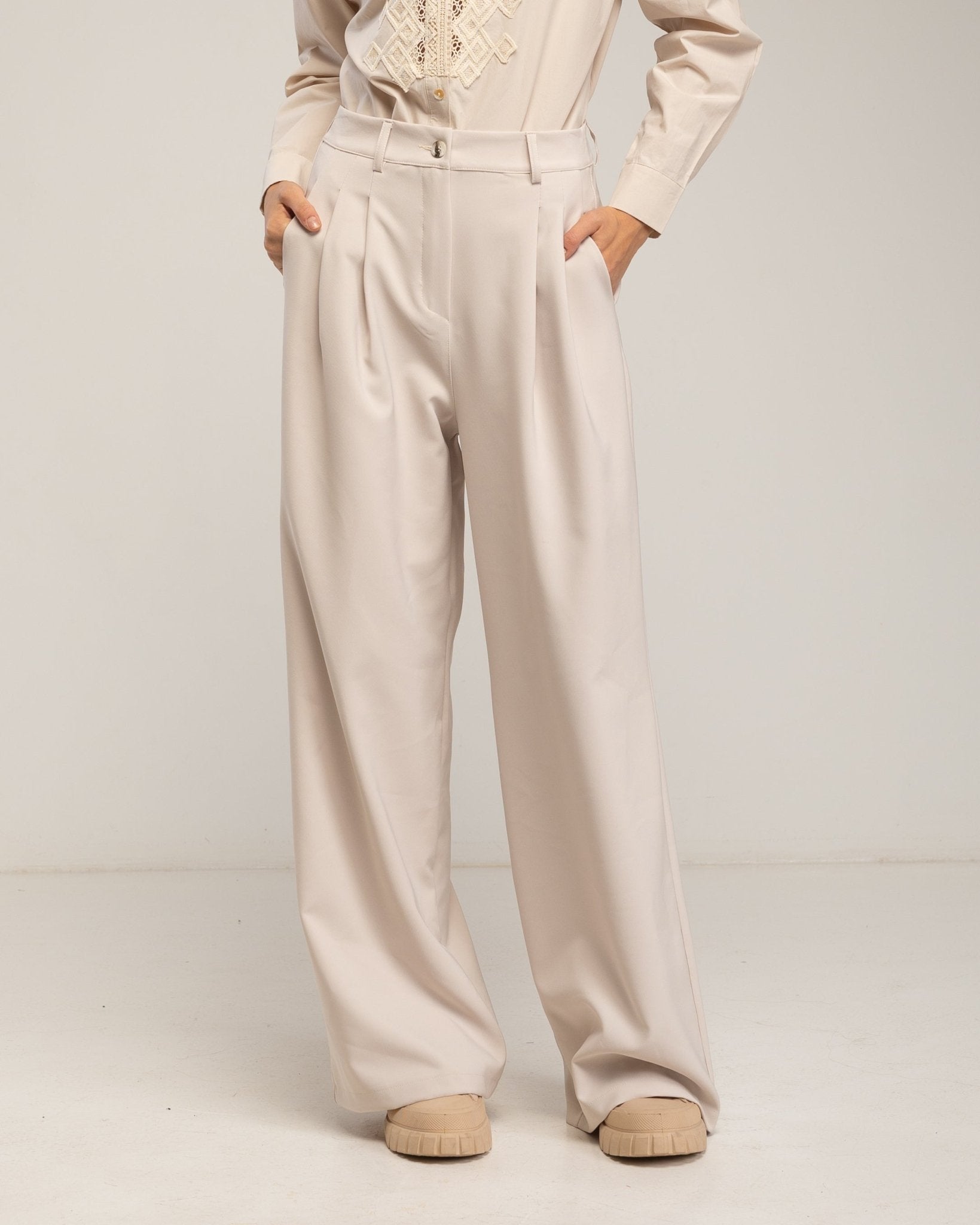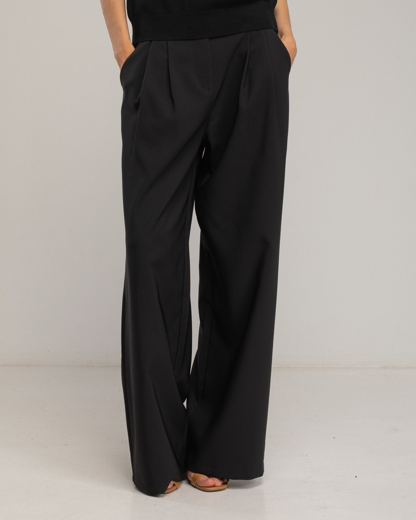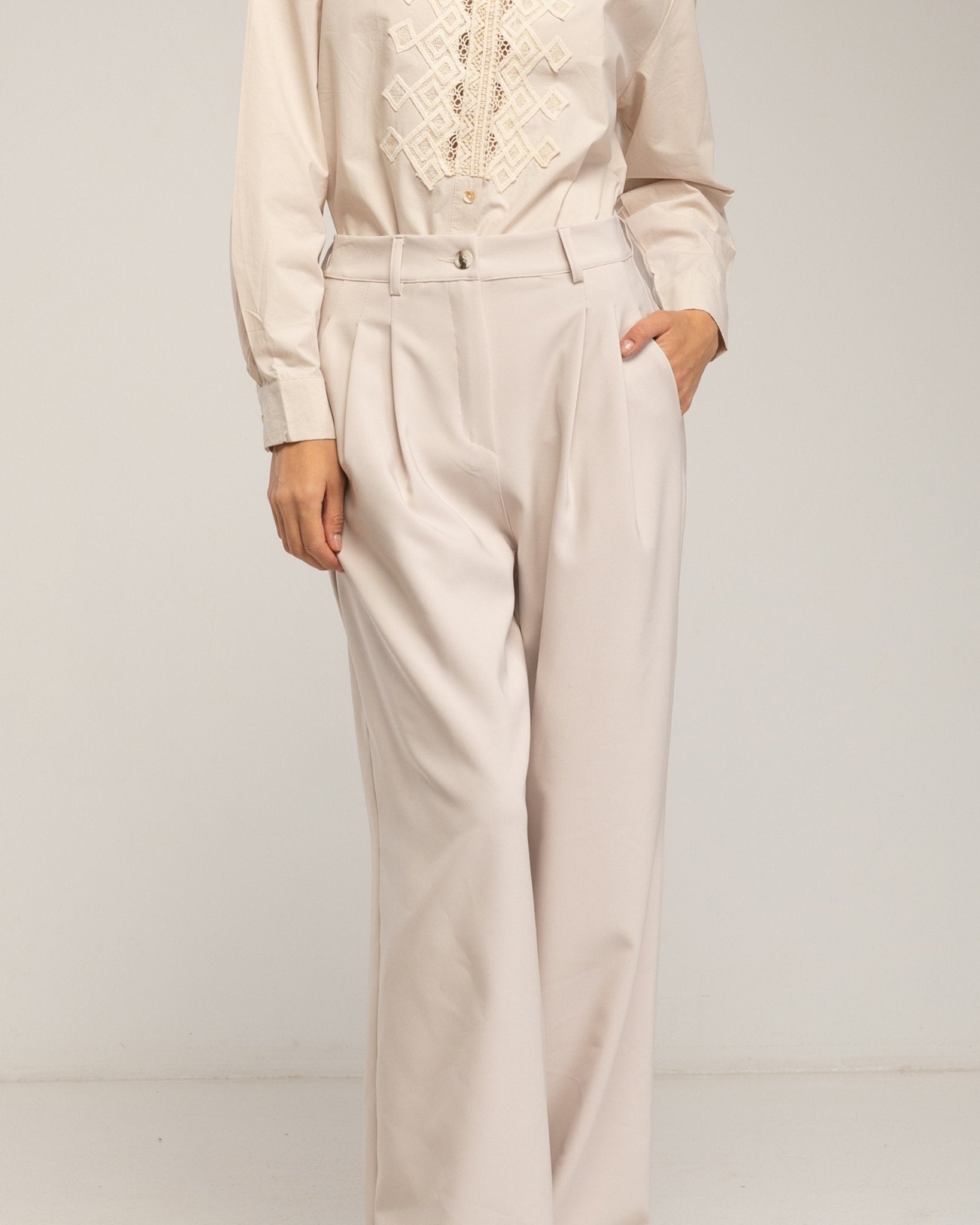 Pantalon de vestir corte recto con pinzas, amplio, y bolsiilos.