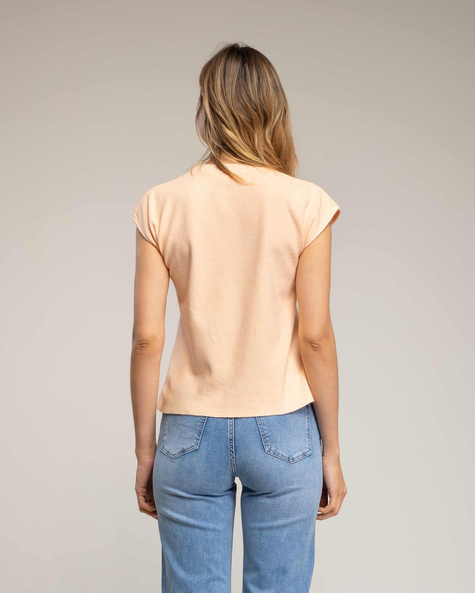 Este top de punto sin mangas es una prenda básica y funcional, ideal para completar cualquier fondo de armario. Su diseño liso con cuello redondo ofrece versatilidad y un estilo limpio, perfecto para combinar tanto en looks casuales como en conjuntos más cuidados.