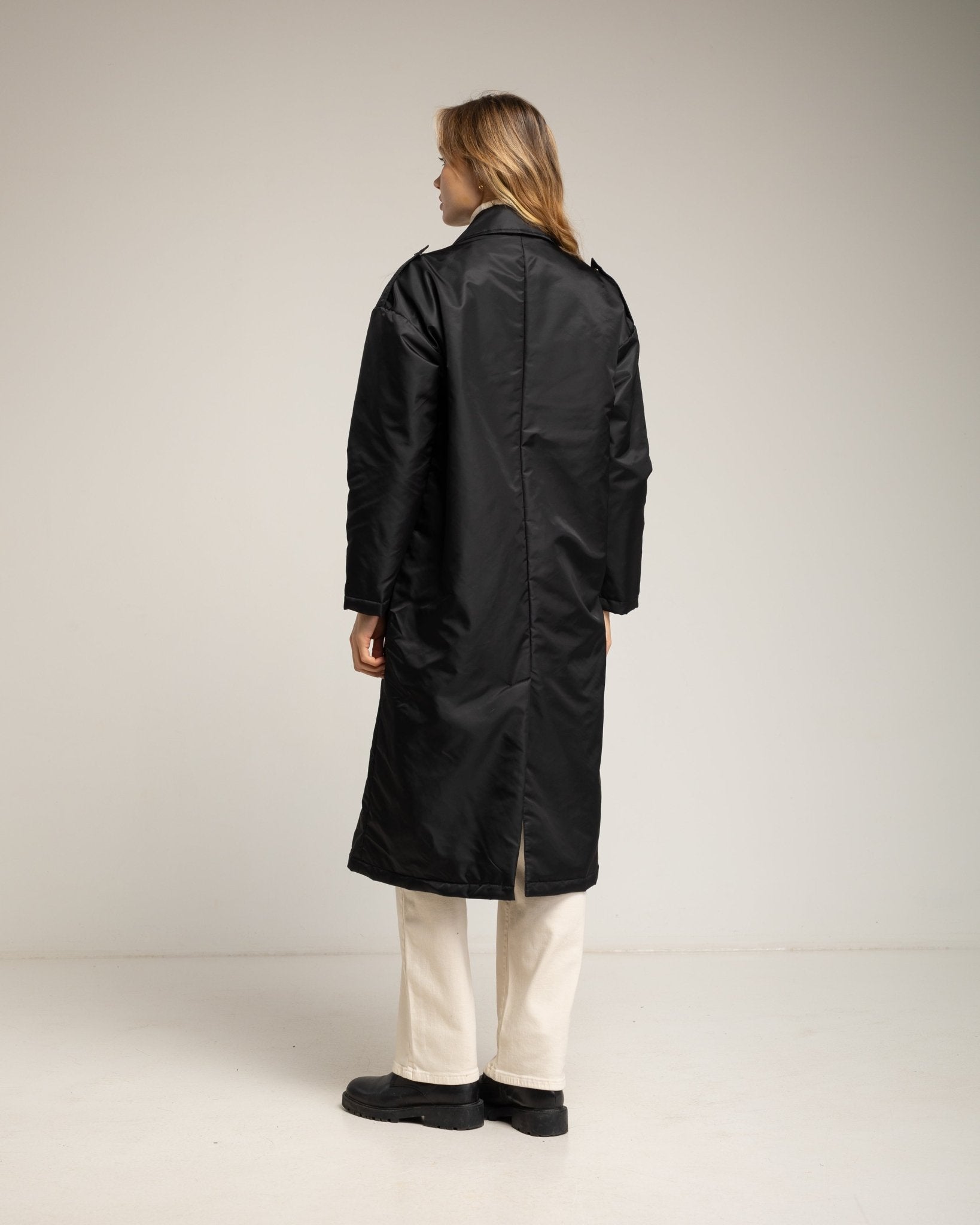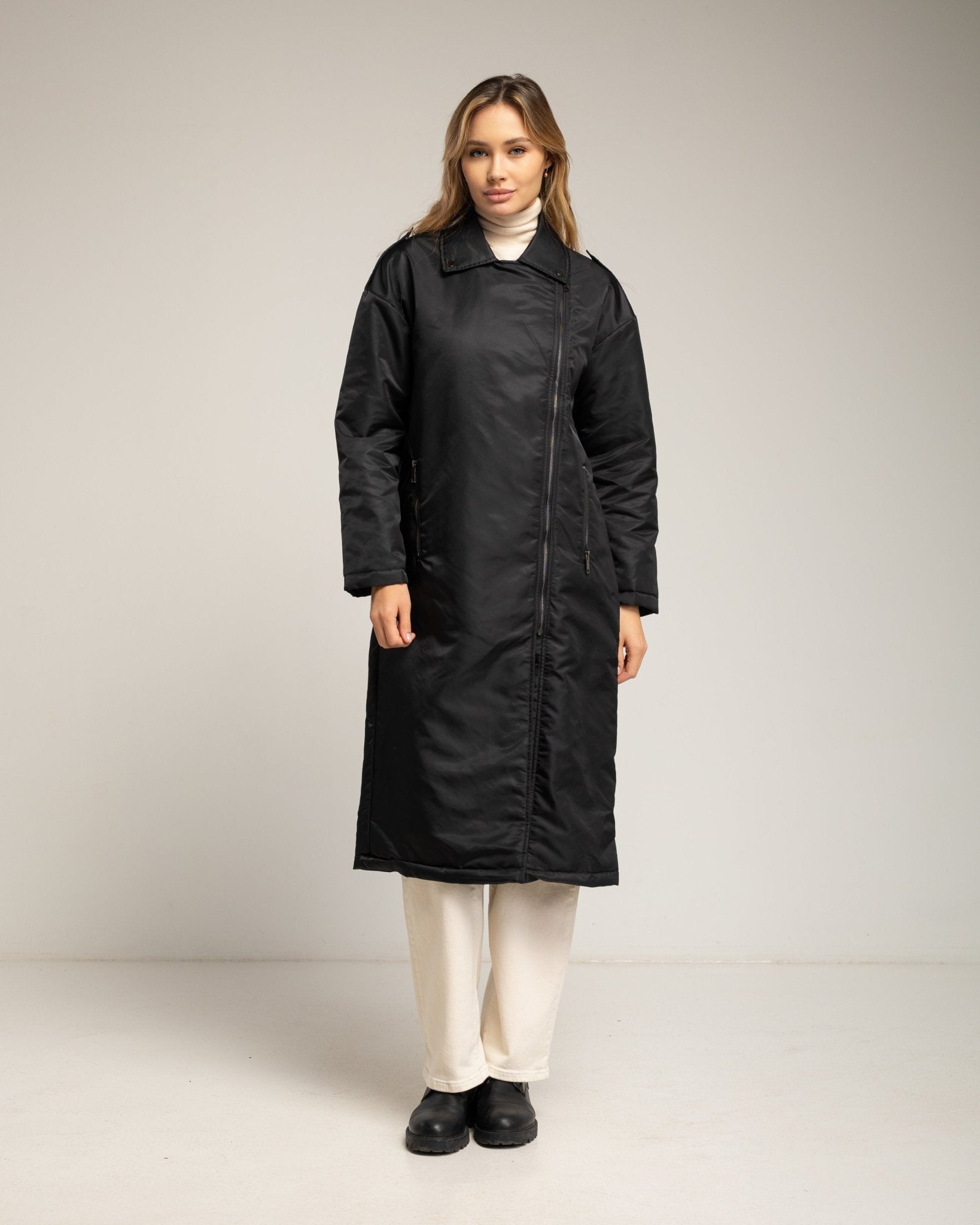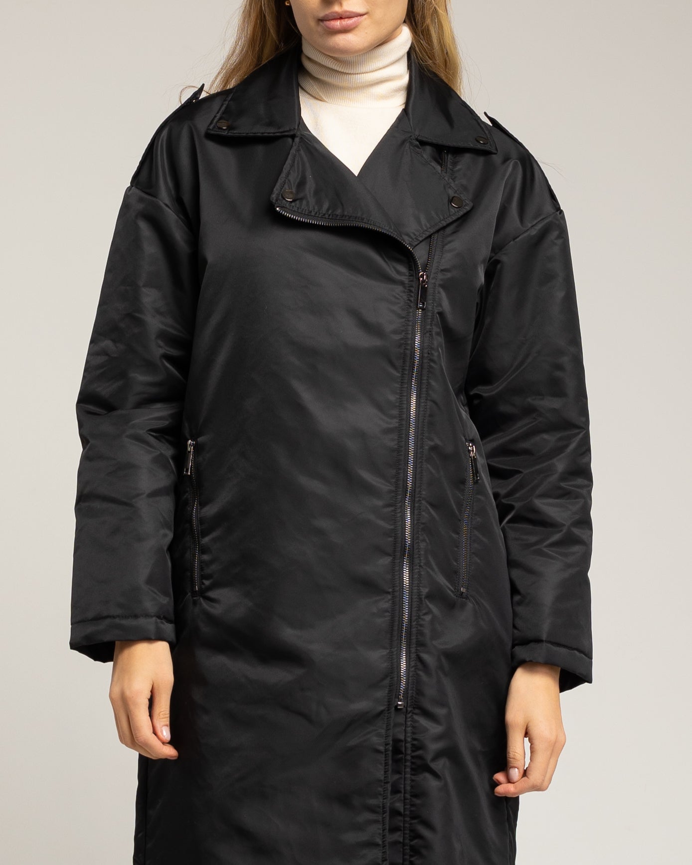 Abrigo impermeable con cierre de cremallera lateral. Black.