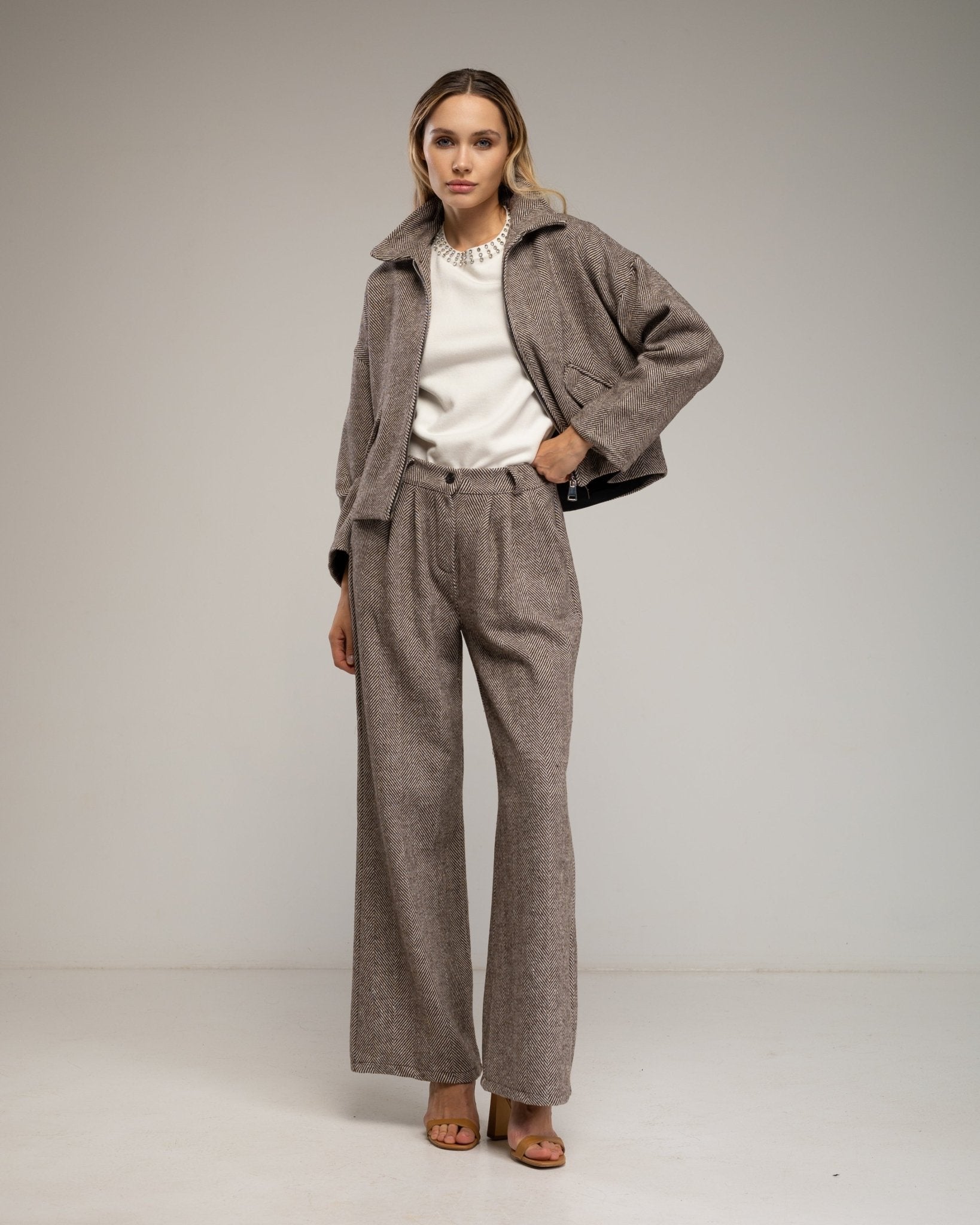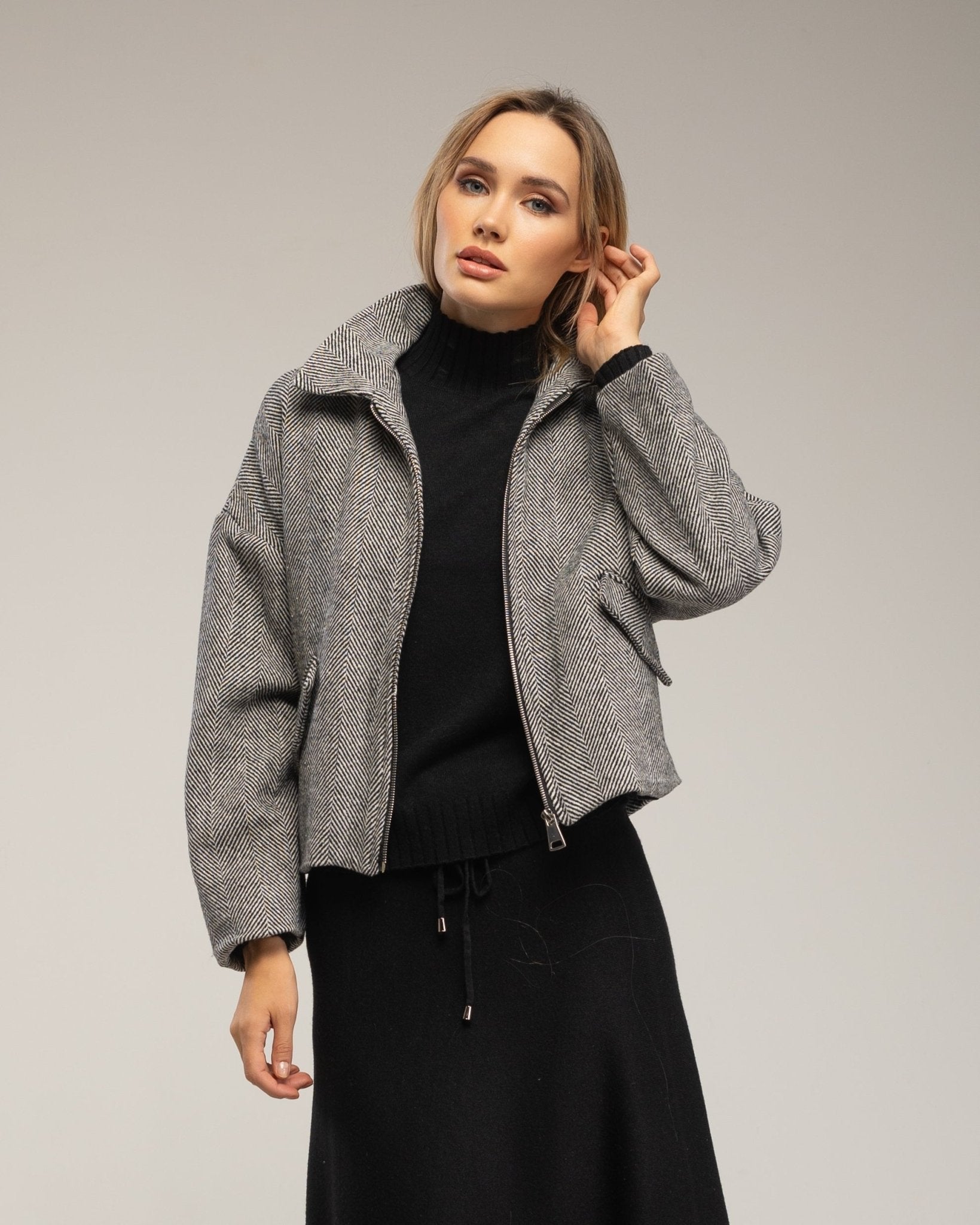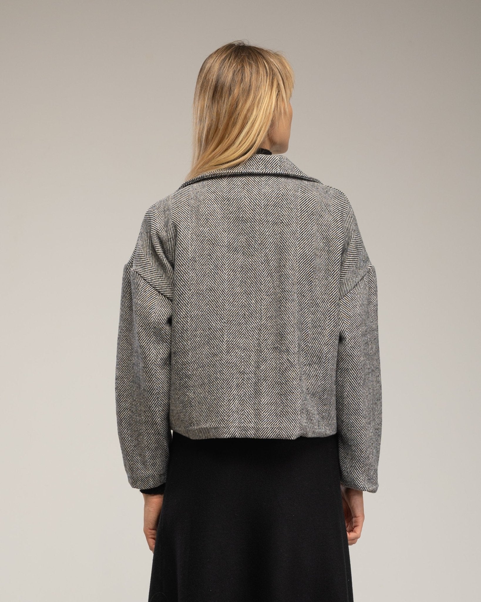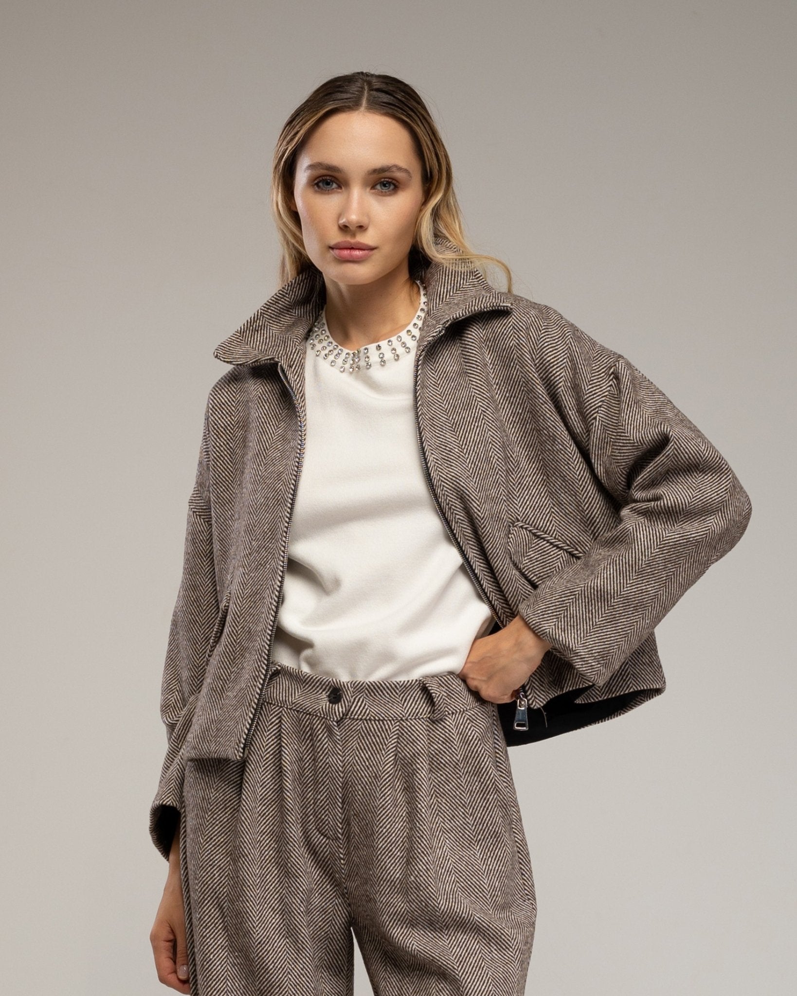 Esta chaqueta de espiguilla combina textura y funcionalidad en un diseño moderno y versátil. Presenta un cierre frontal con cremallera que facilita su uso, mientras que la sutil mezcla de poliéster y lana aporta calidez y durabilidad. Su forro interior garantiza comodidad y una caída perfecta, convirtiéndola en una prenda ideal para completar looks casuales o de oficina con estilo.
