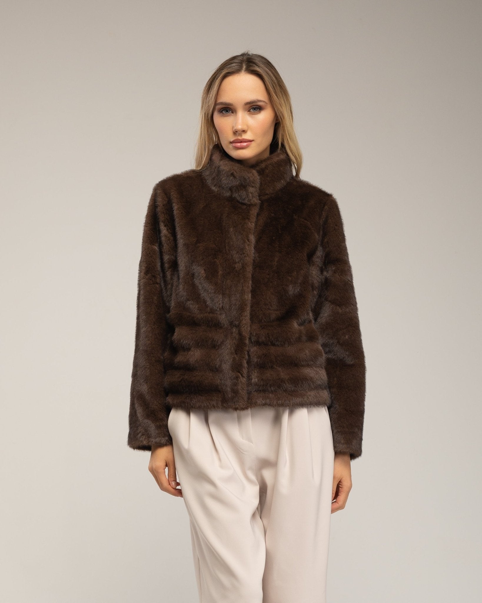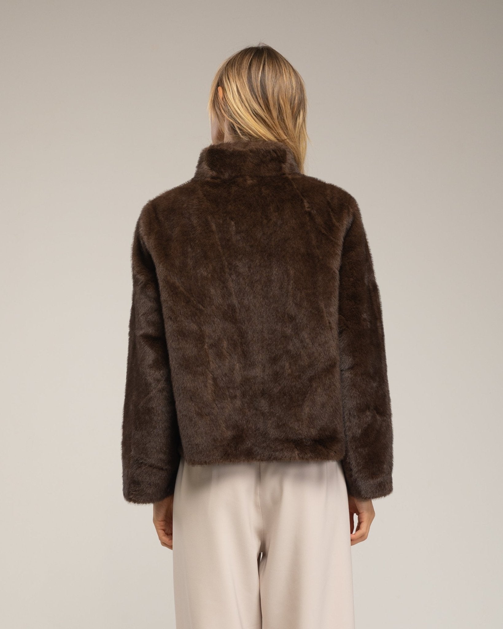 Chaqueta de pelo sintetico con cierre de clips, y bolsillos laterales