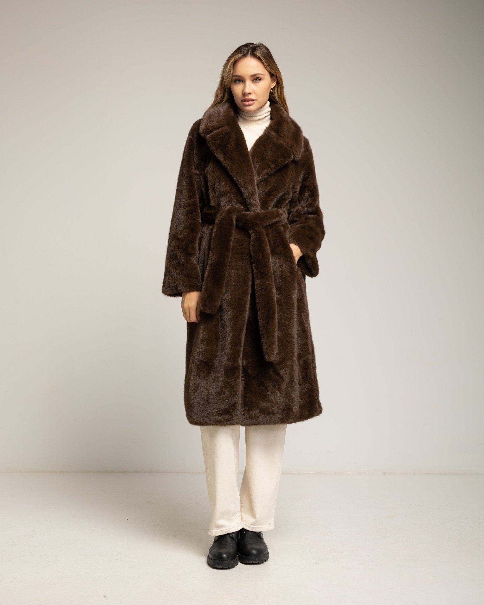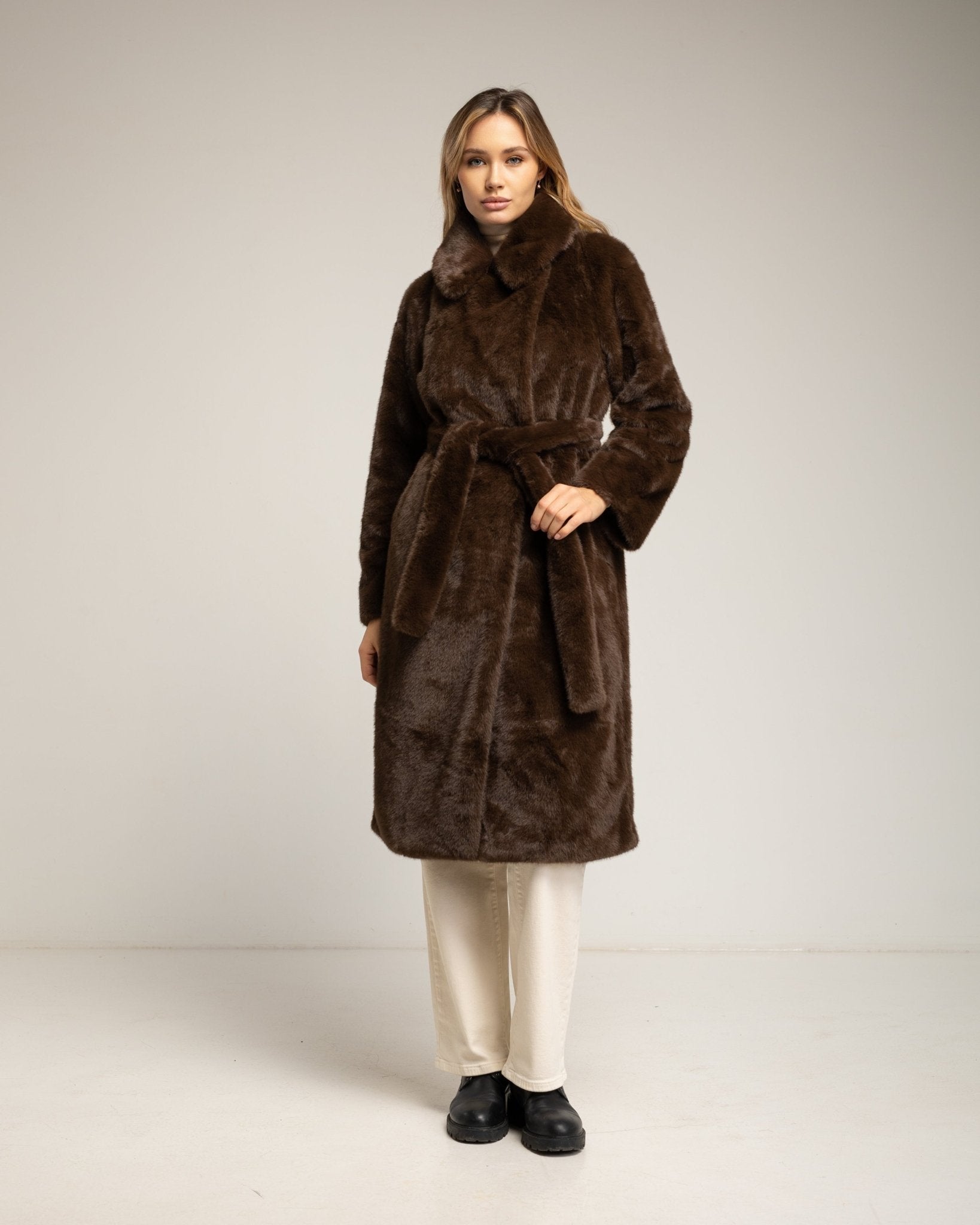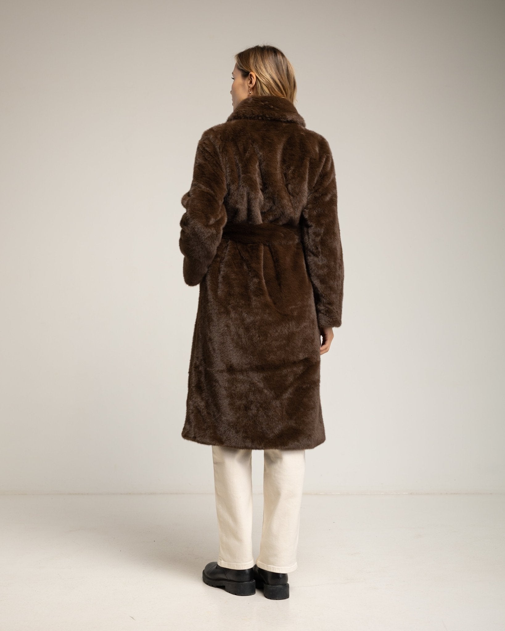 Chaqueta de pelo sintetico coon cierre de boton. Brown.