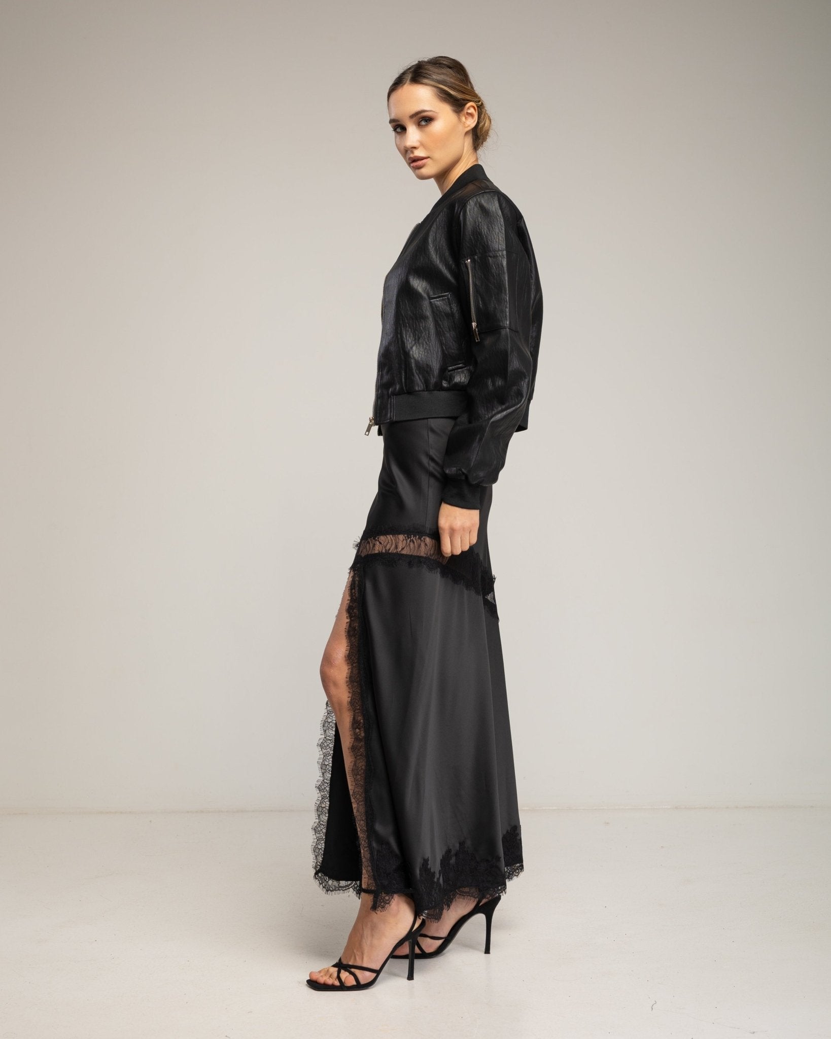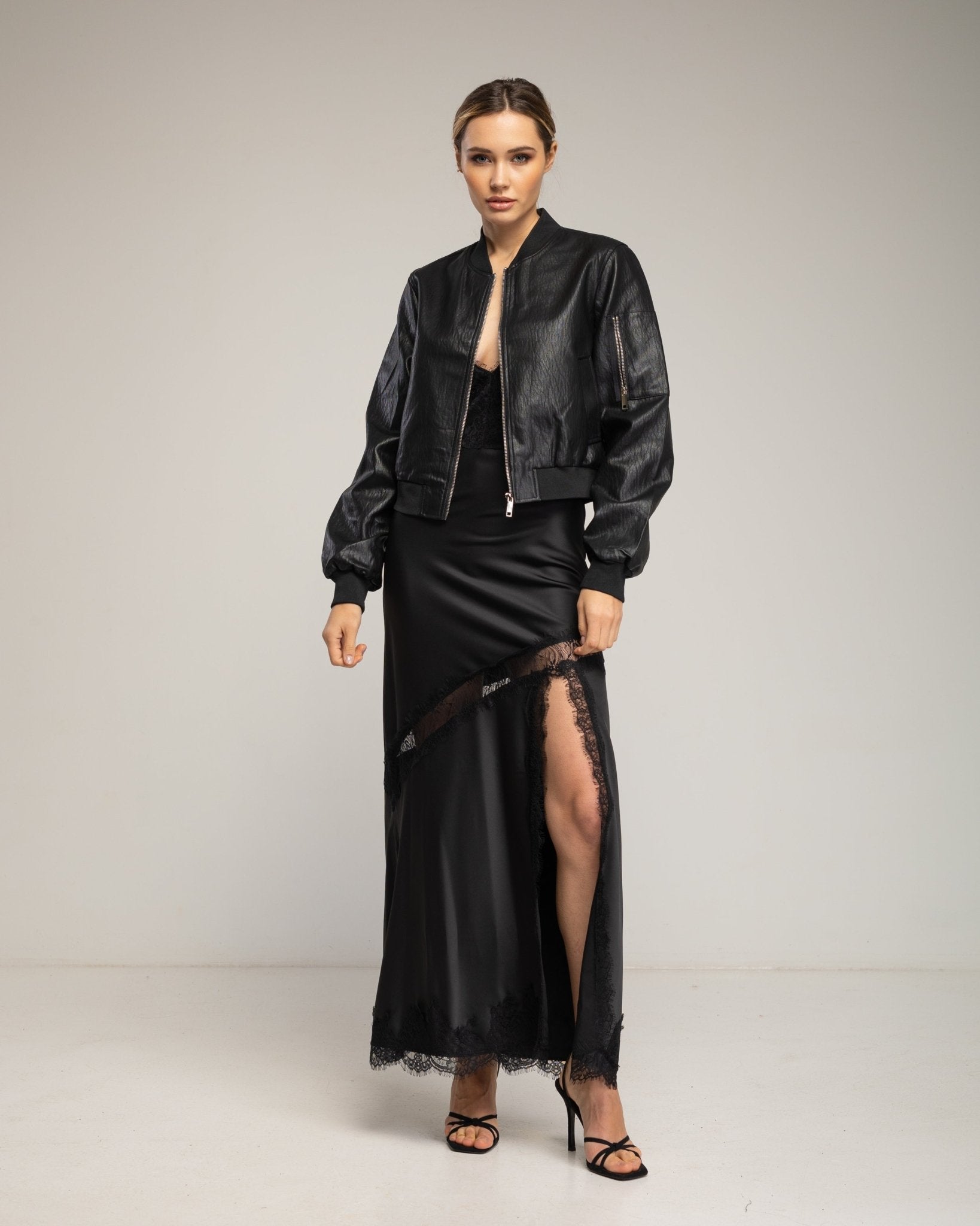 Esta chaqueta tipo bomber de polipiel combina estilo urbano y funcionalidad. Los bolsillos laterales aportan practicidad, mientras que el detalle de cremallera en el brazo añade un toque moderno y diferenciador. Perfecta para completar looks casuales con un acabado sofisticado y actual.