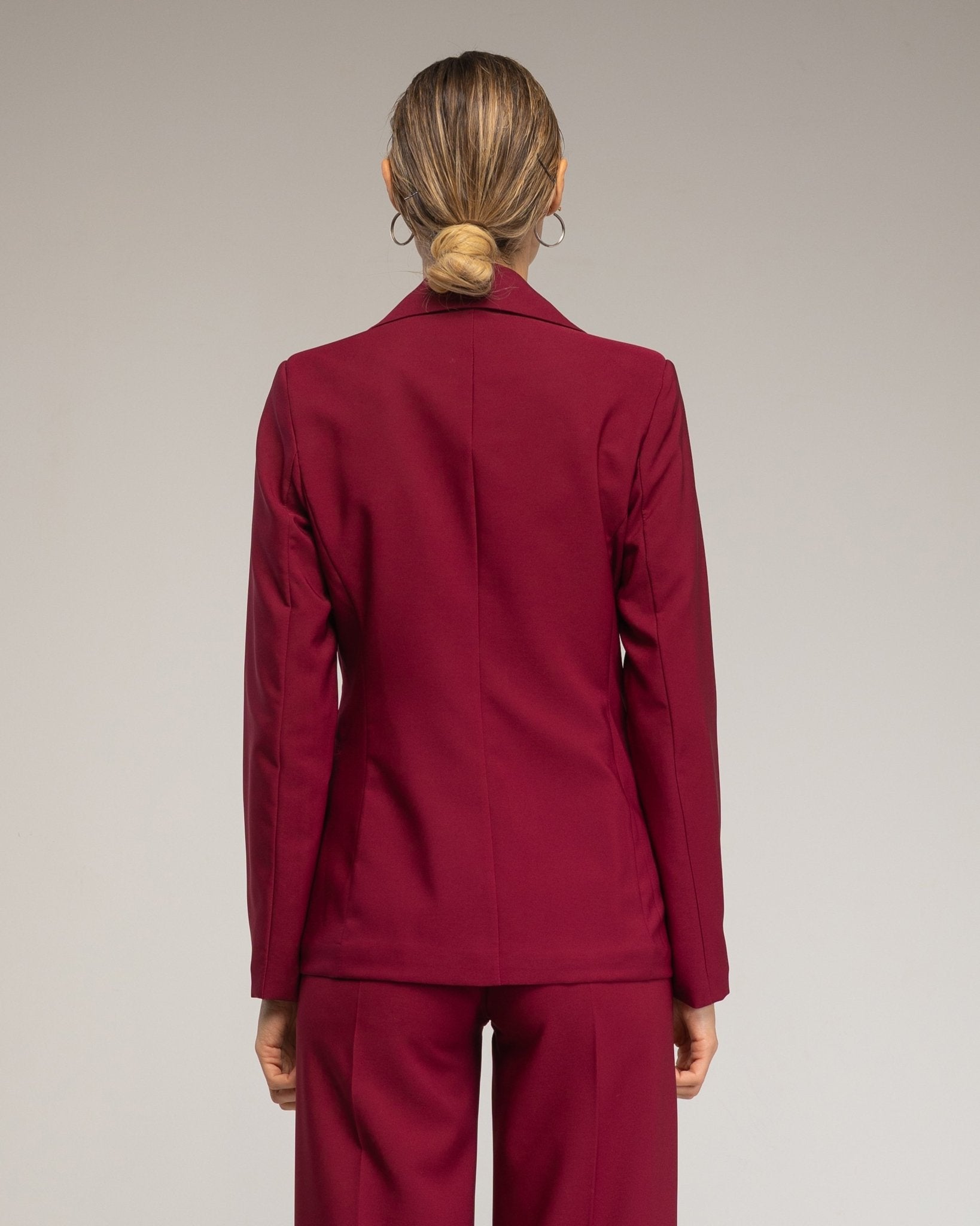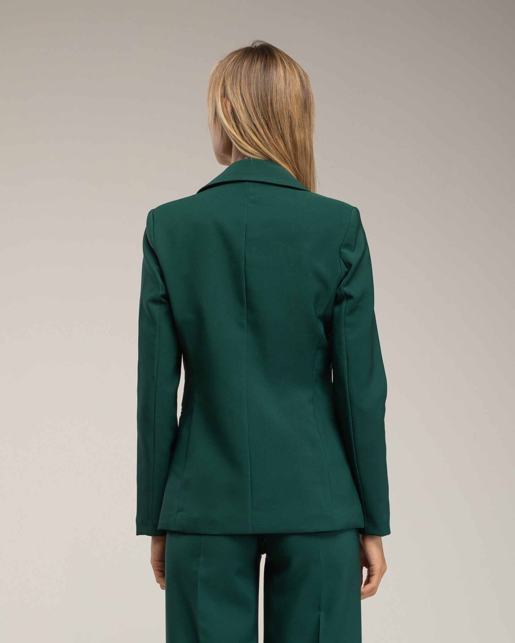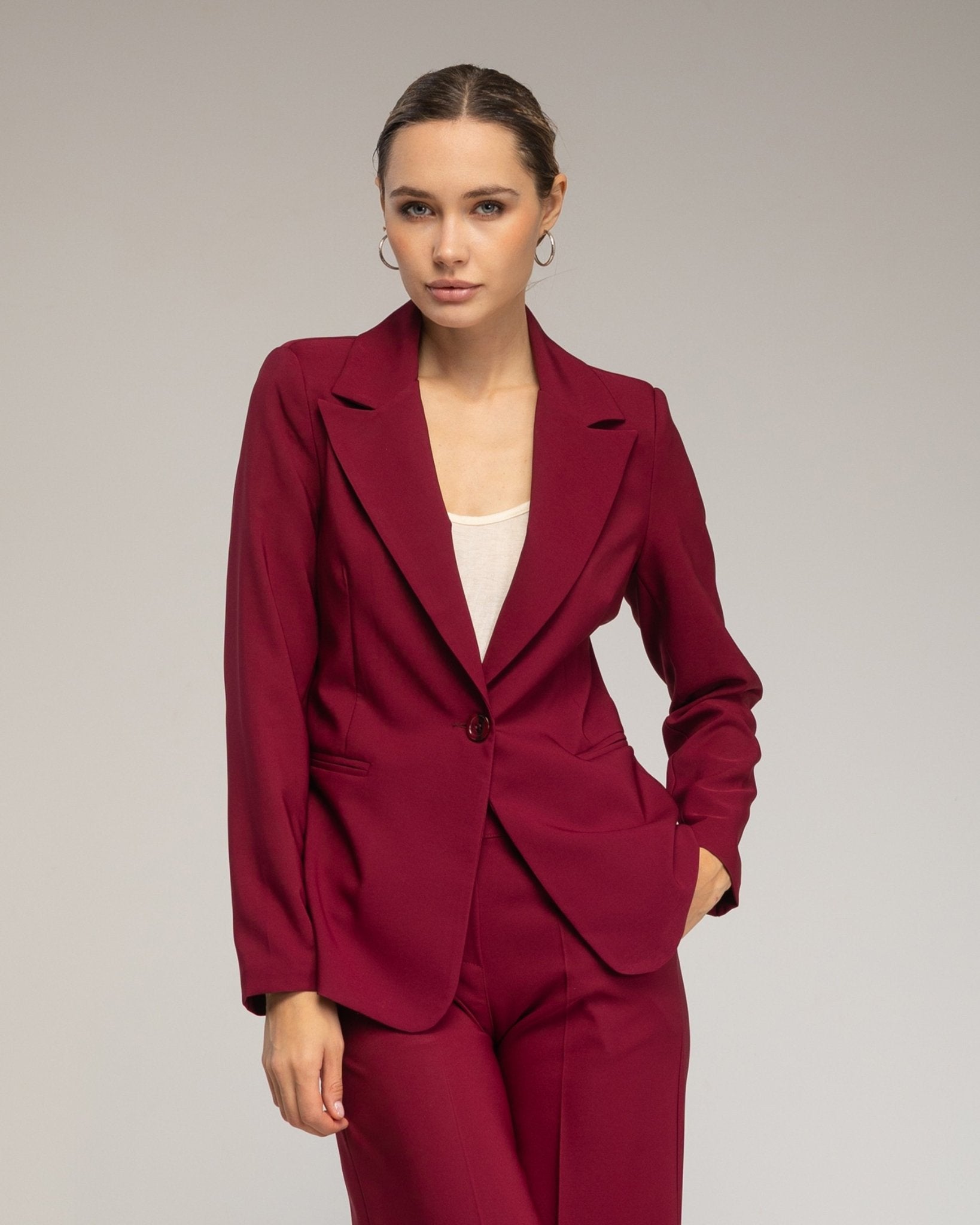 Chaqueta entallada con solapas, cierre de un boton y bolsillos falsos.