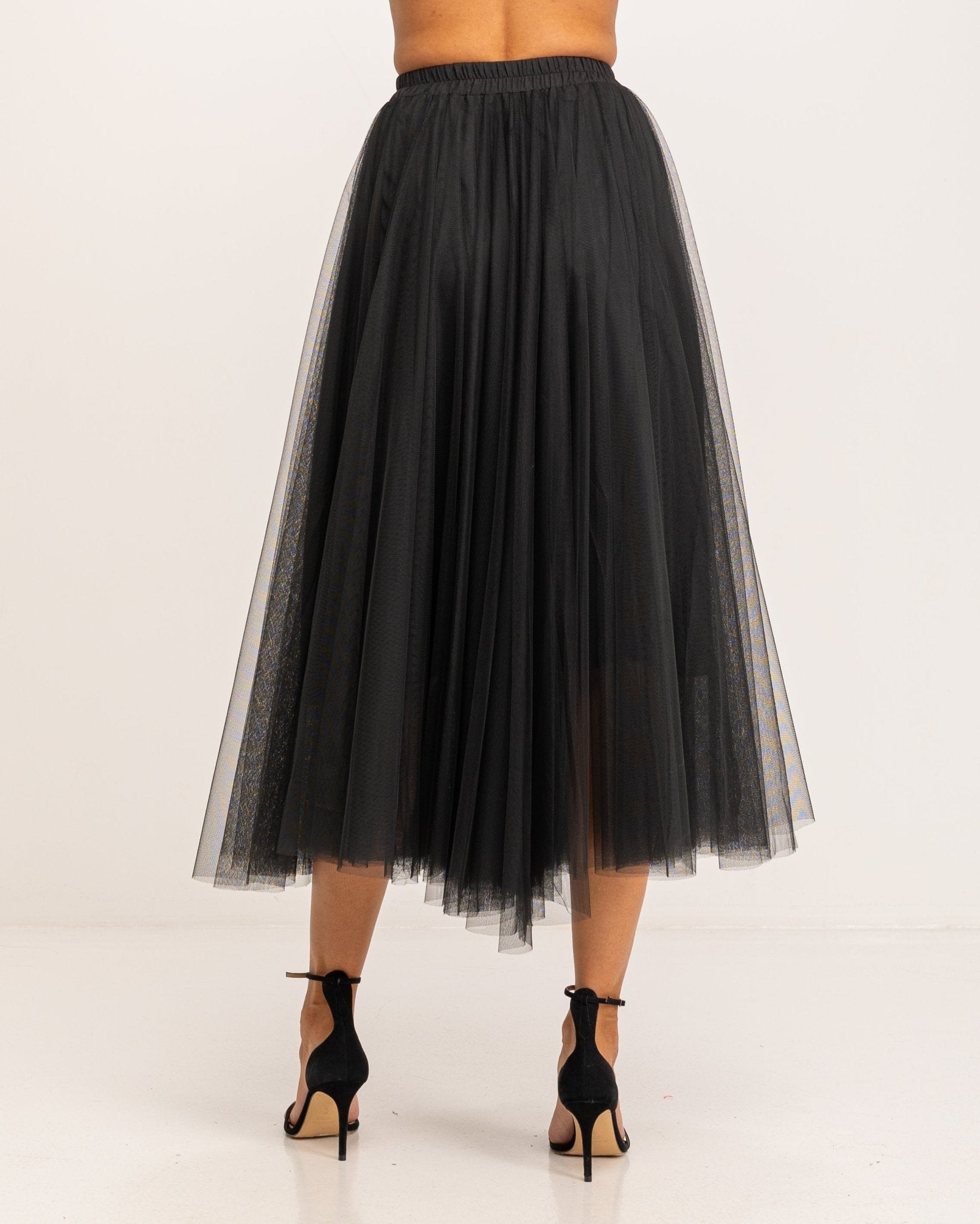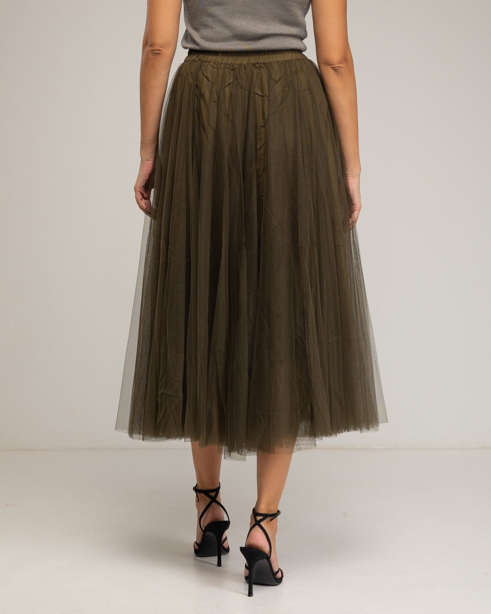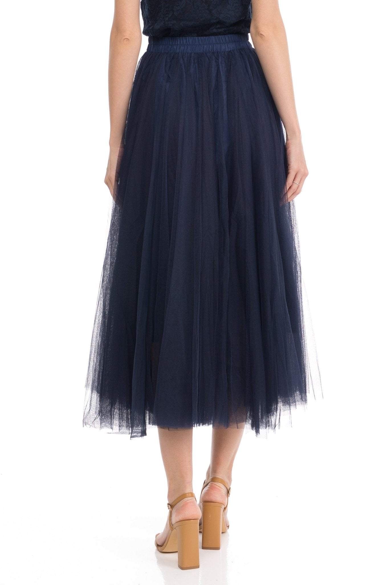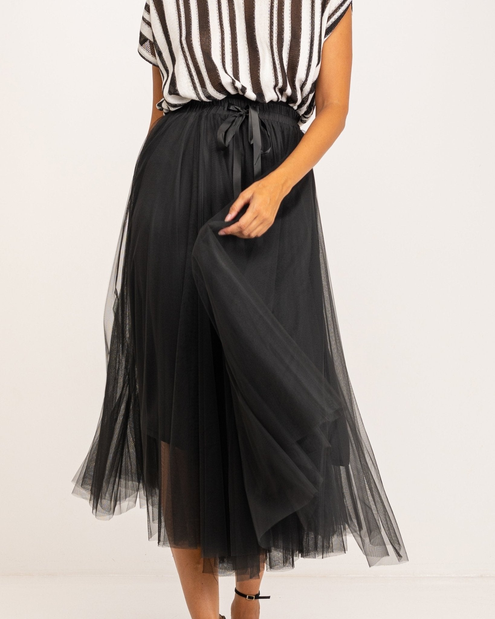 Detalles: varias capas de tul, cintura elástica, largo midi, diseño vaporoso.