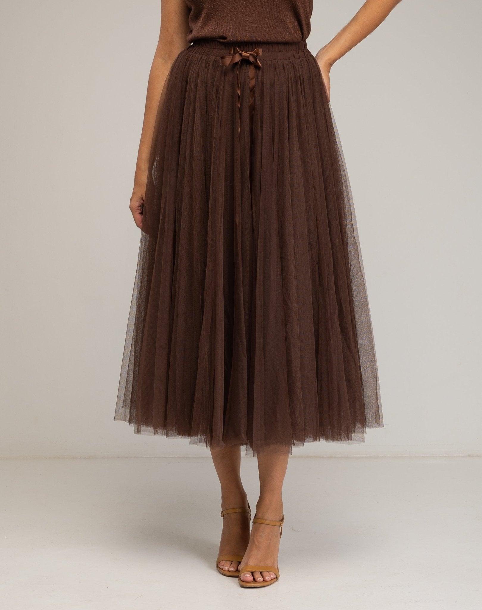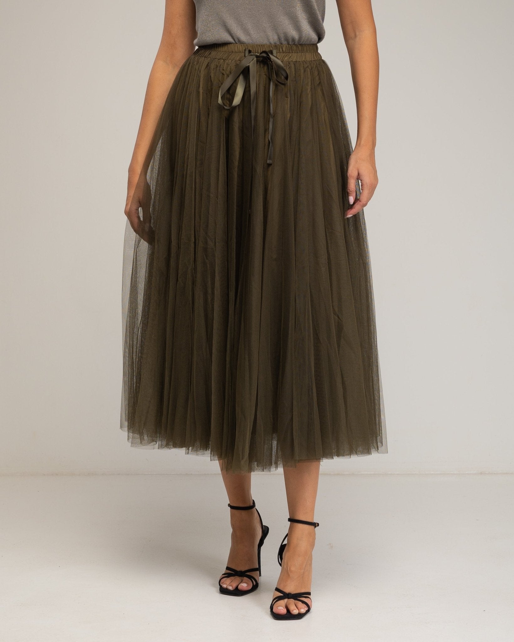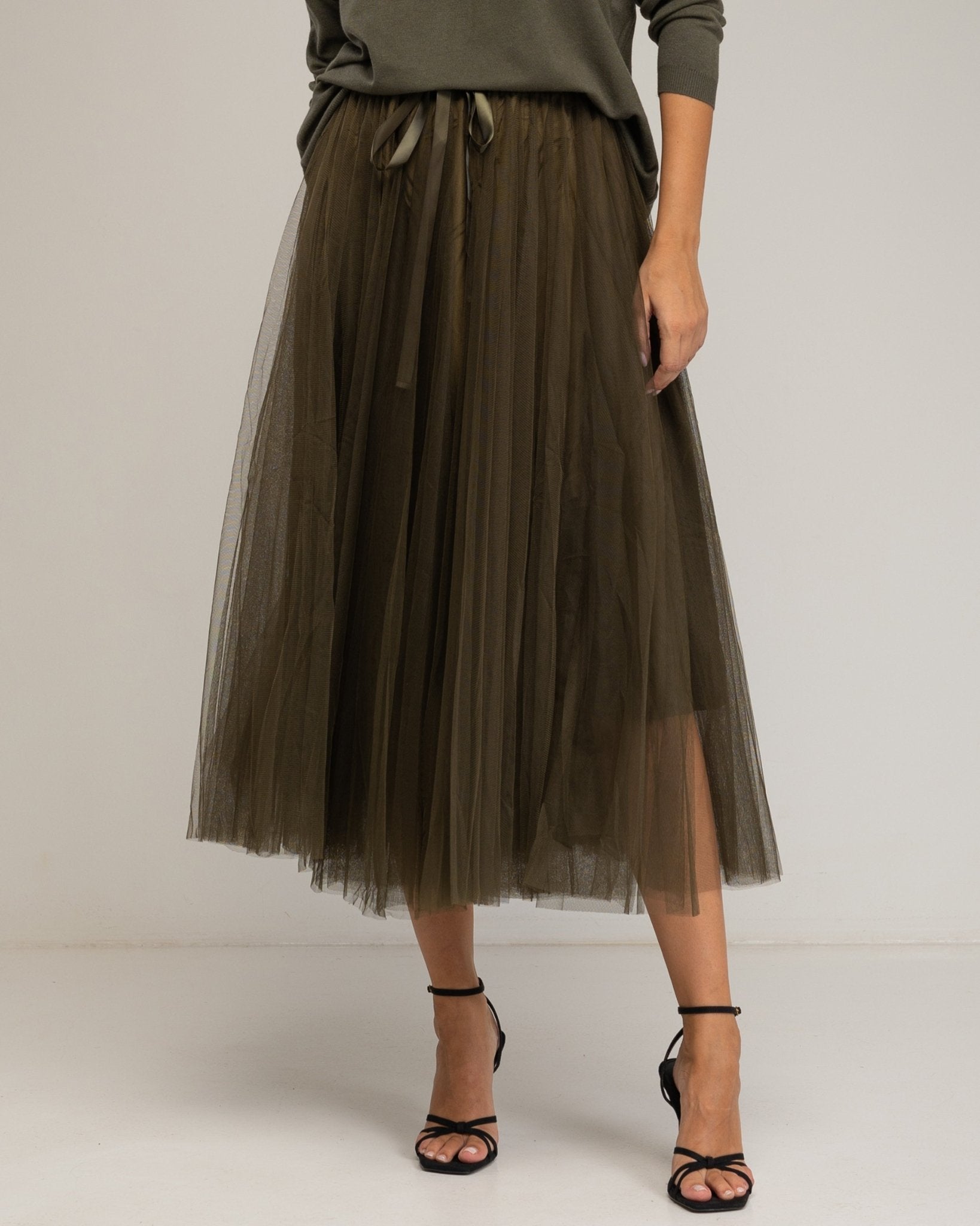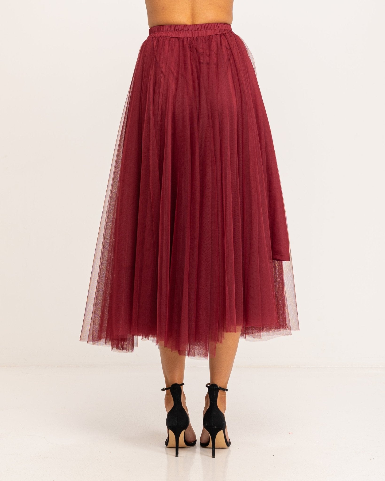 Detalles: varias capas de tul, cintura elástica, largo midi, diseño vaporoso.