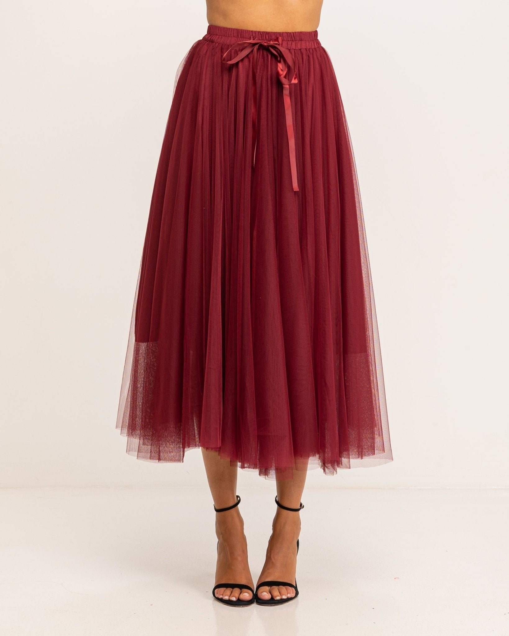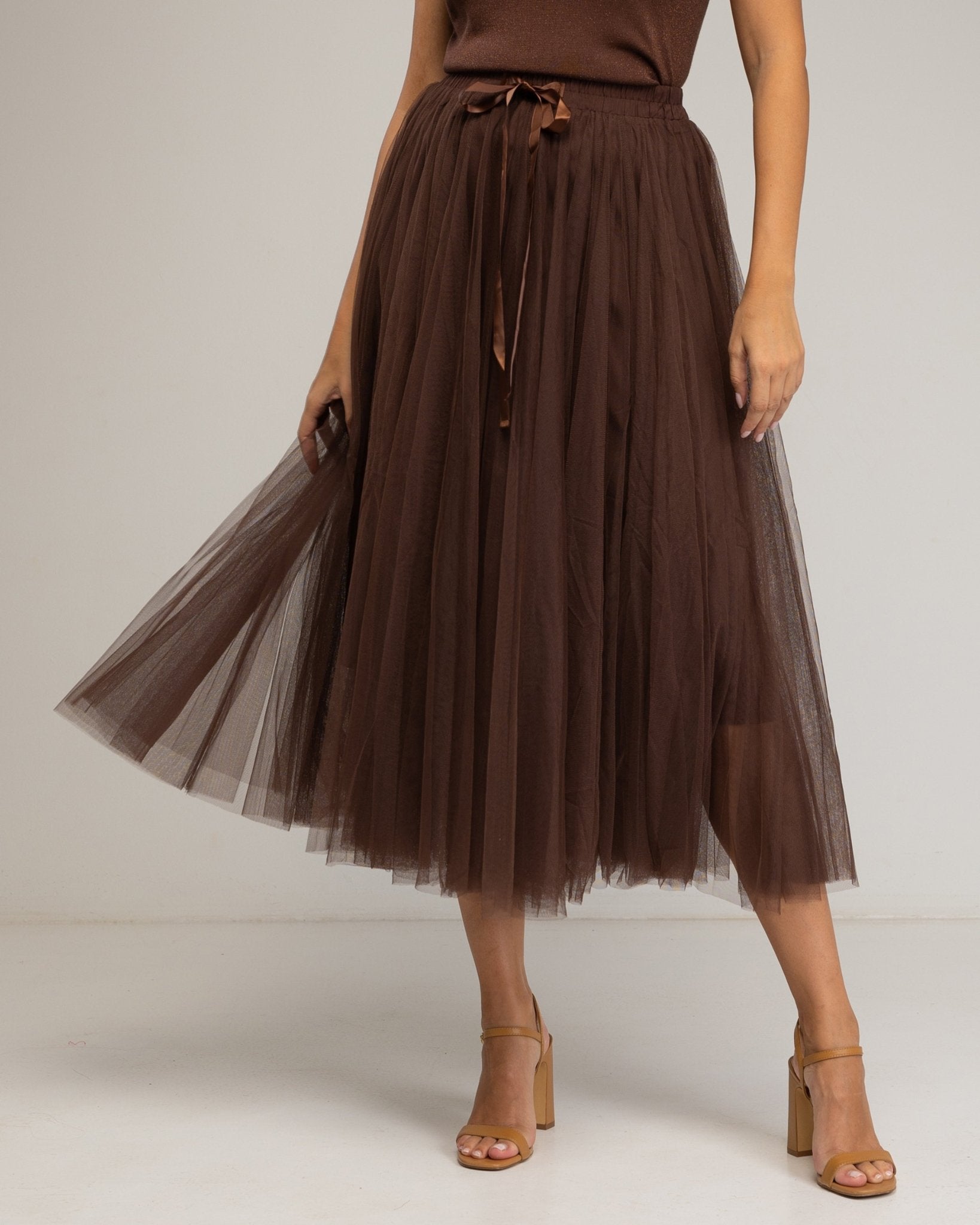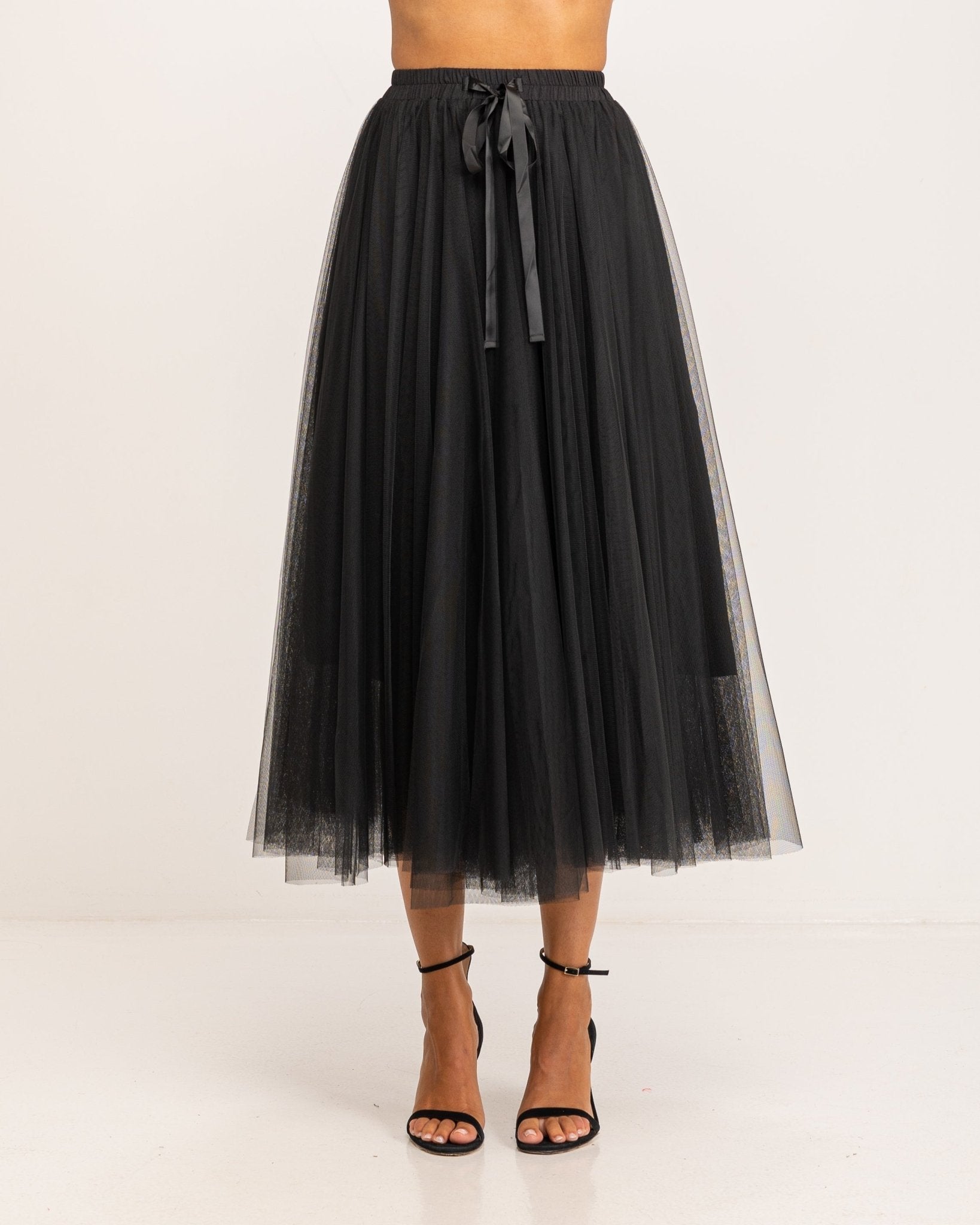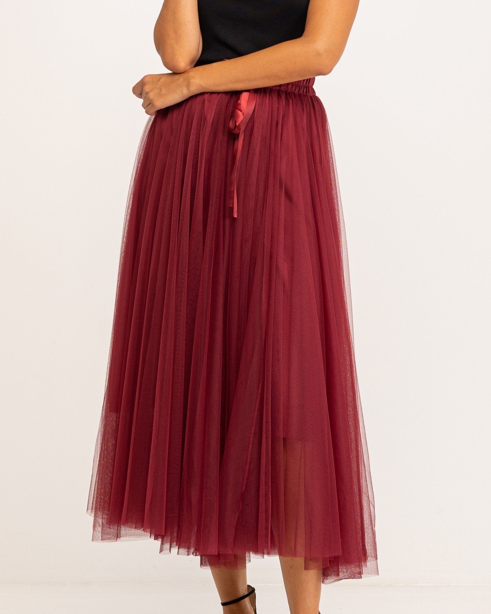 Detalles: varias capas de tul, cintura elástica, largo midi, diseño vaporoso.