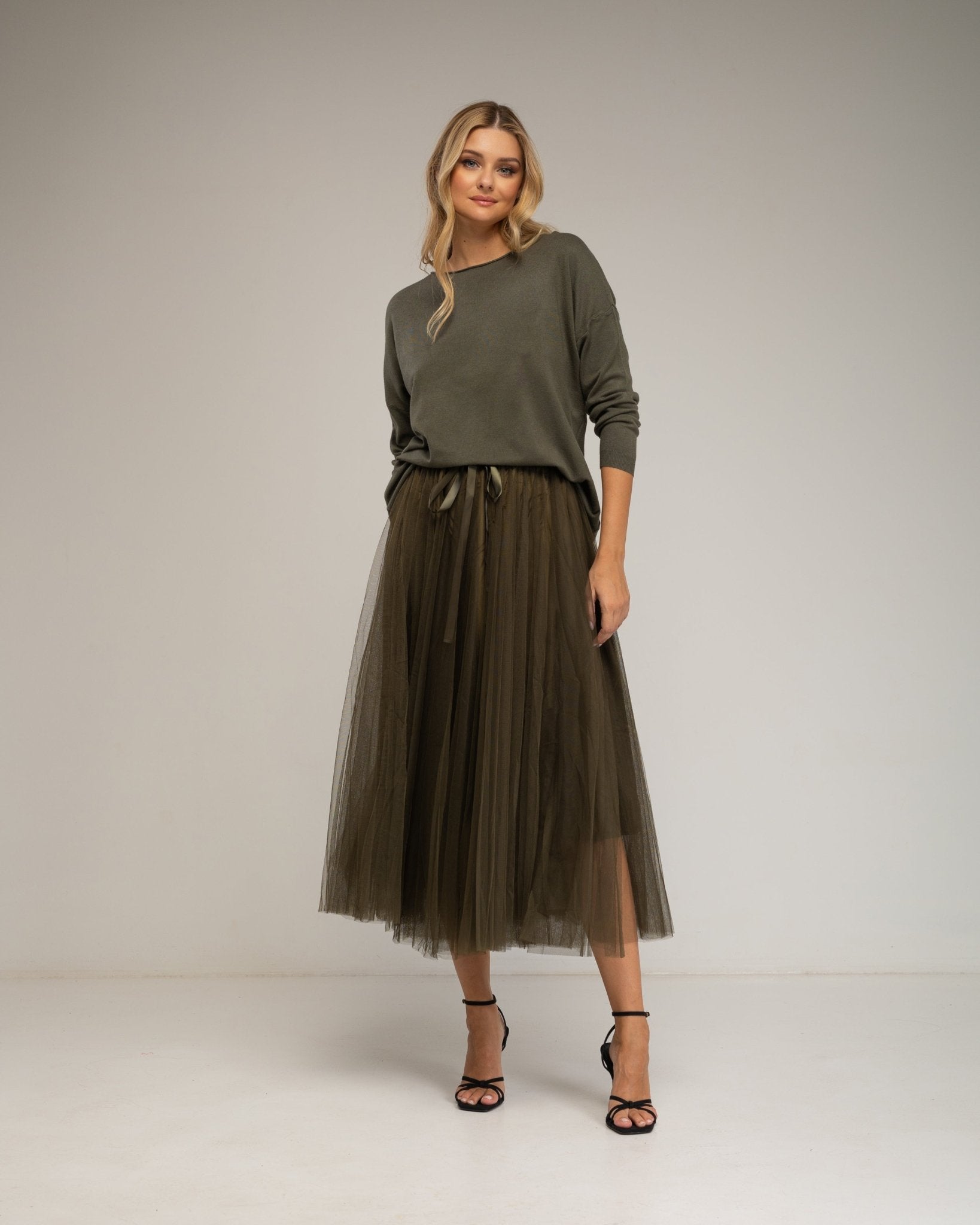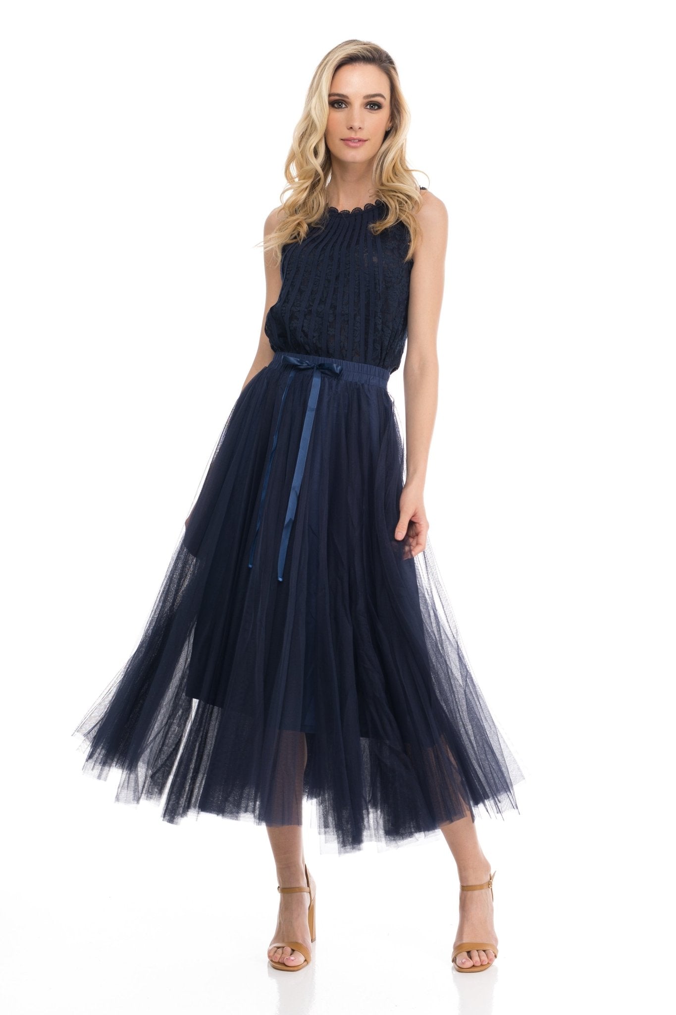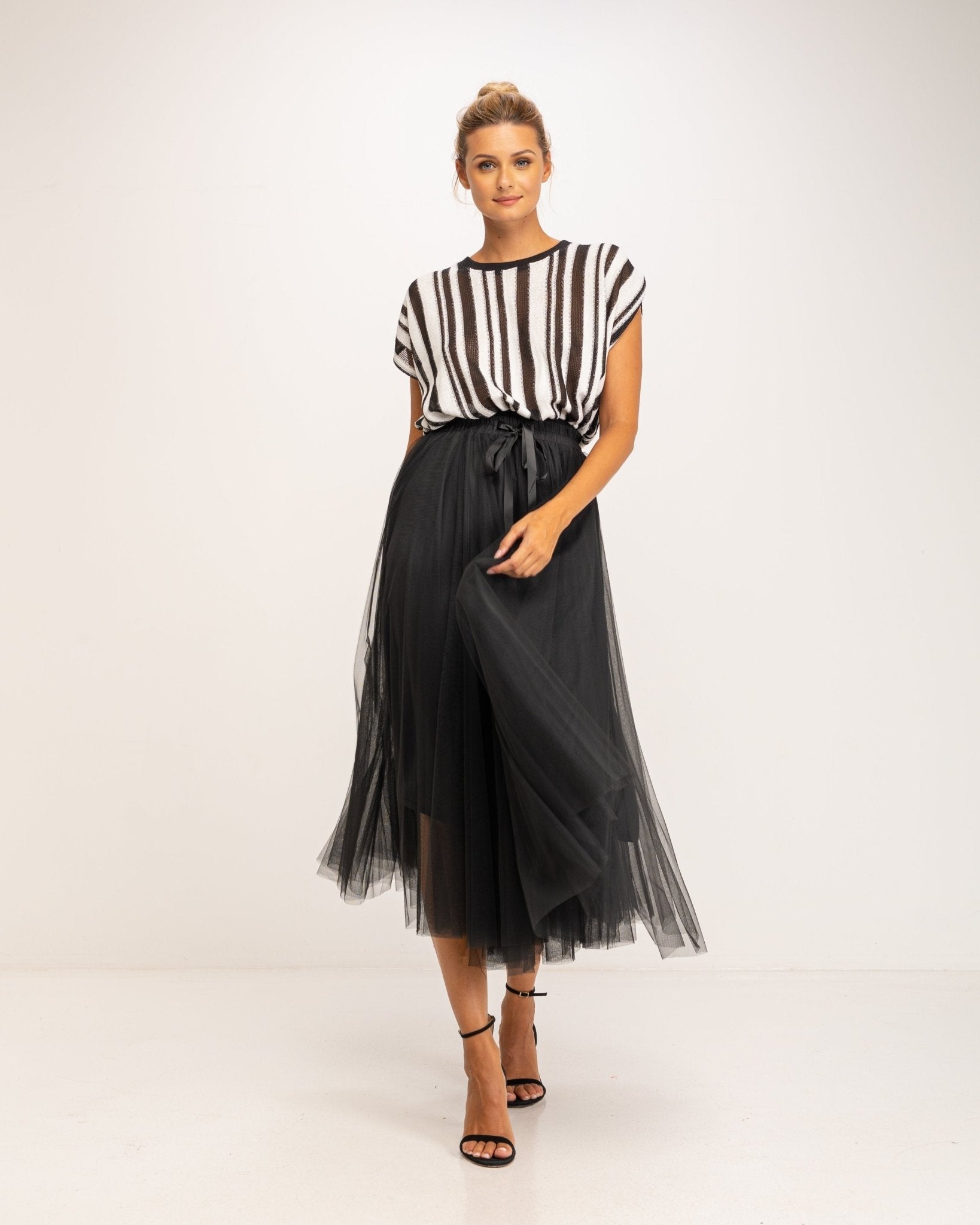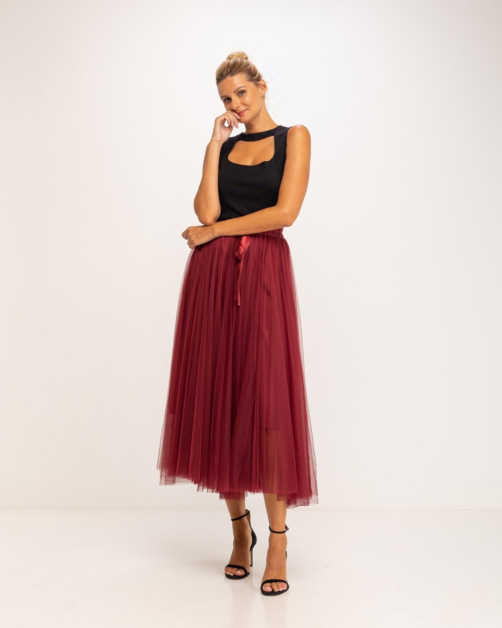 Detalles: varias capas de tul, cintura elástica, largo midi, diseño vaporoso.