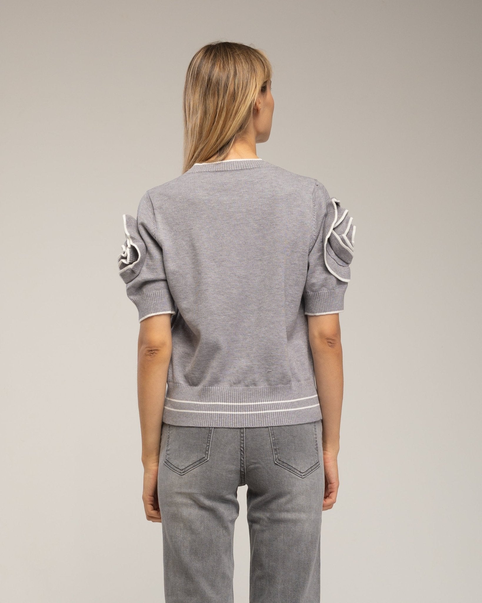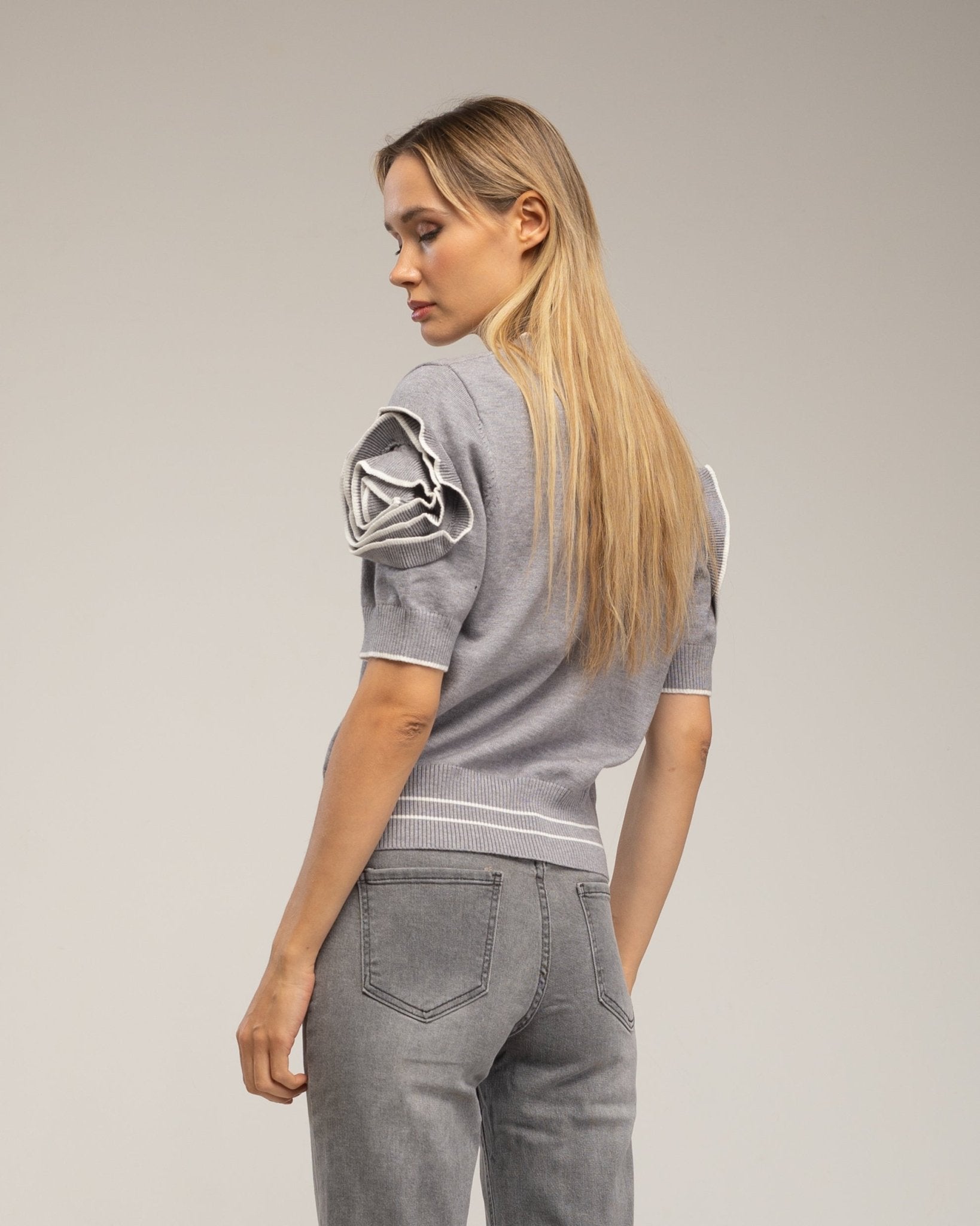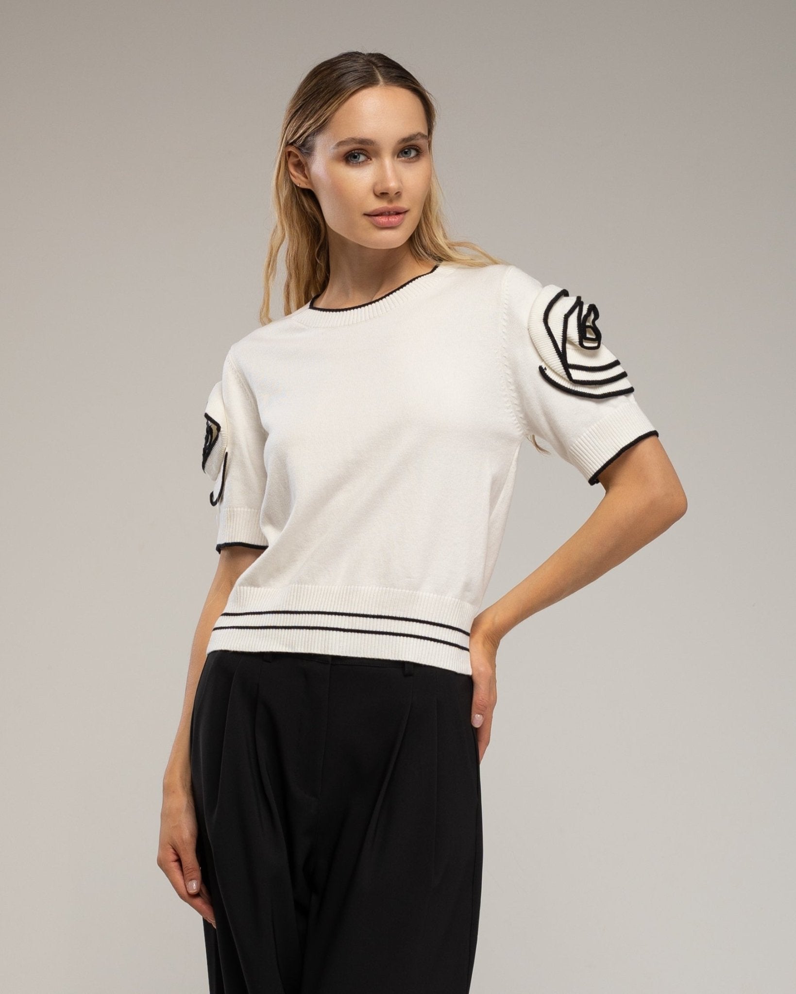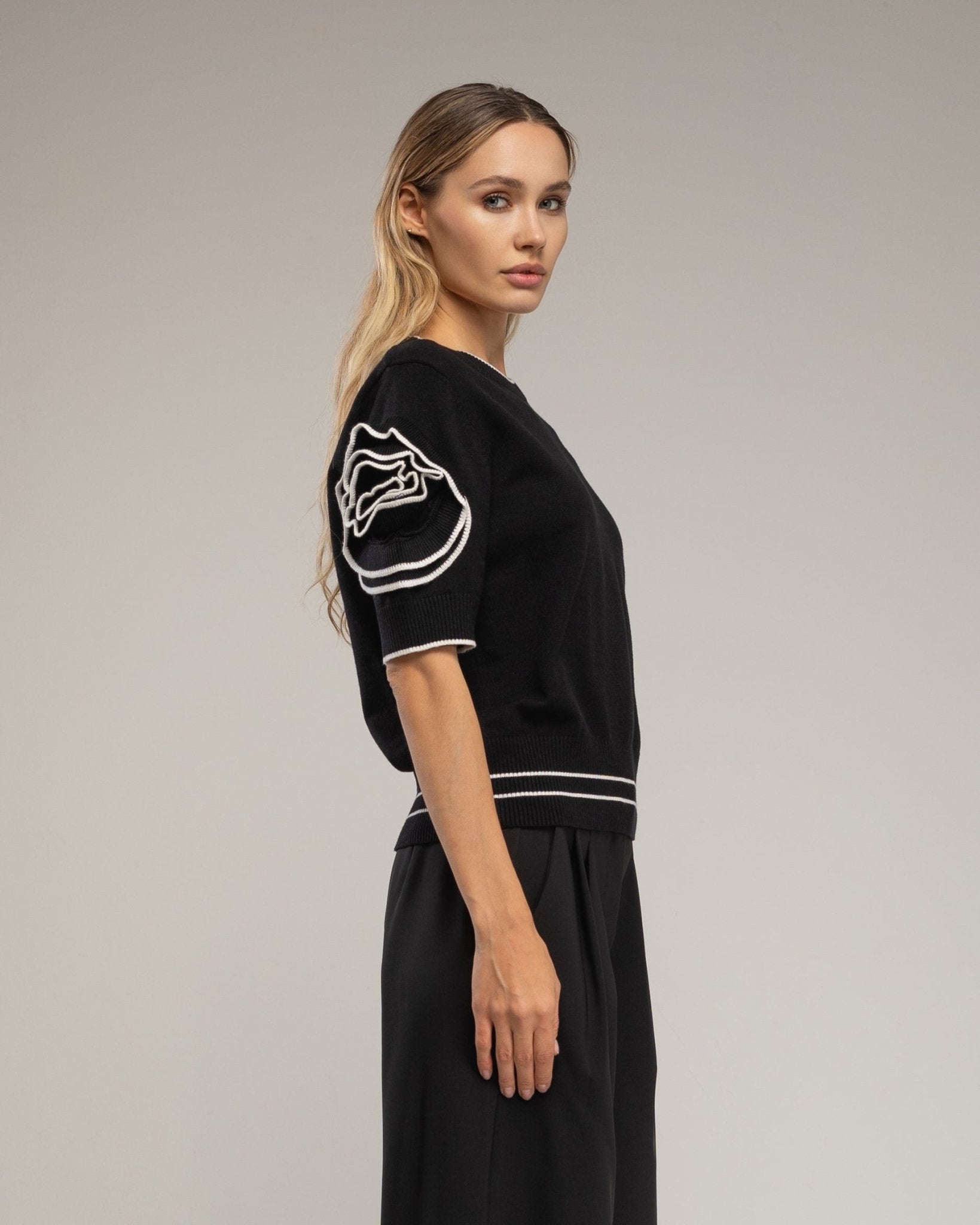 Jersey de manga corta con flor en las mangas y ribete en el cuello y abajo.