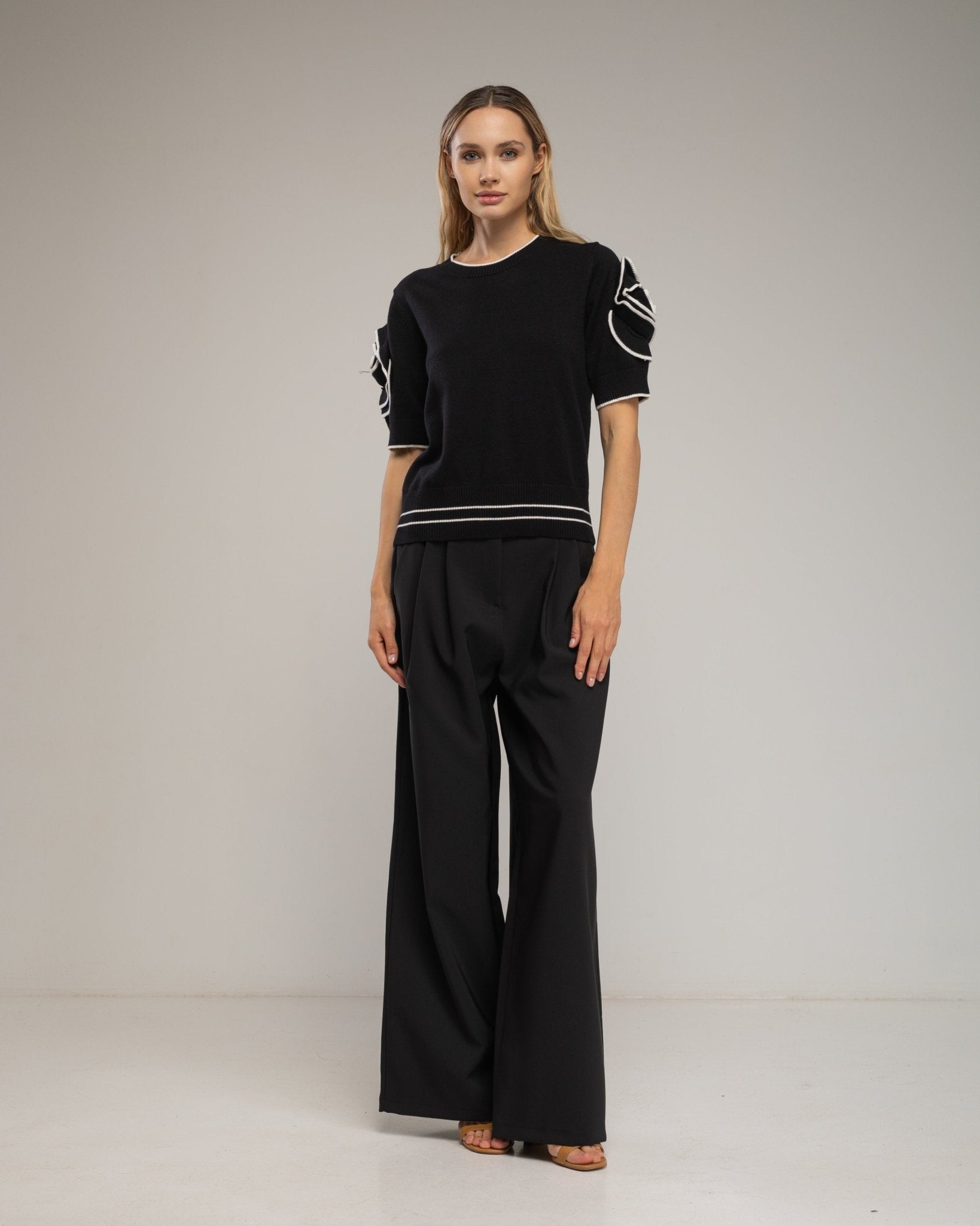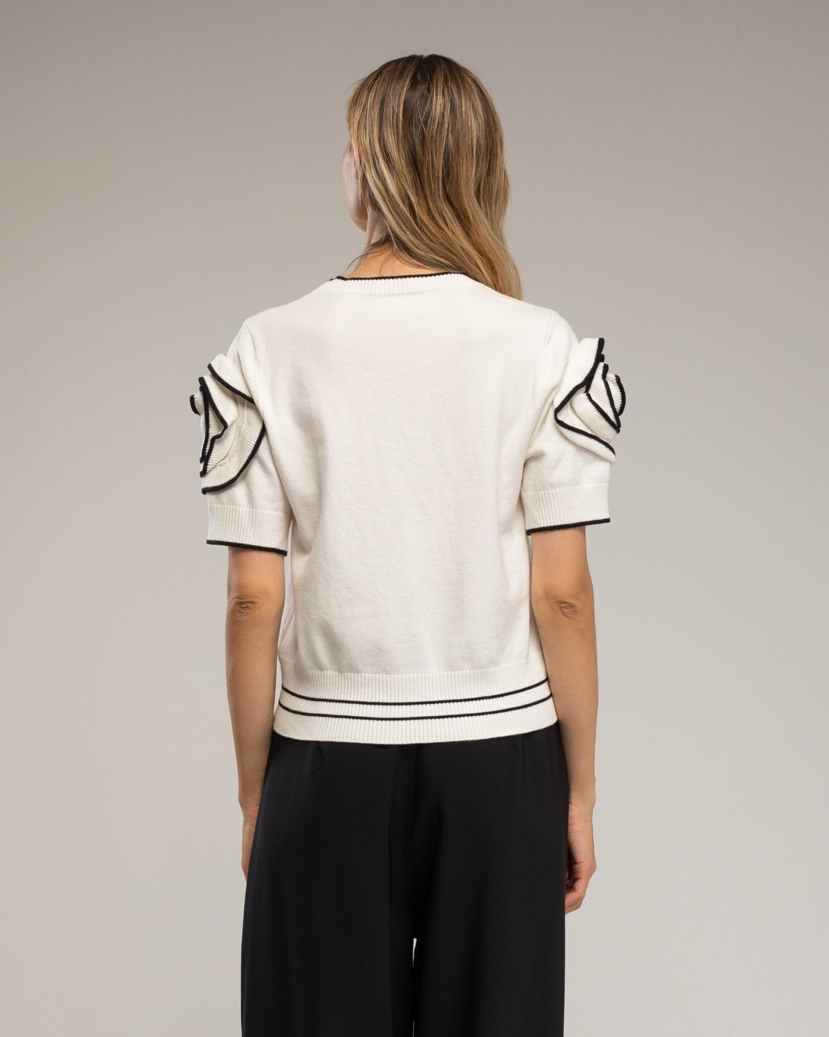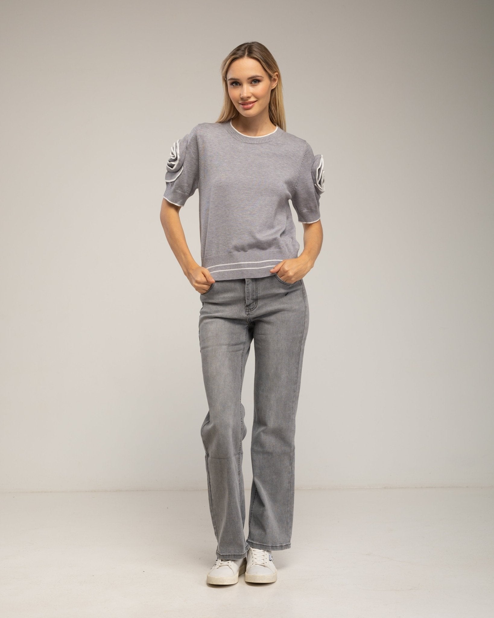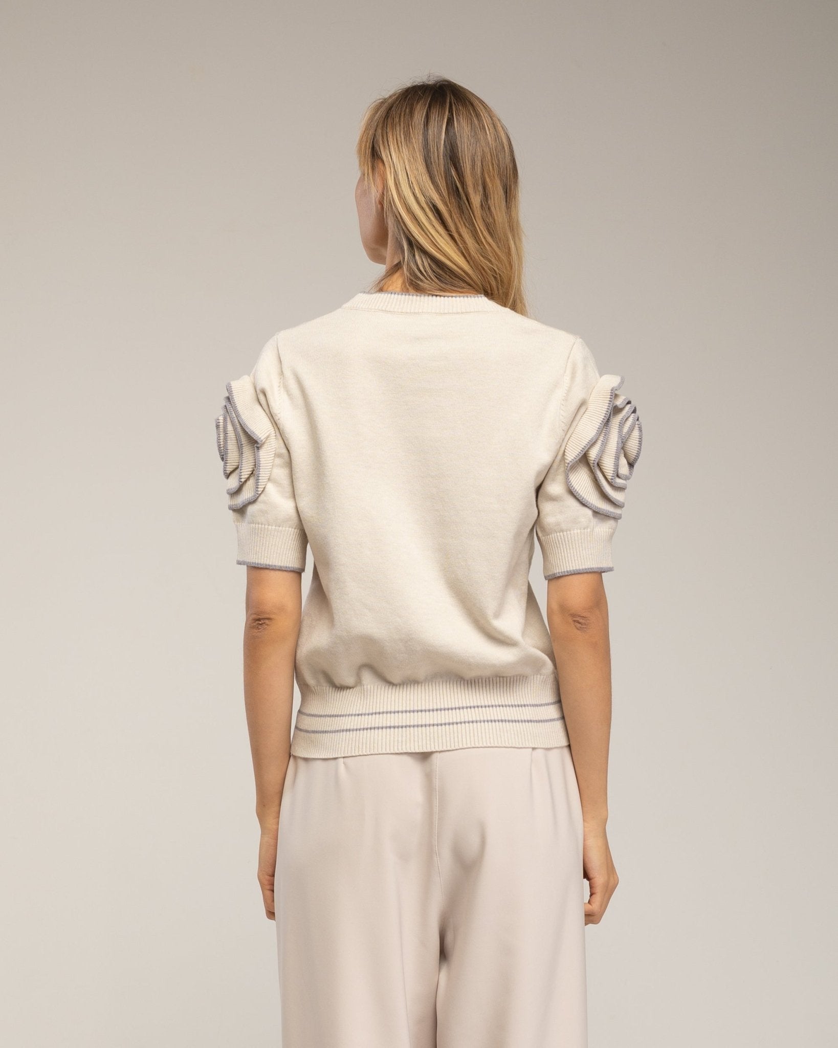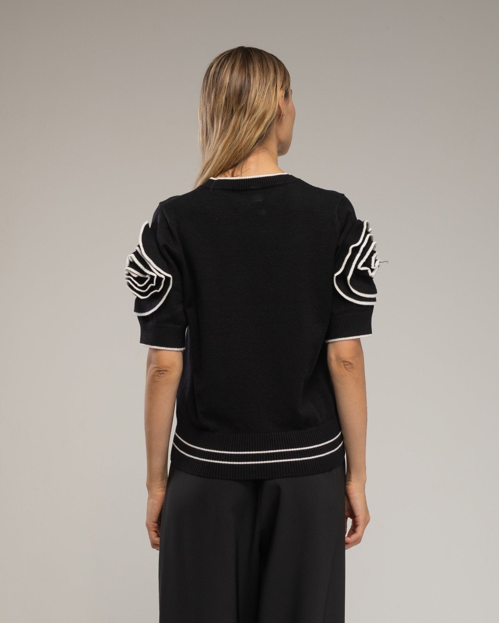Jersey de manga corta con flor en las mangas y ribete en el cuello y abajo.
