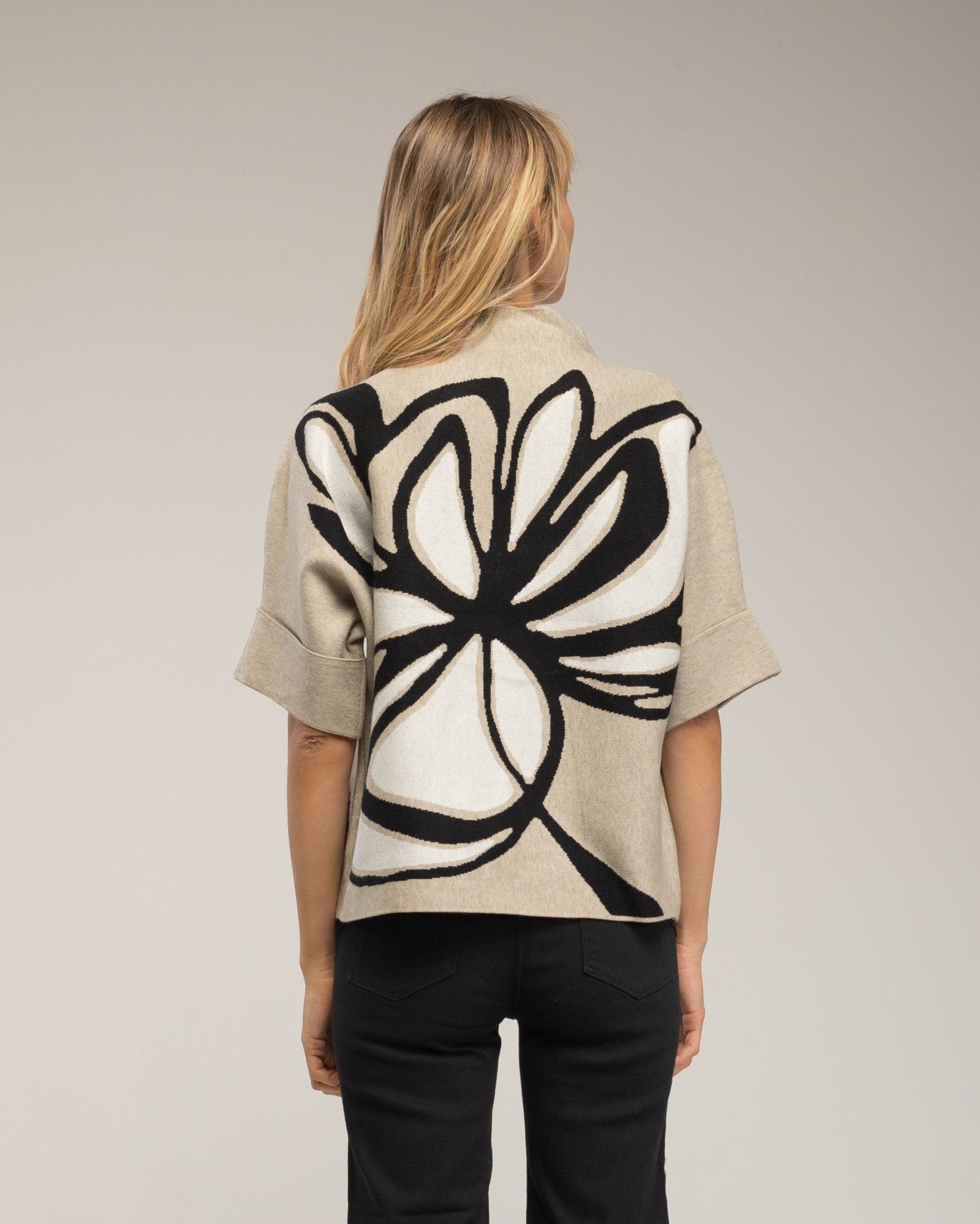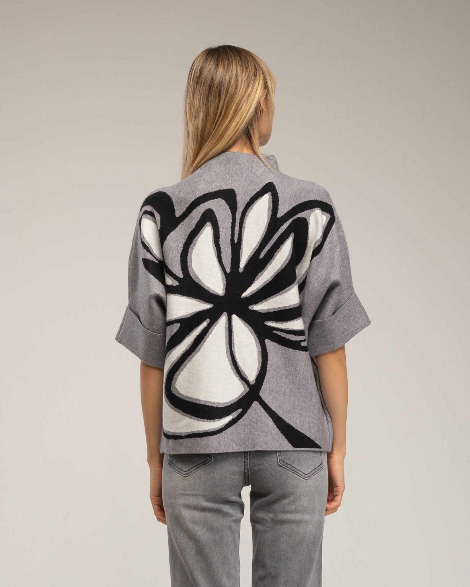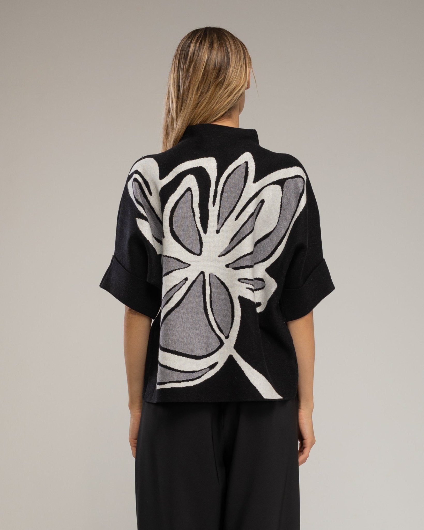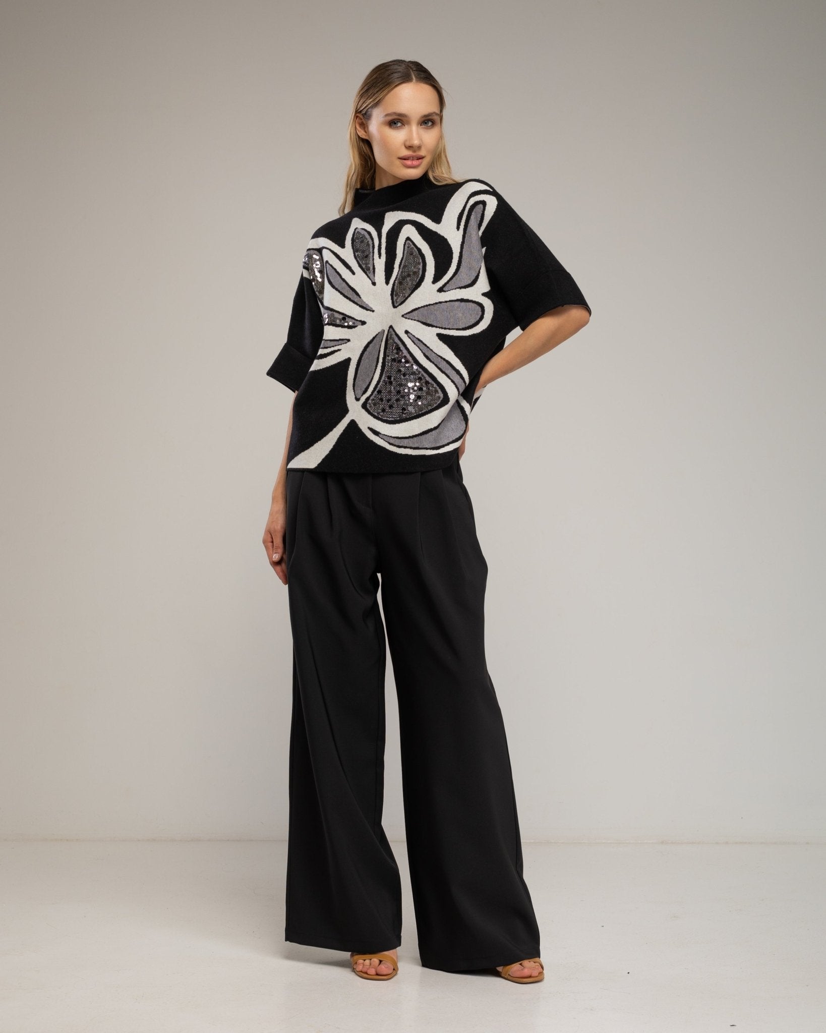 Jersey de punto estampado de flores con lentejuelas y manga francesa.