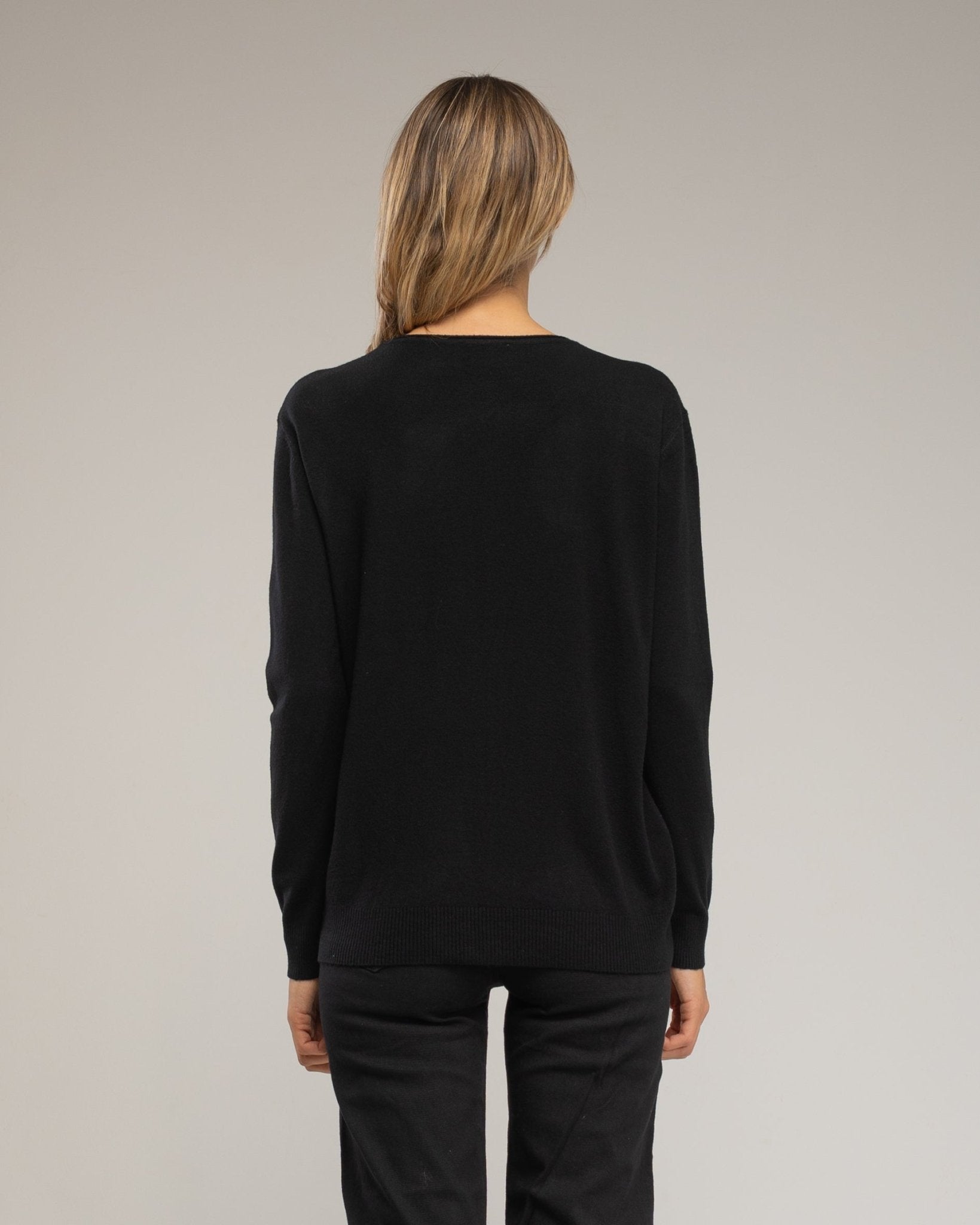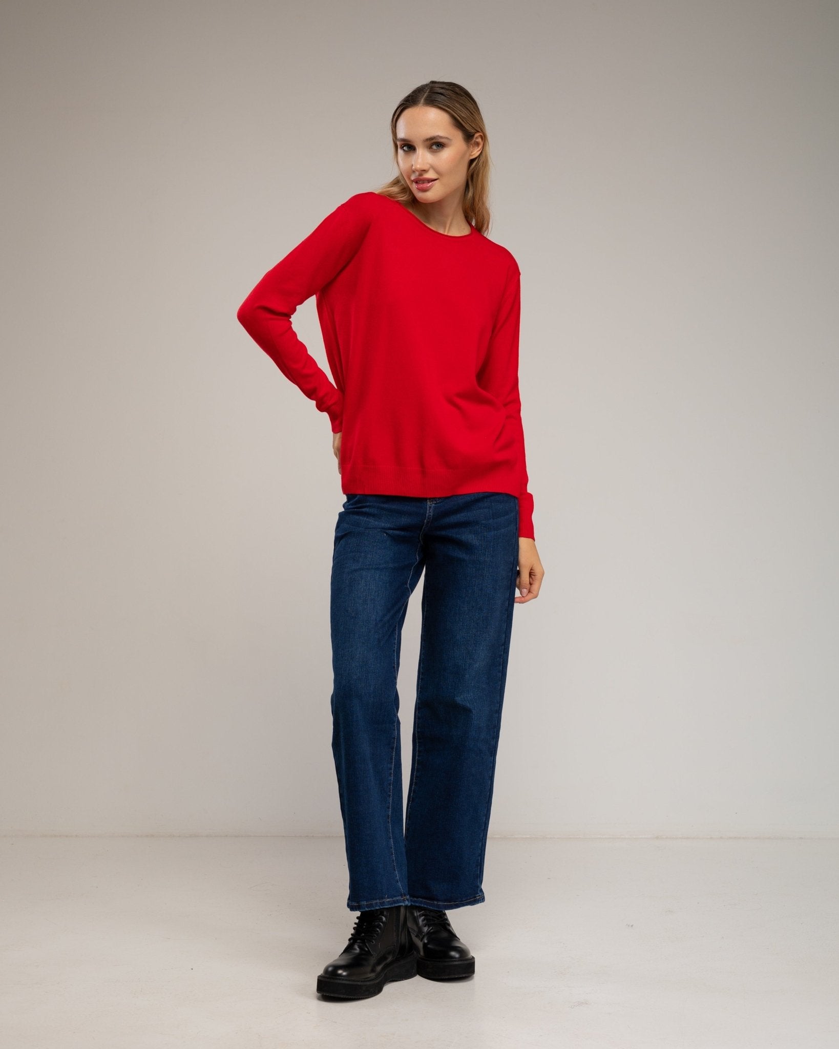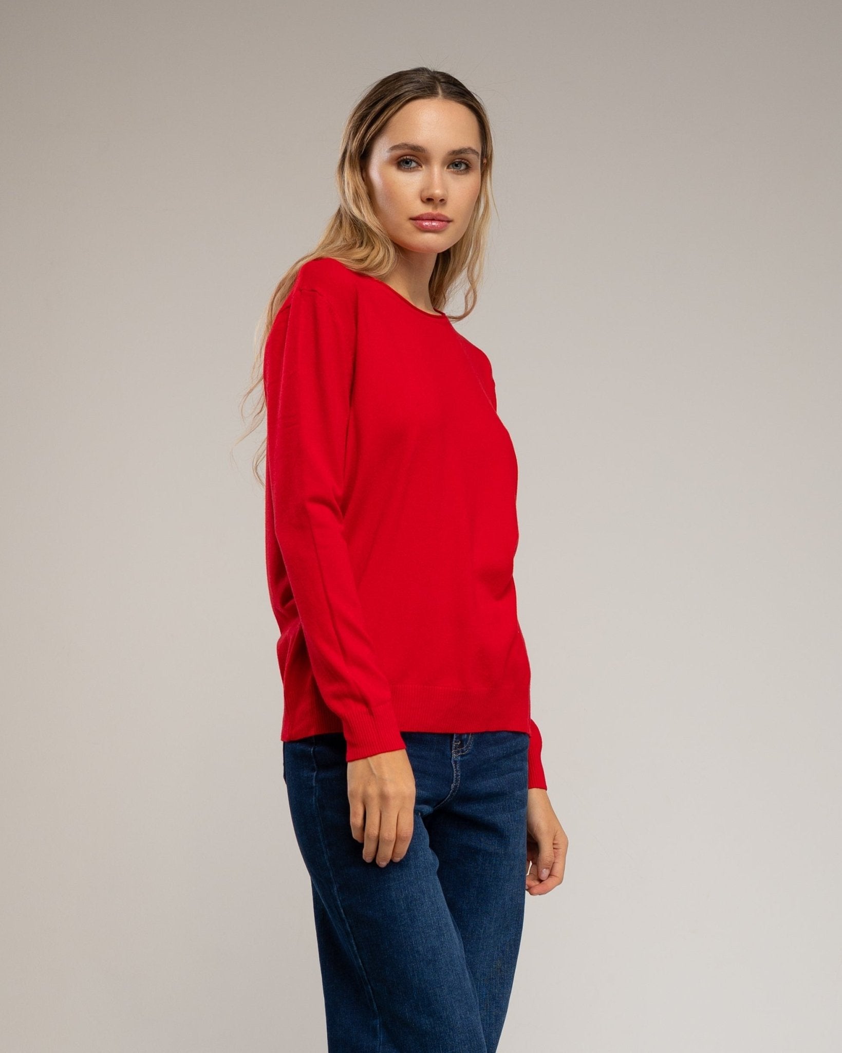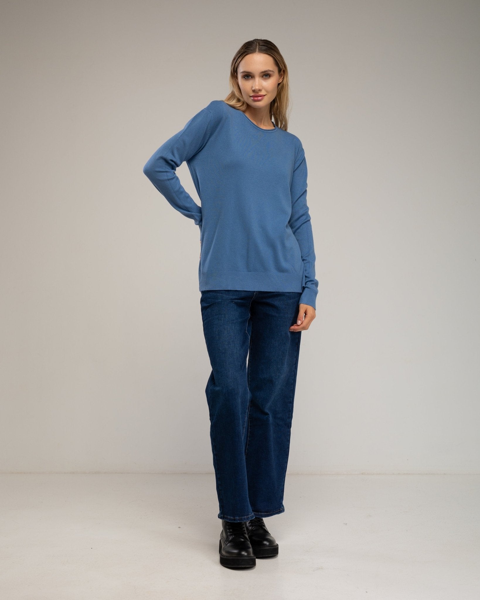 Este jersey de punto fino básico con cuello redondo es una prenda esencial para el día a día. Su tejido suave, ligero y elástico ofrece una gran comodidad y un ajuste favorecedor, ideal para combinar con cualquier estilo, desde looks casuales hasta más formales.