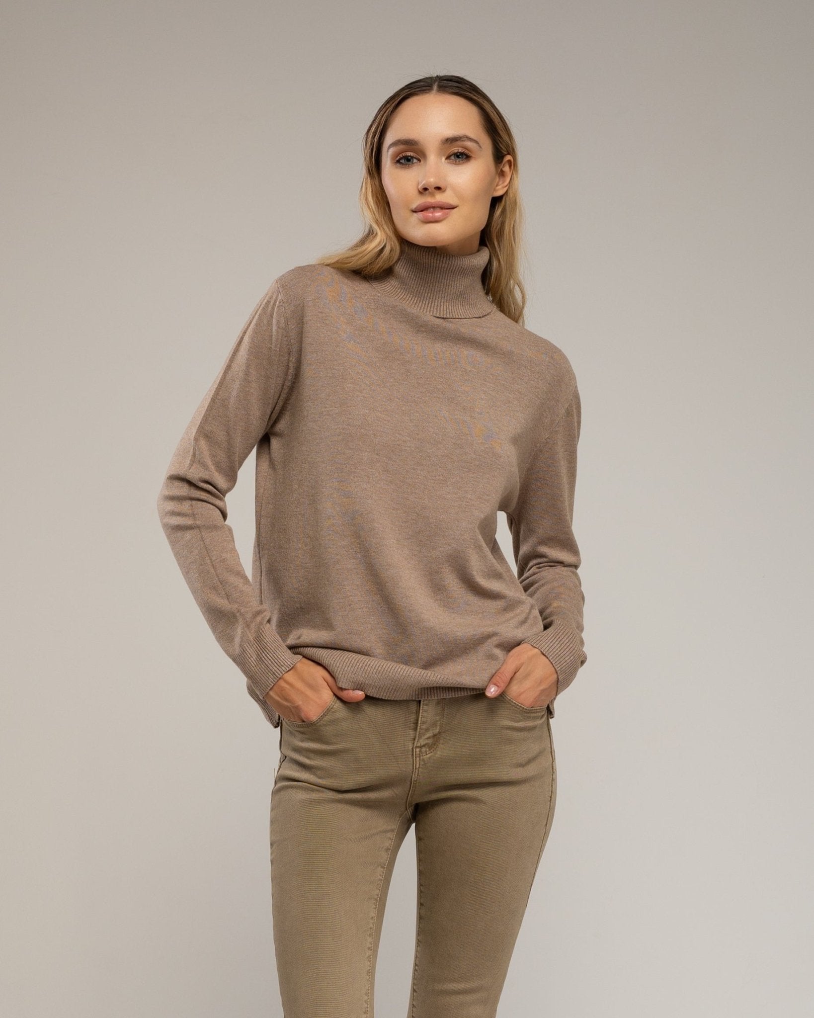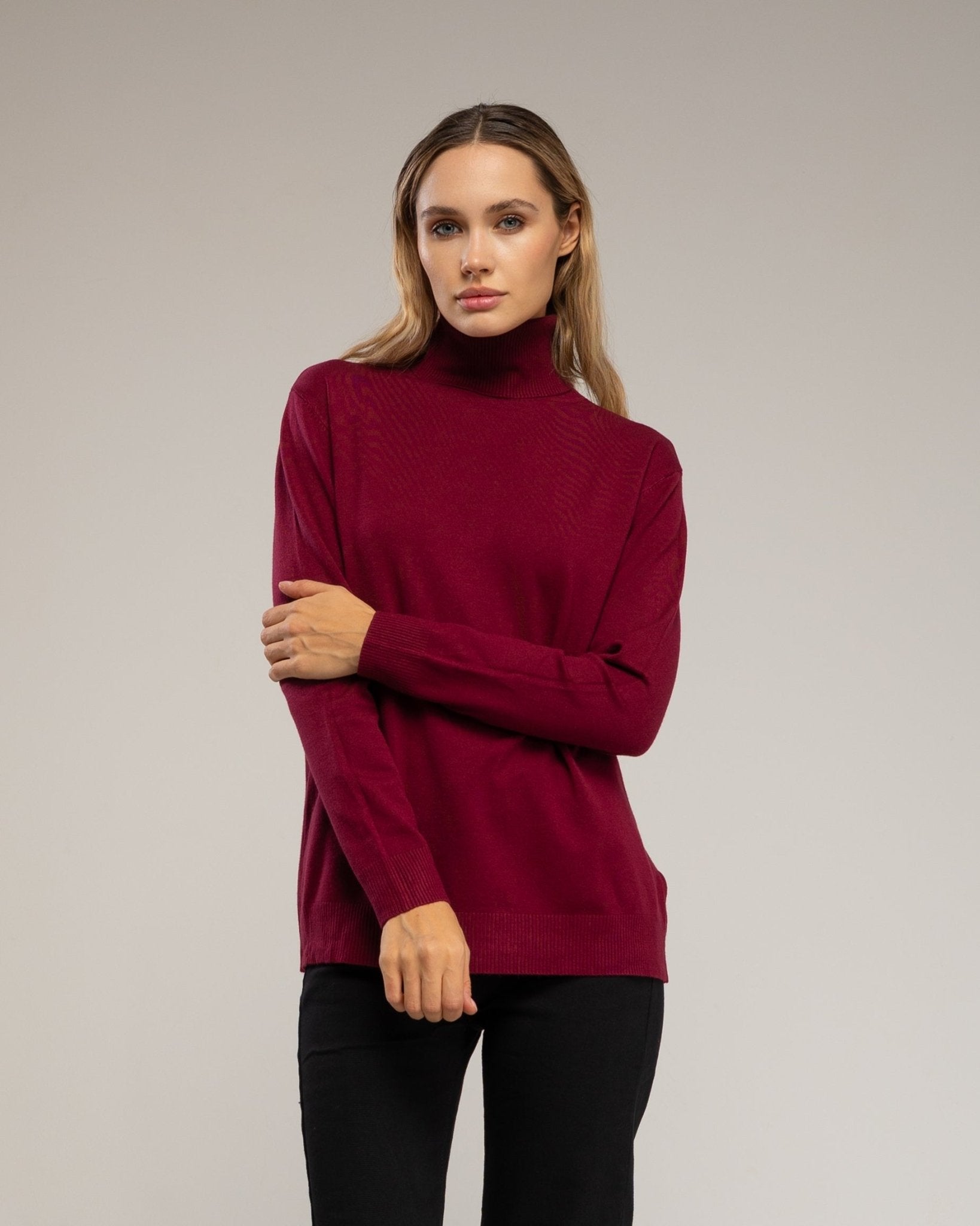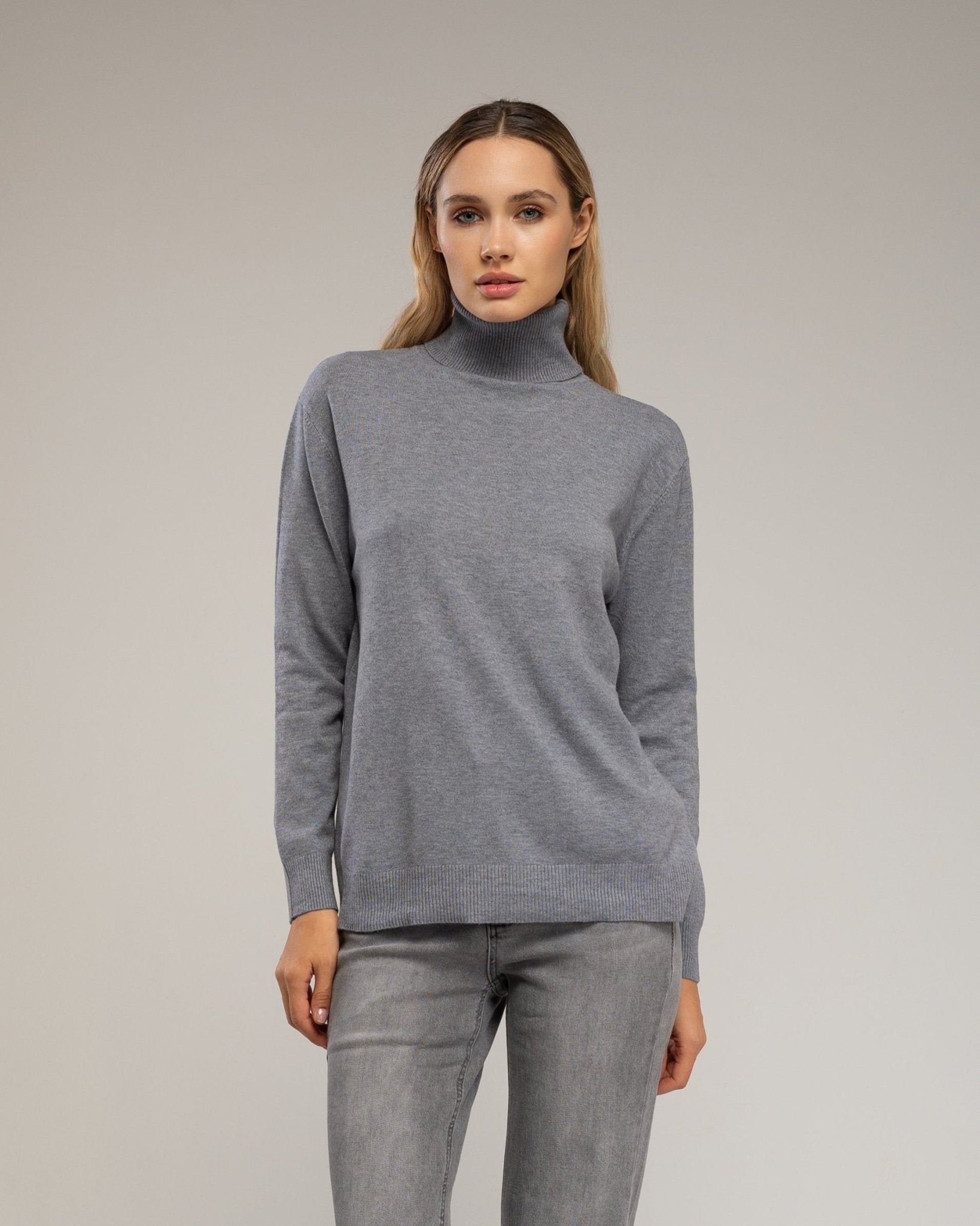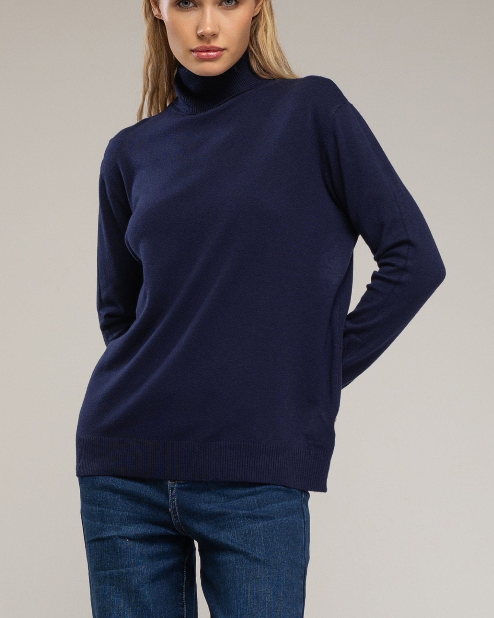Detalles: cuello vuelto, tejido de punto fino y elástico, diseño básico y elegante
