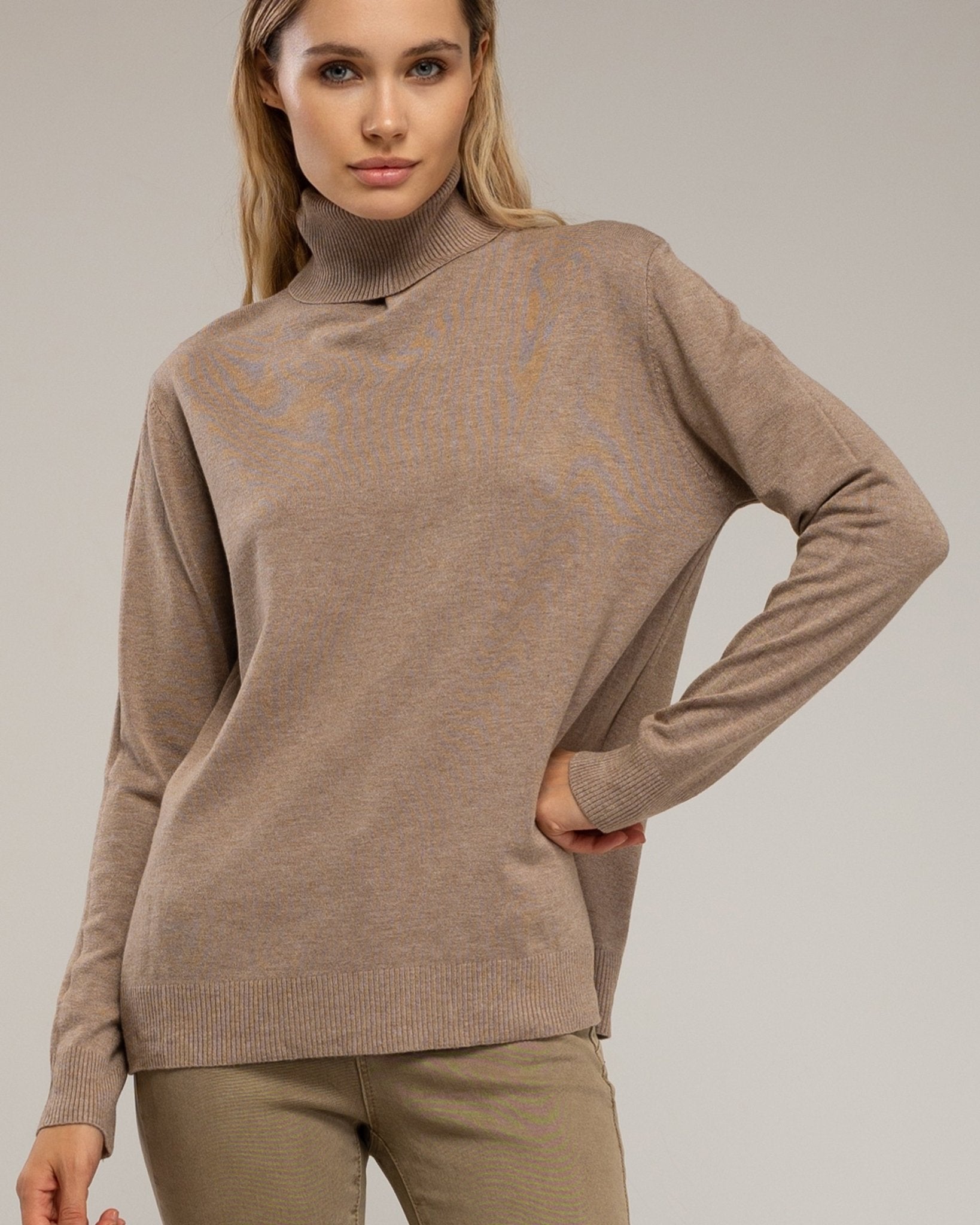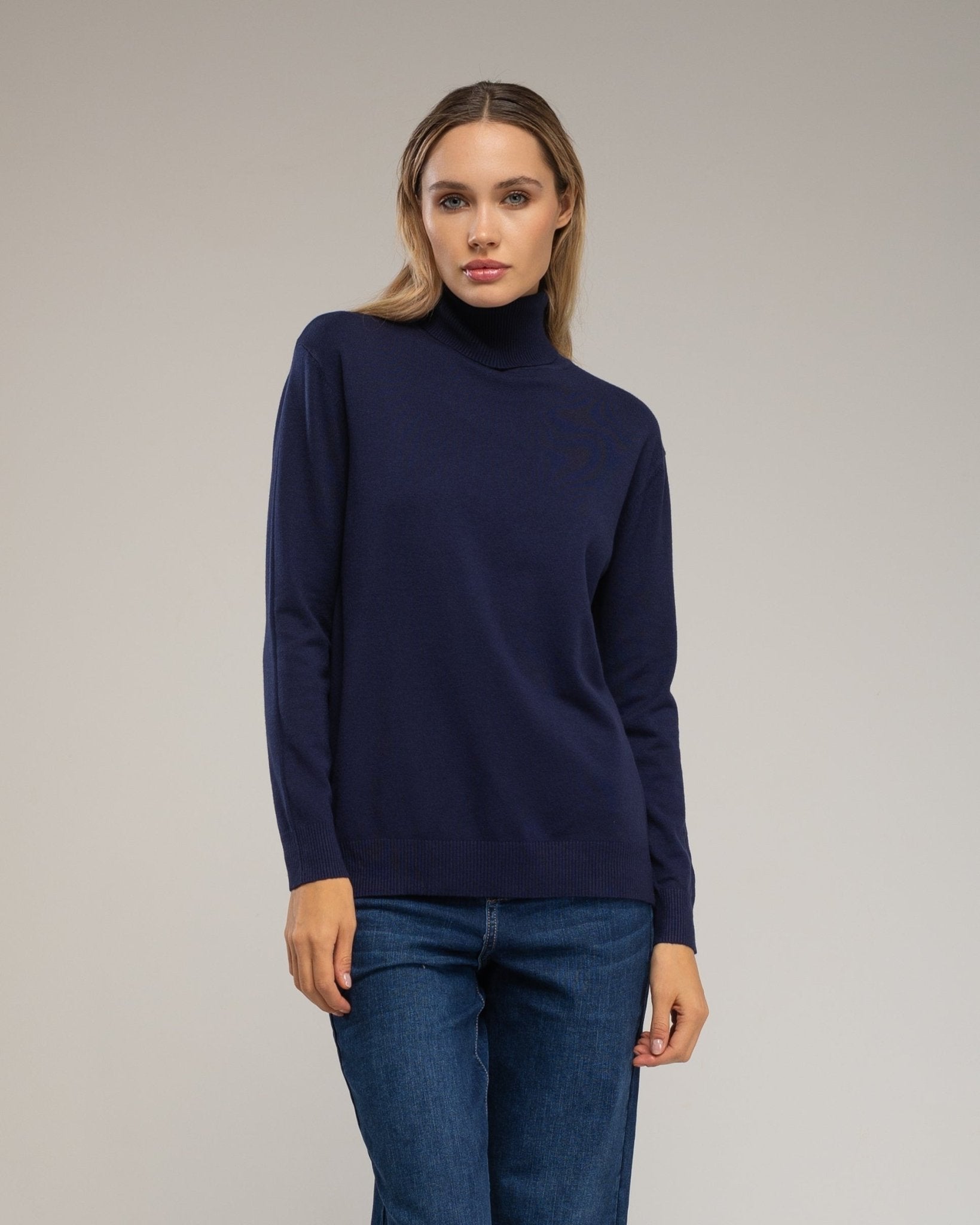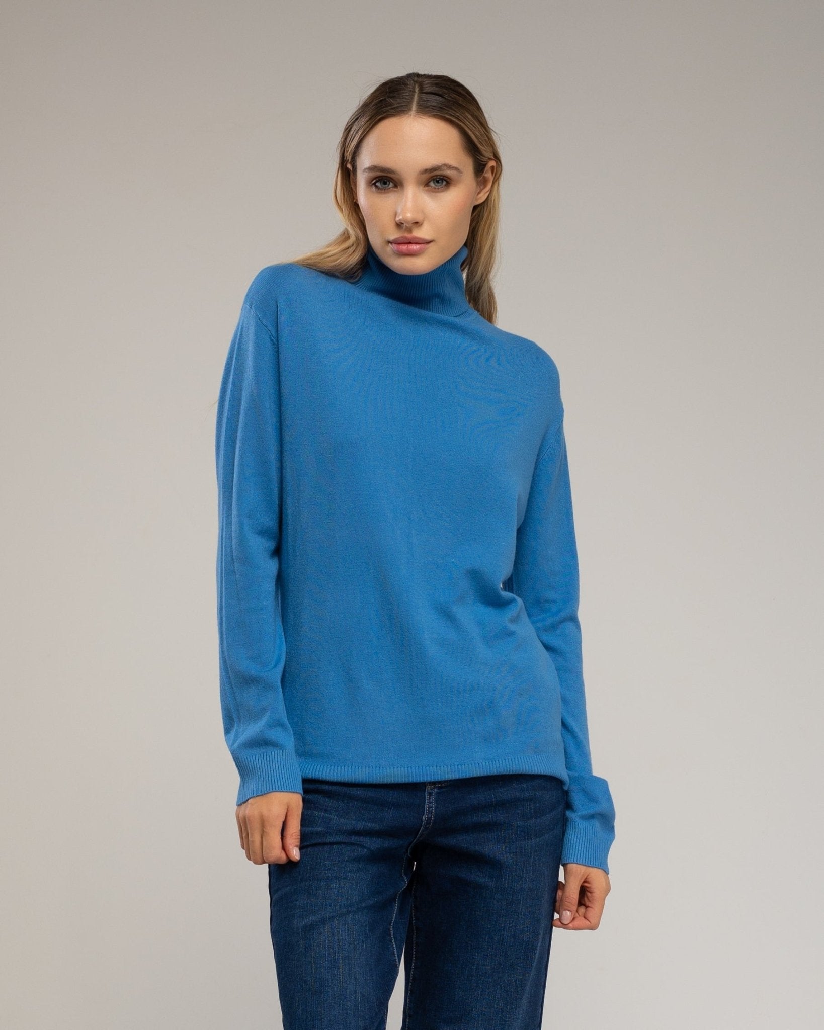 Detalles: cuello vuelto, tejido de punto fino y elástico, diseño básico y elegante