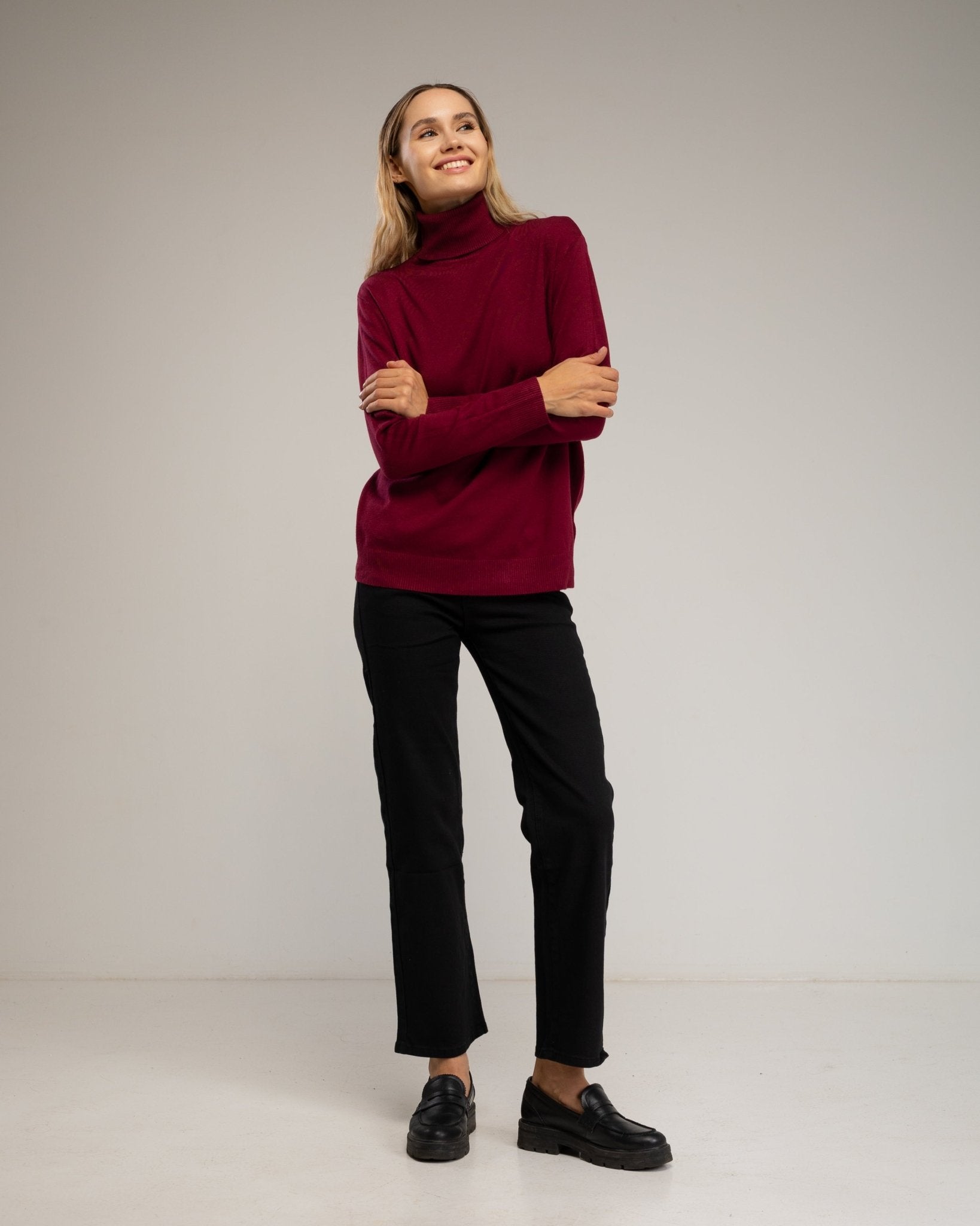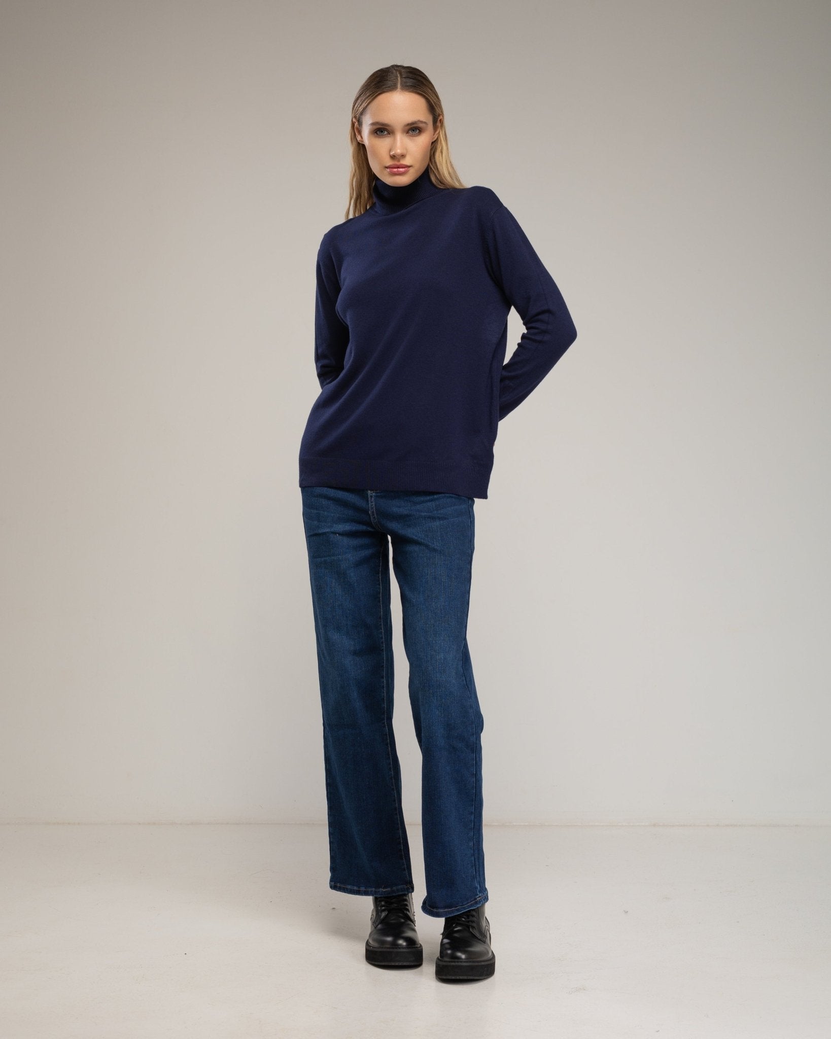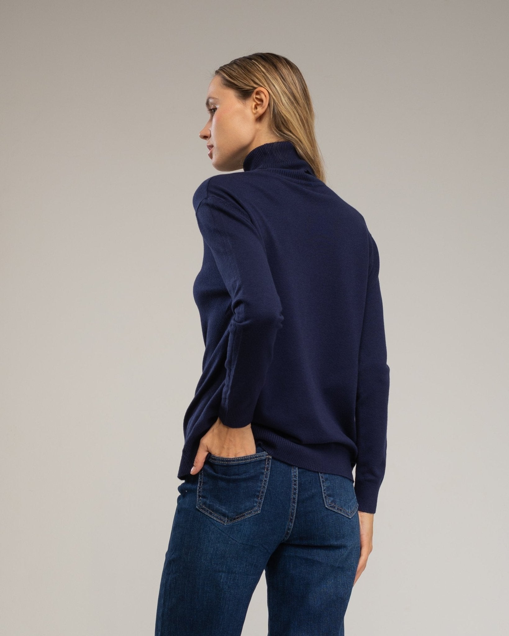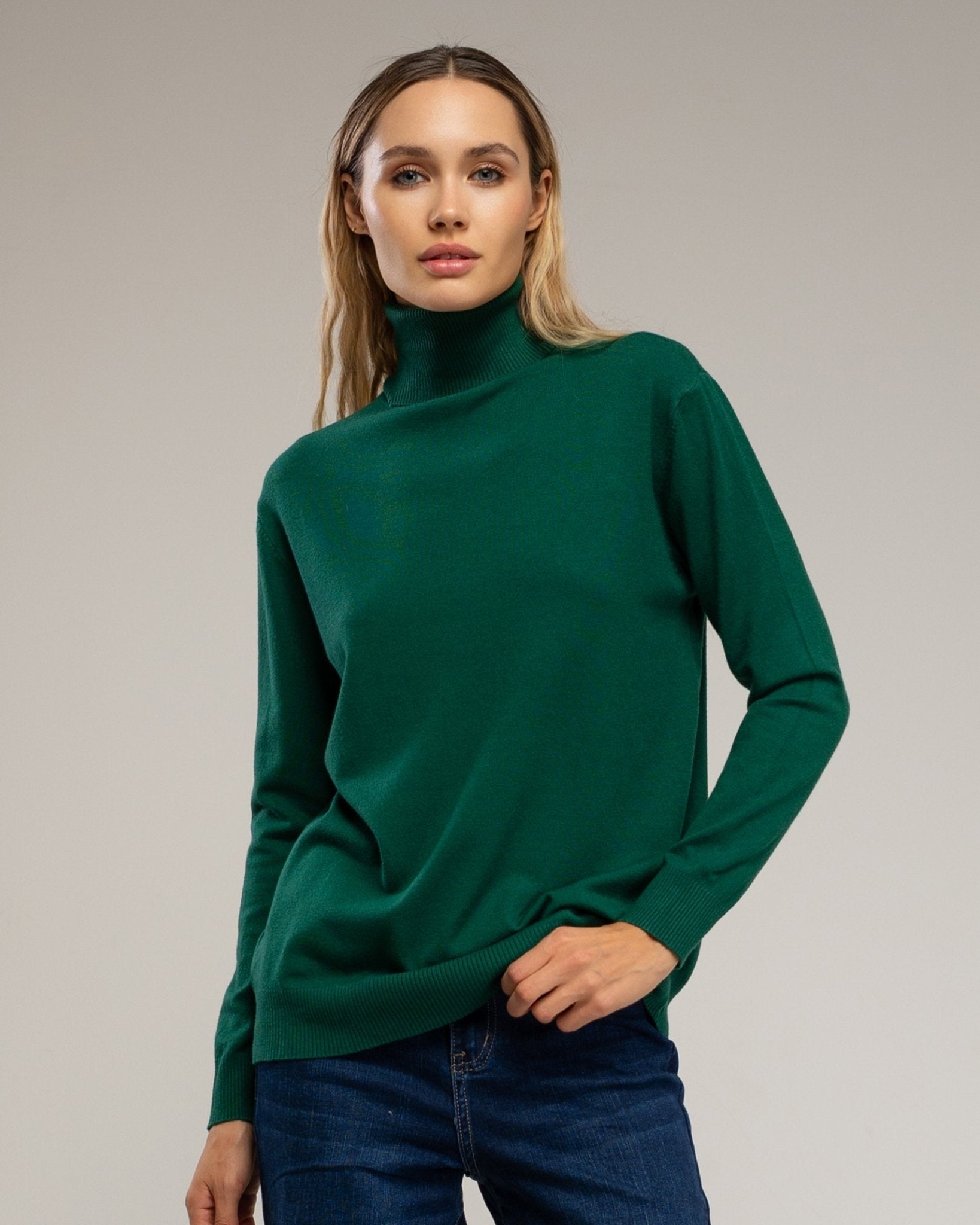 Detalles: cuello vuelto, tejido de punto fino y elástico, diseño básico y elegante