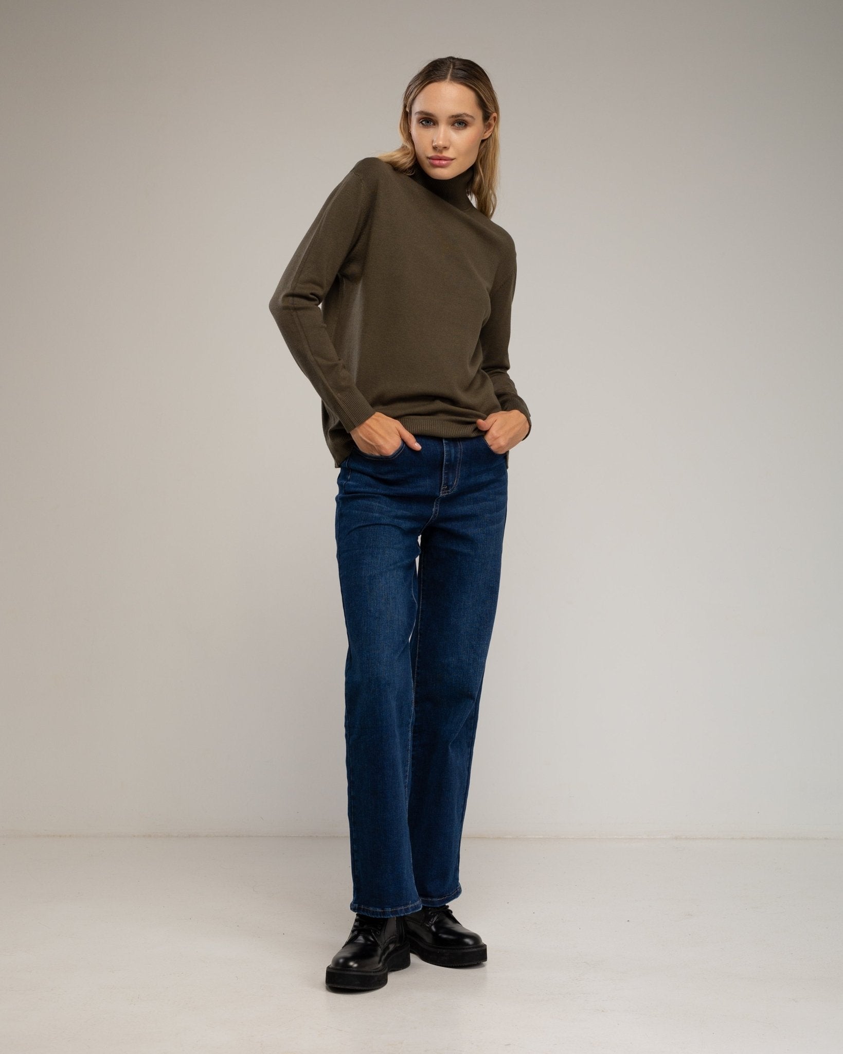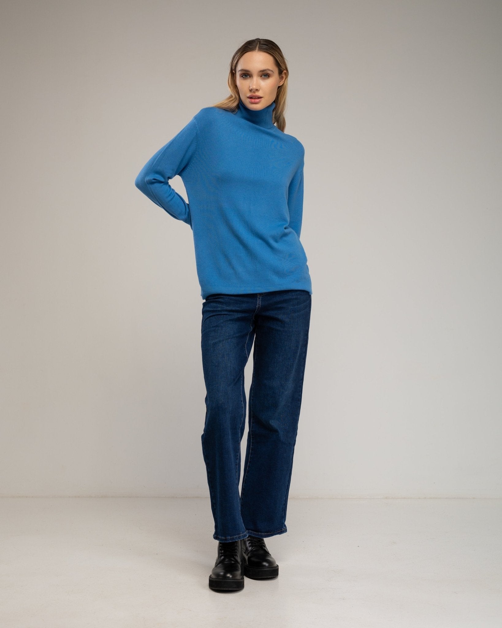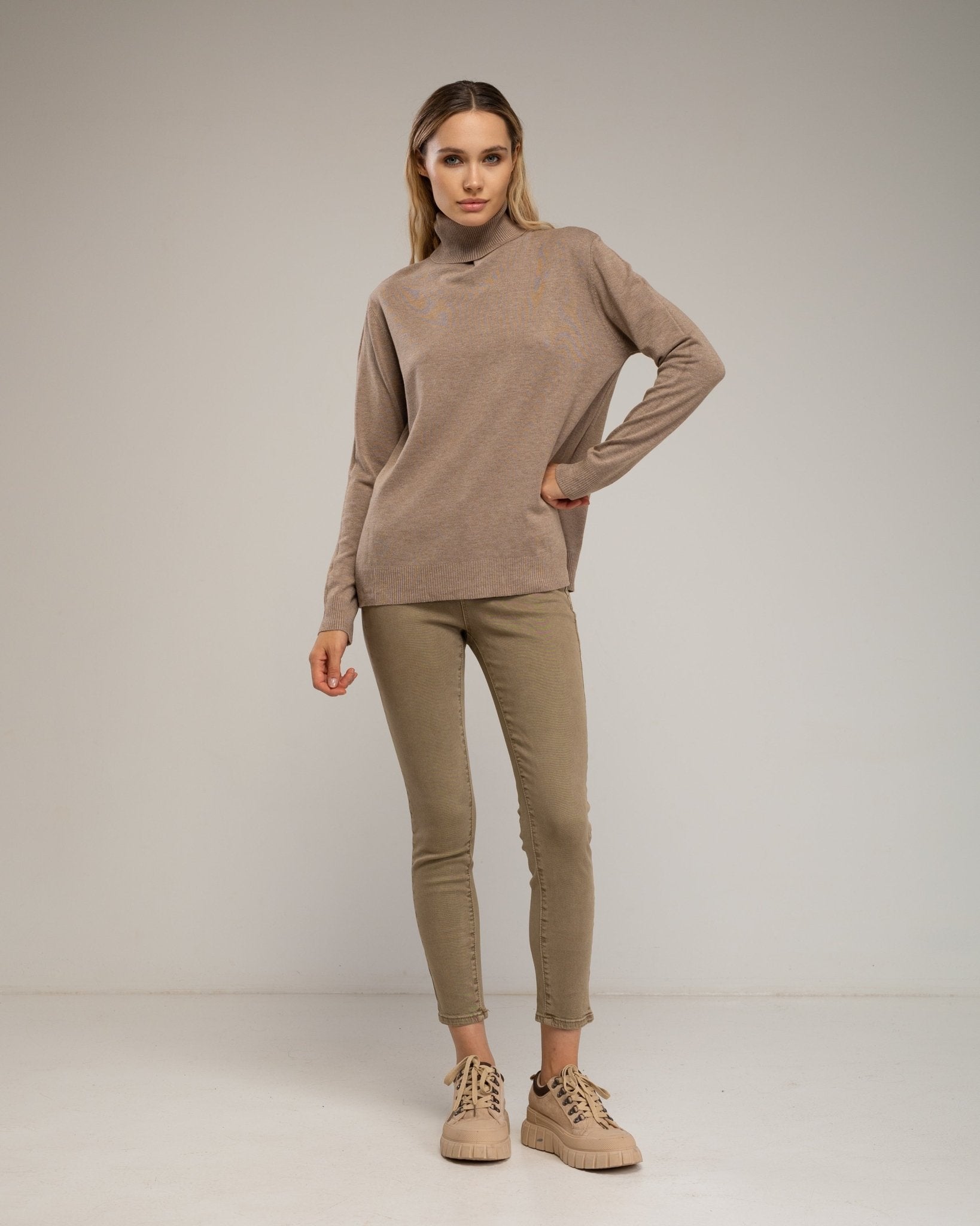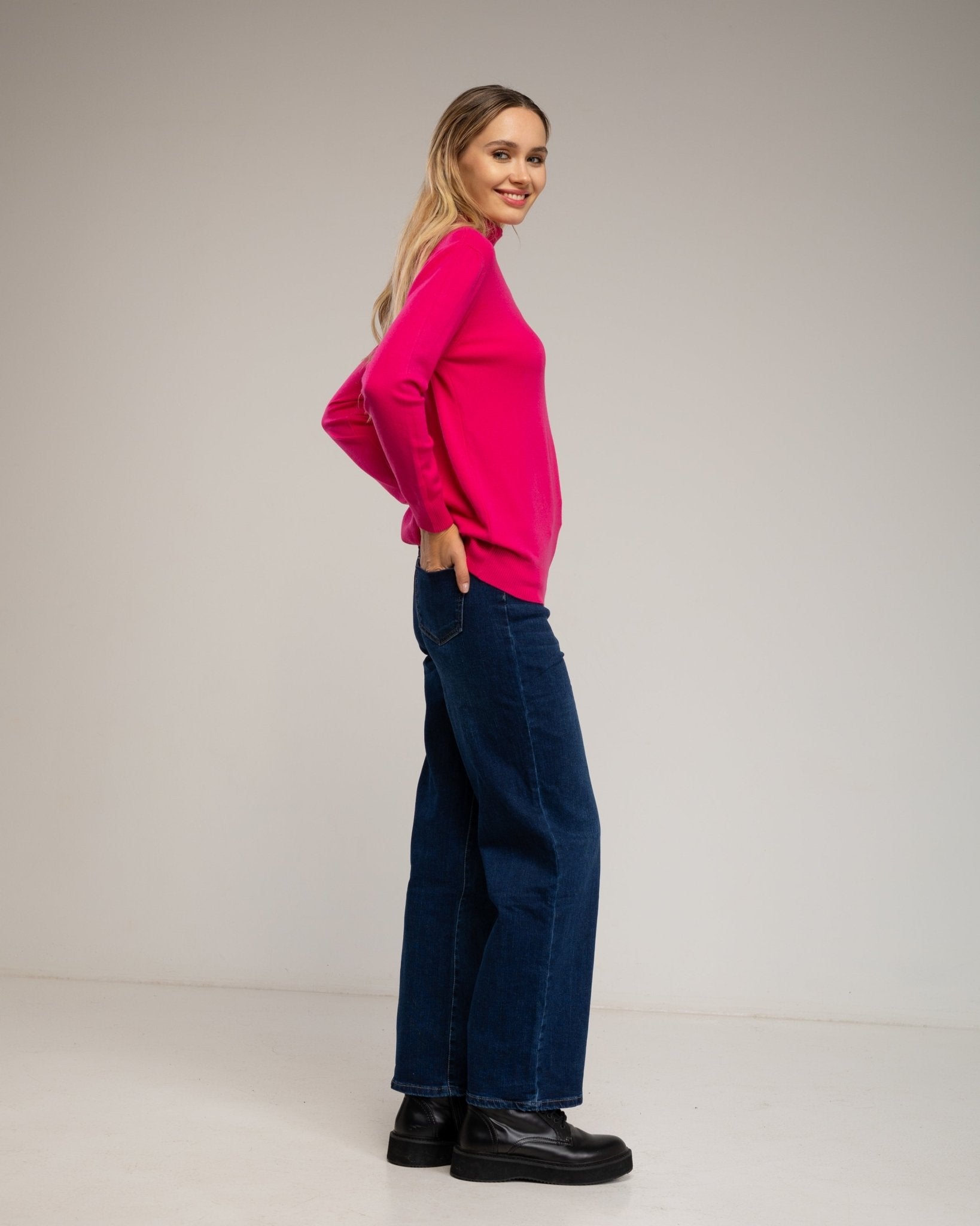 Este jersey de punto fino básico con cuello vuelto es un clásico atemporal que combina confort y estilo. Su tejido suave y elástico se adapta al cuerpo, aportando calidez sin renunciar a la elegancia. Ideal para llevar solo o como capa base en los meses más fríos.