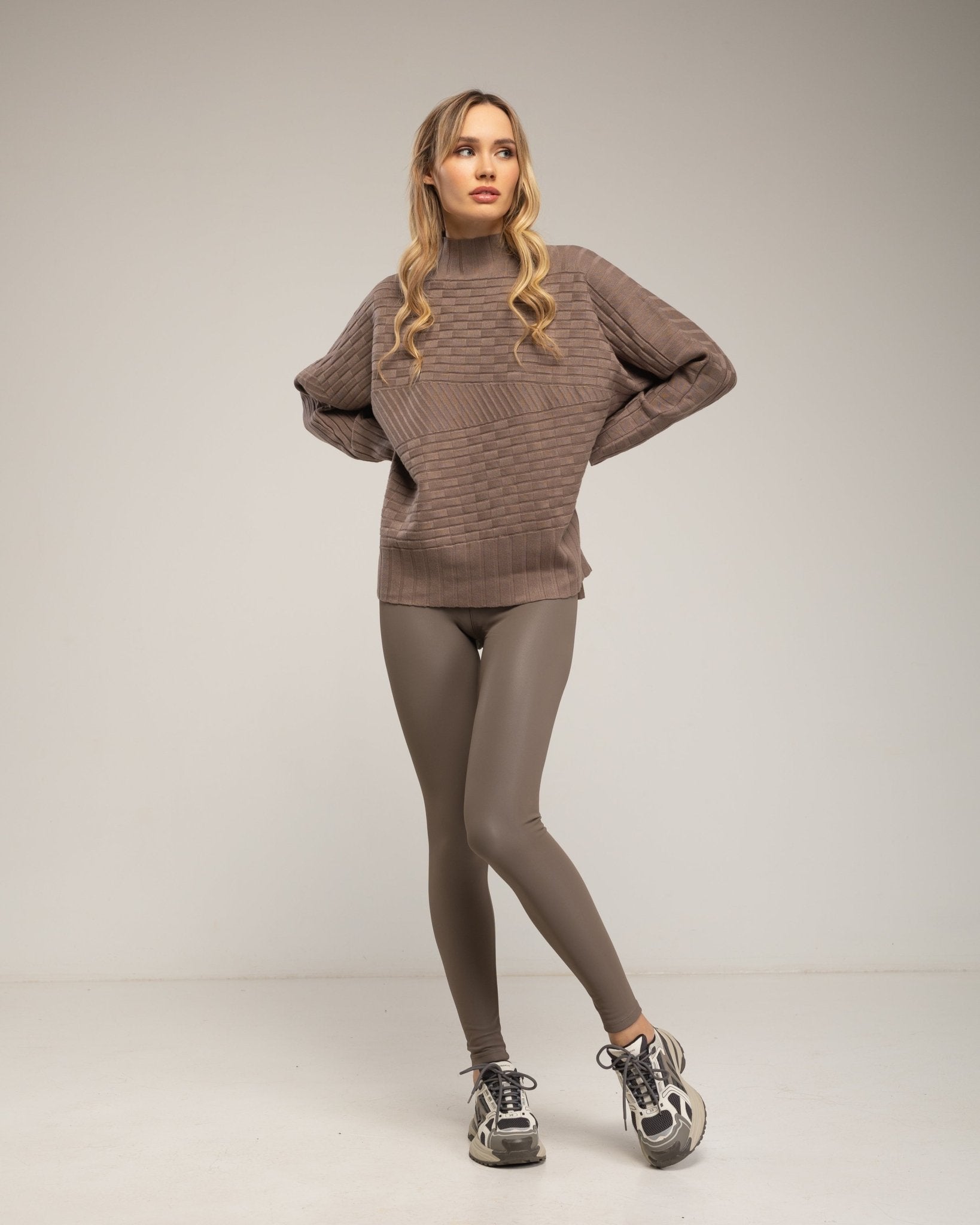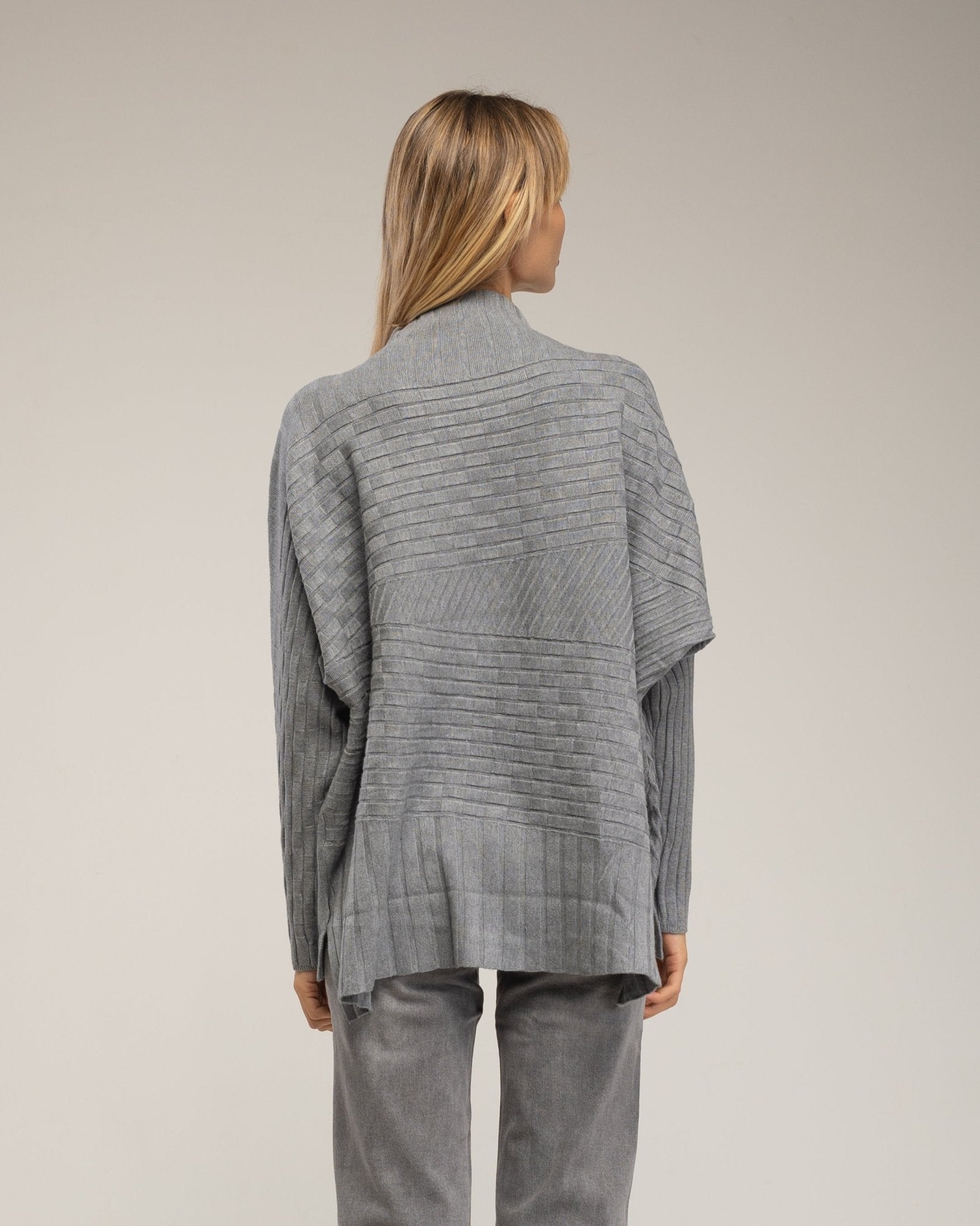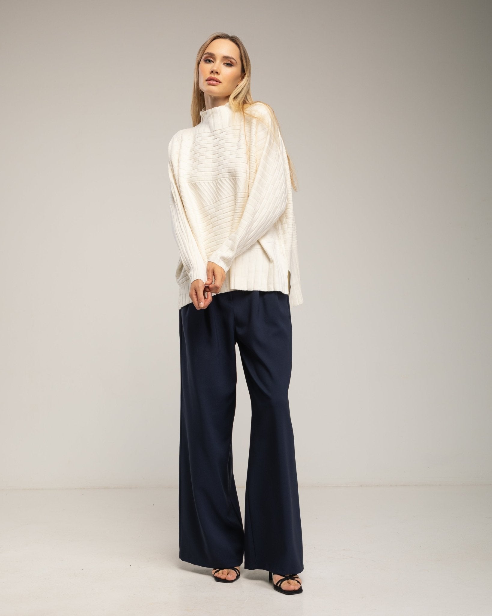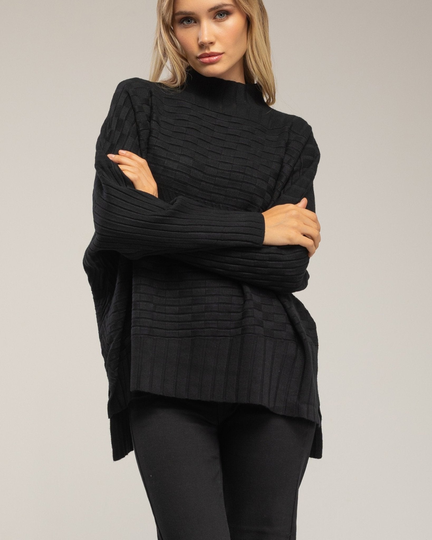 Este jersey oversize combina estilo y comodidad con su original textura de rayas y cuadros. Su tejido suave y elástico proporciona una sensación agradable al tacto y libertad de movimiento, perfecto para looks casuales y modernos con un toque sofisticado.