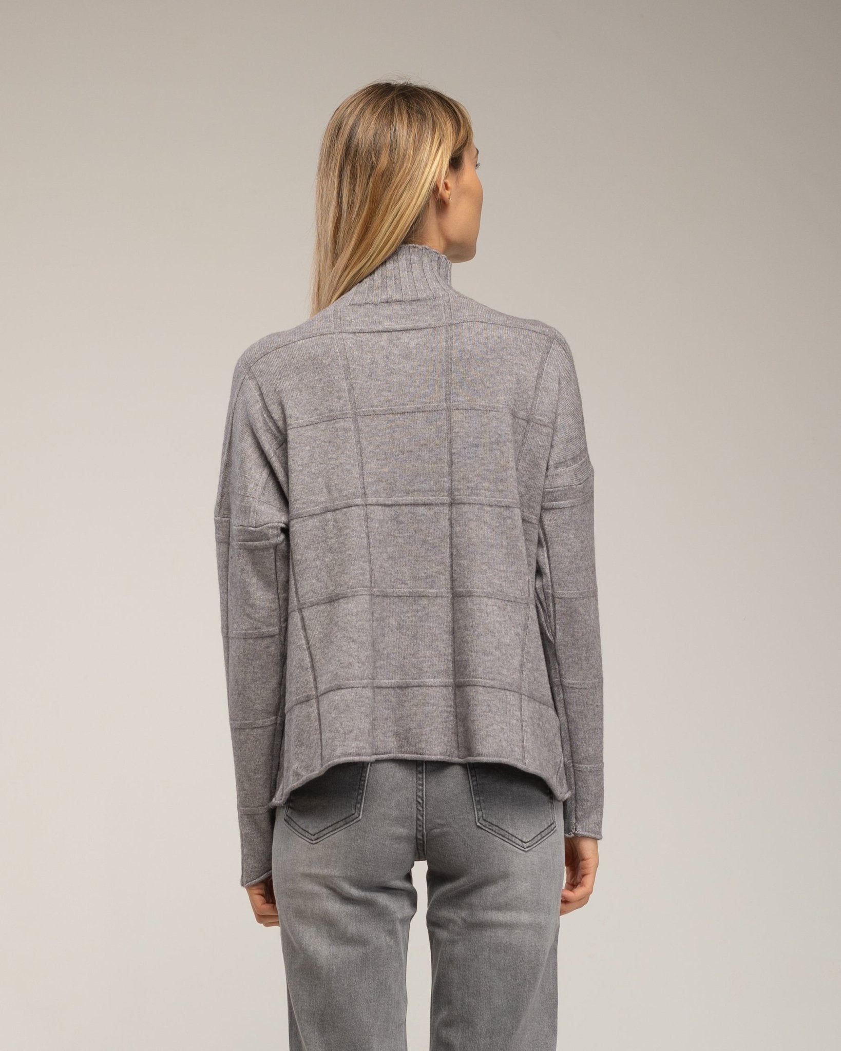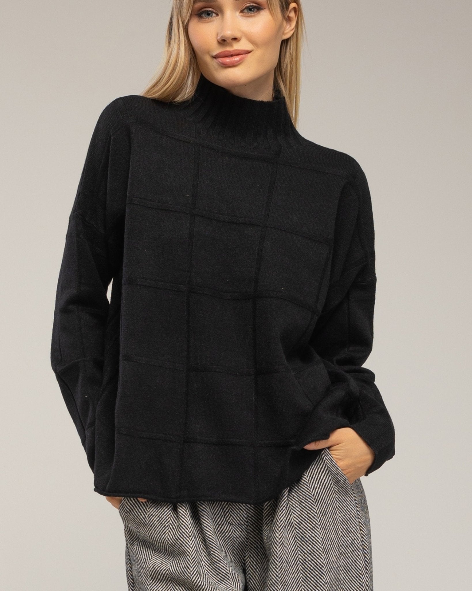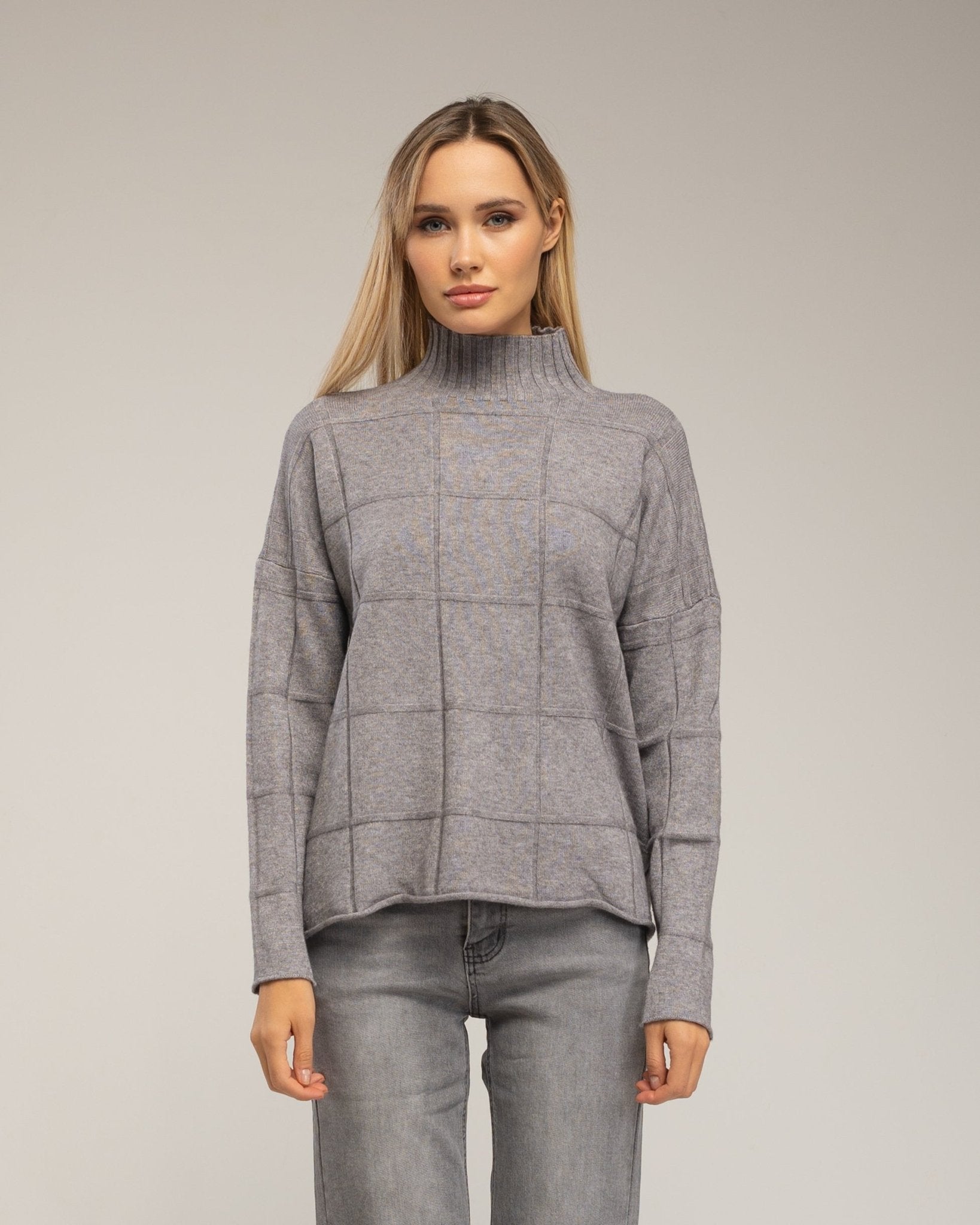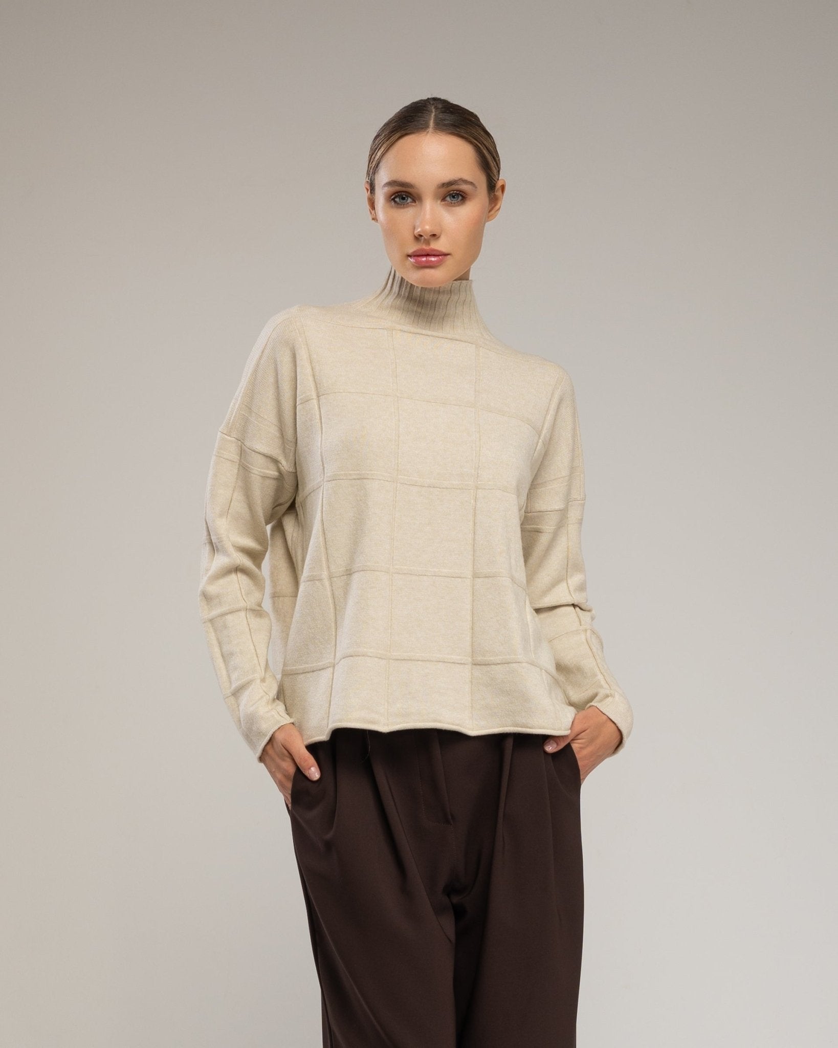 Jersey oversize de punto con cuello perkins y detalles de cuadros