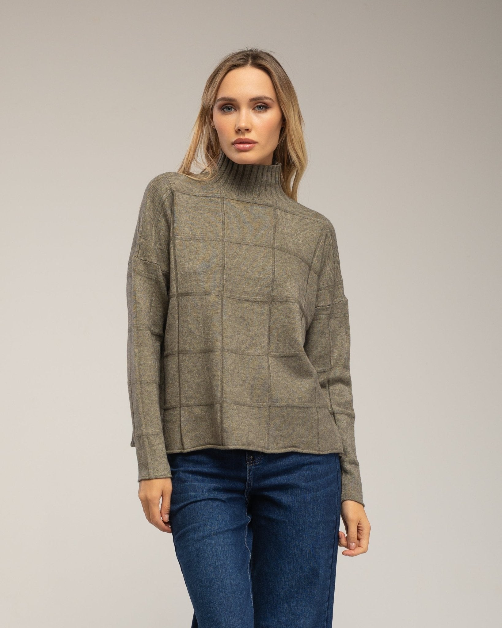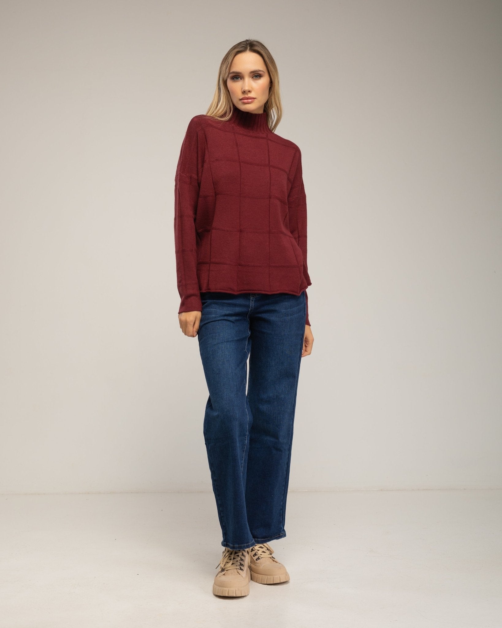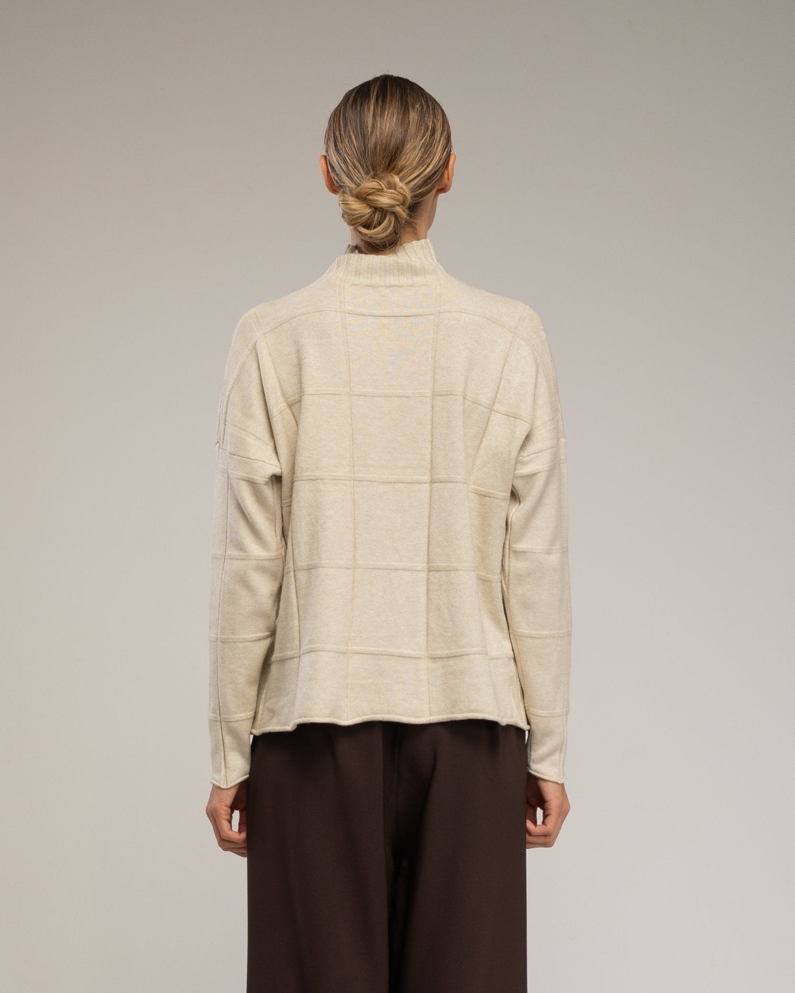 Jersey oversize de punto con cuello perkins y detalles de cuadros