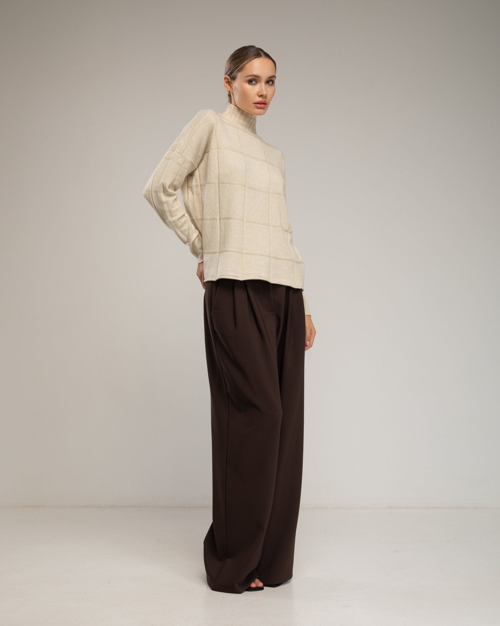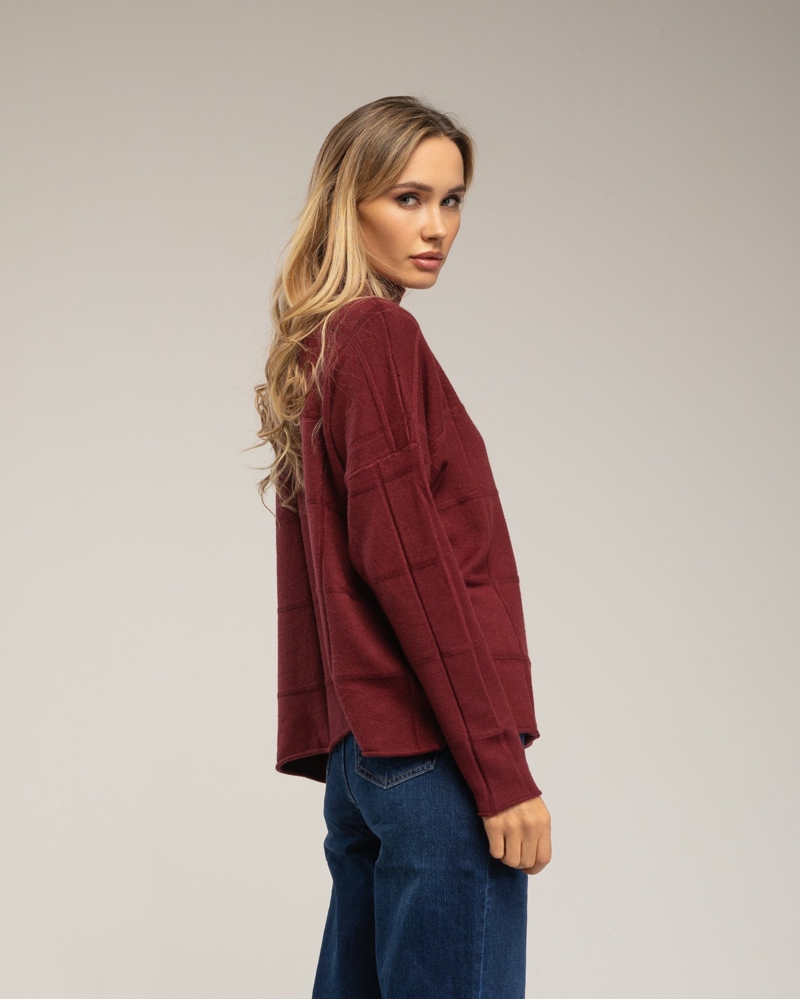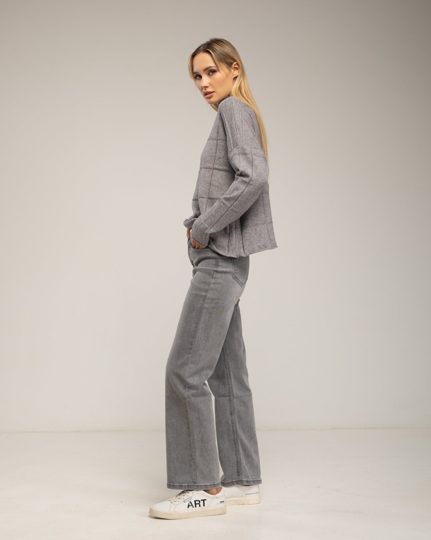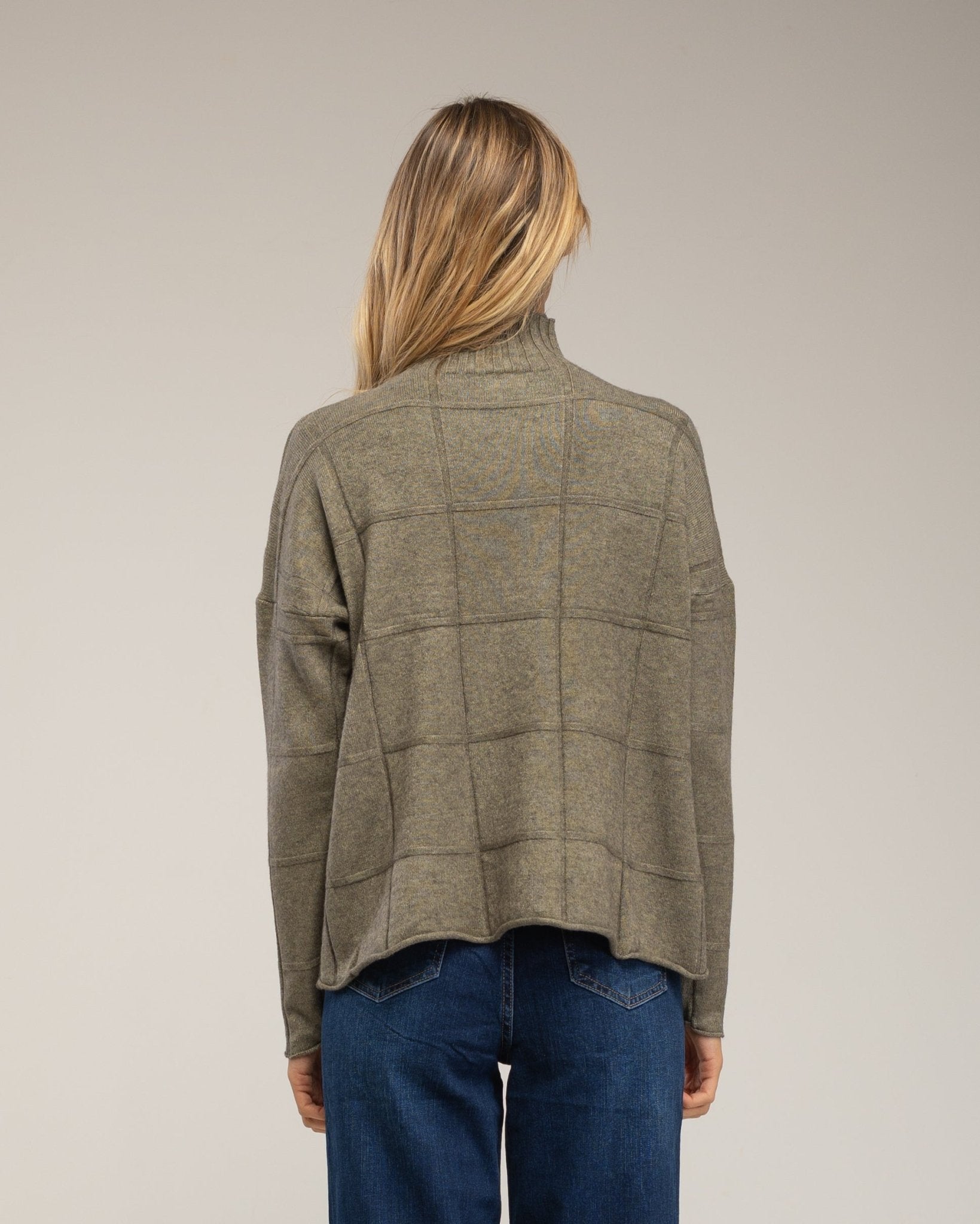 Jersey oversize de punto con cuello perkins y detalles de cuadros