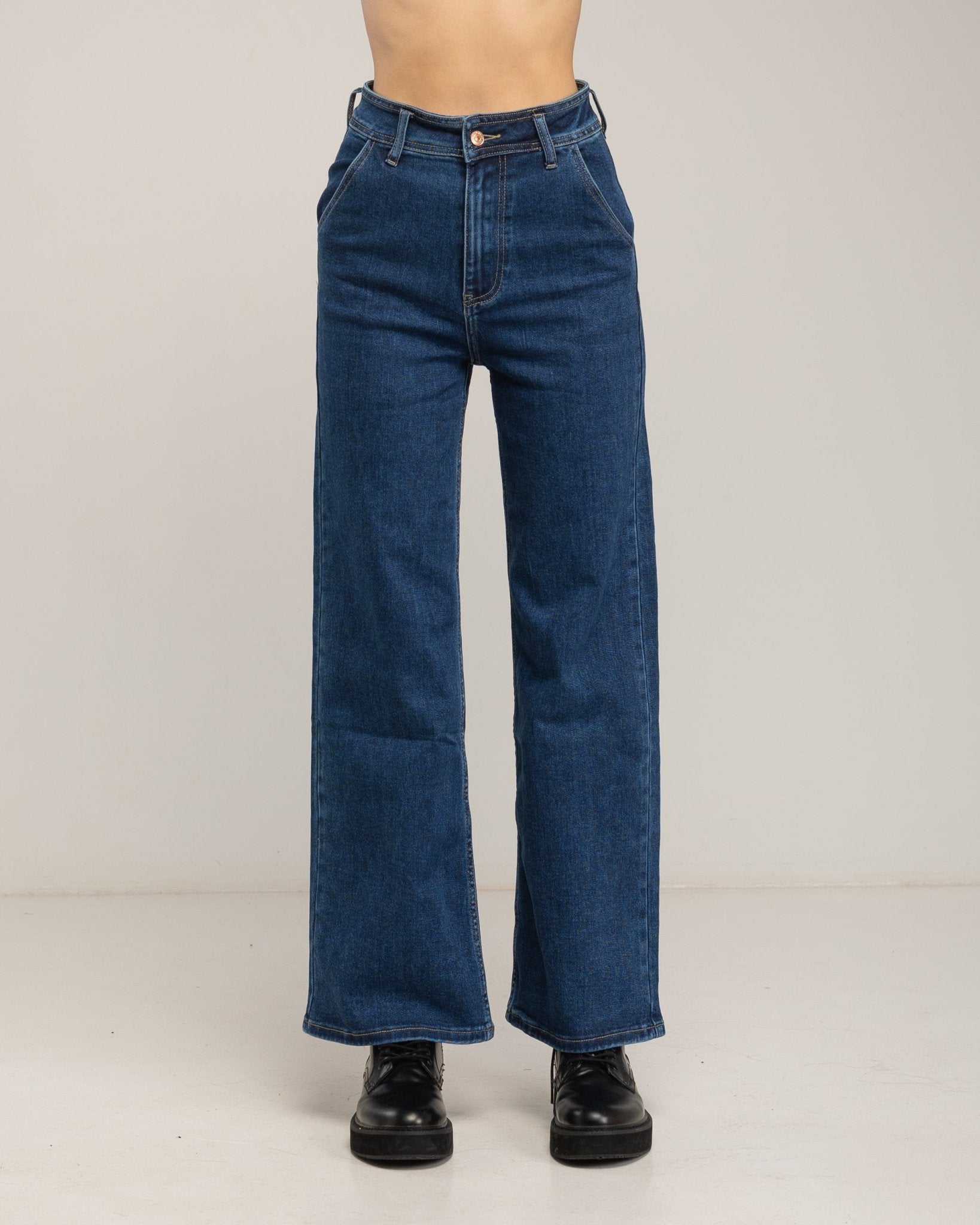 Pantalón denim de tiro alto tipo chino.