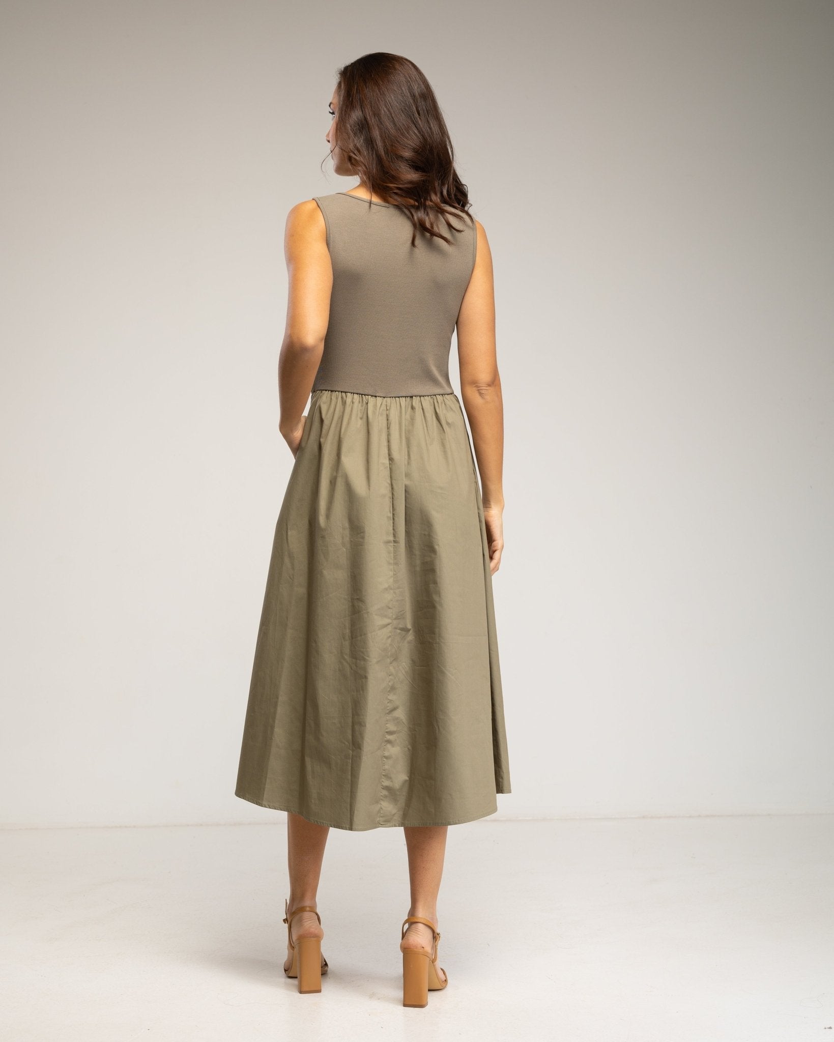Vestido midi sin mangas con parte de arriba tipo camiseta y falda de vuelo con bolsillos (KAKHI) (Copia)